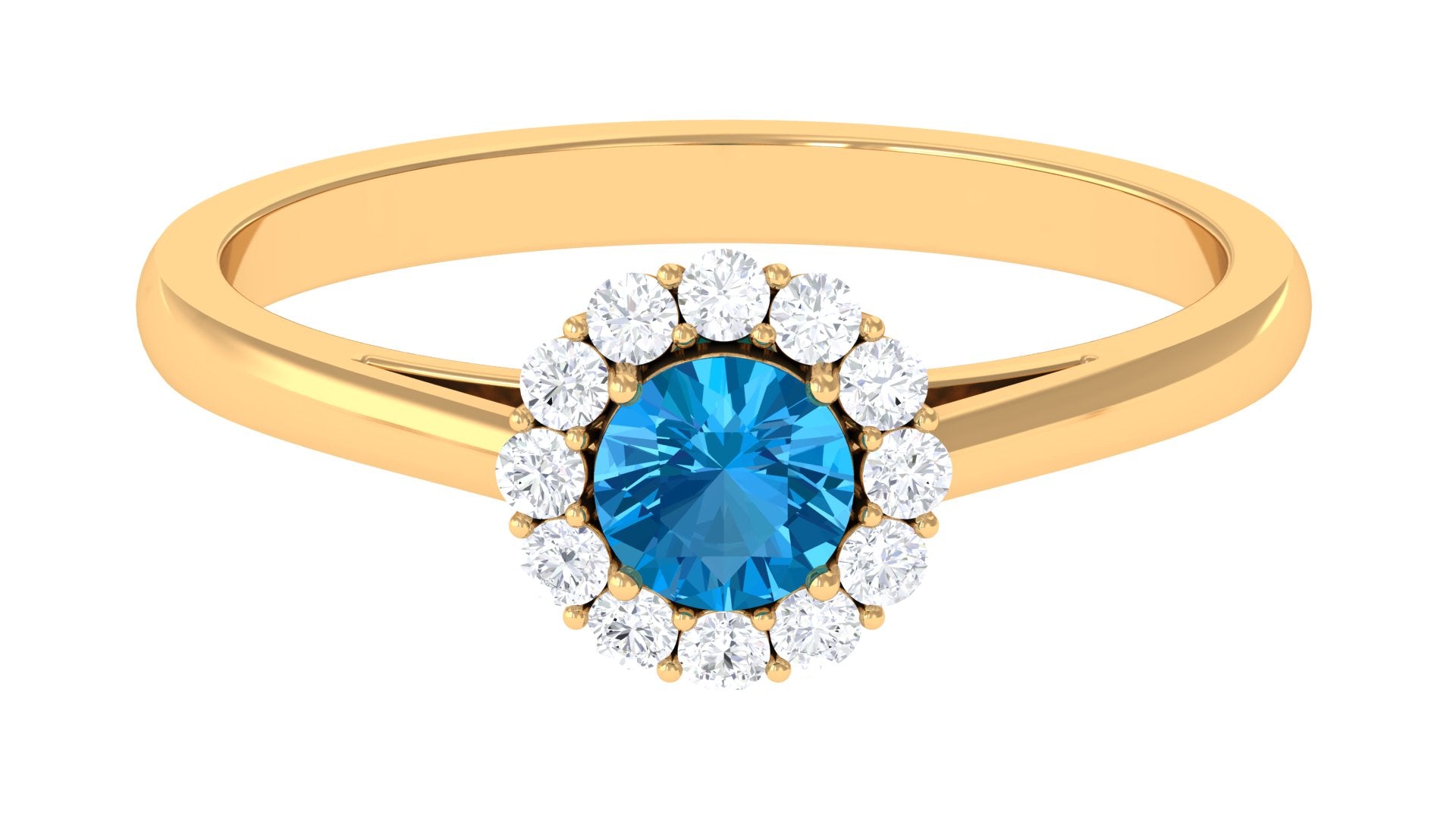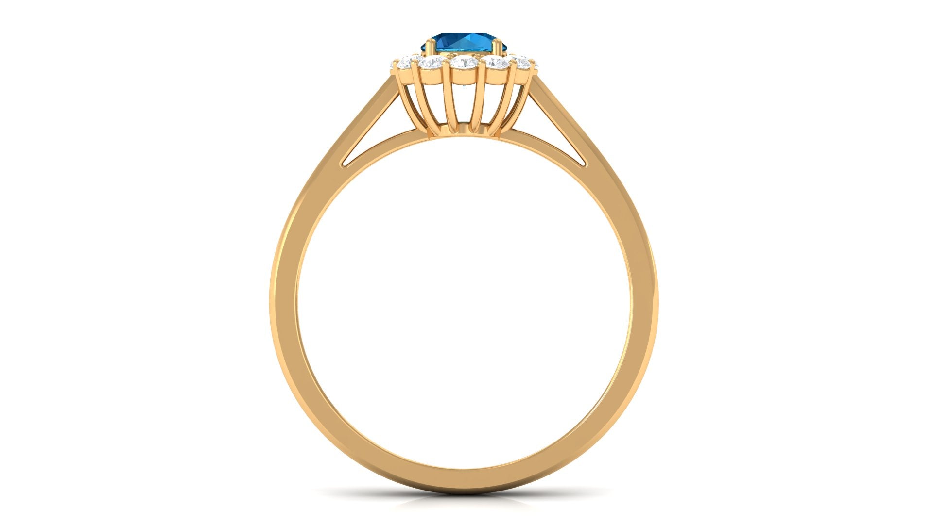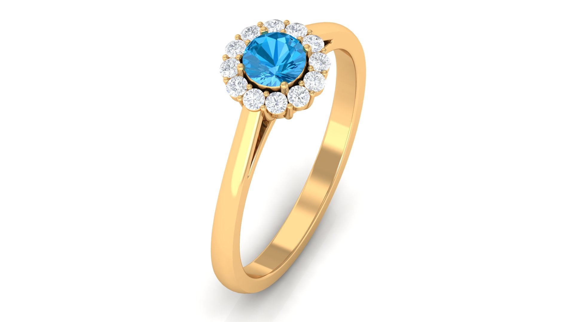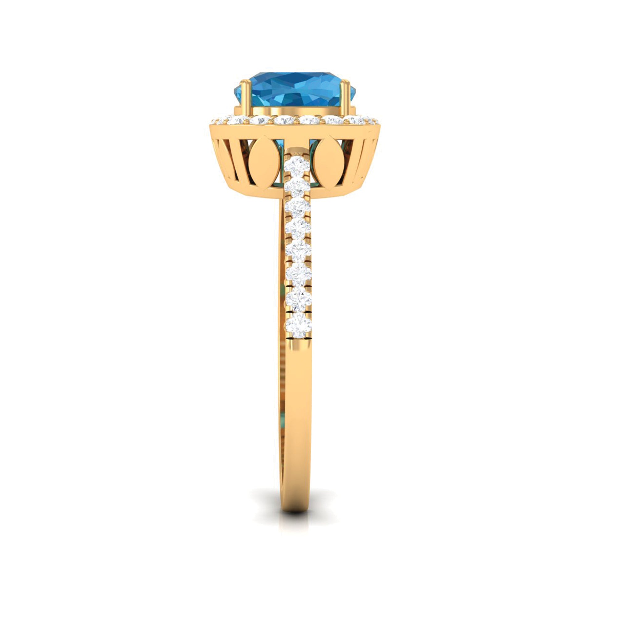 A primary gemstone surrounded by a halo of smaller diamonds or gems is what defines a halo engagement ring at its heart. The center stone's beauty and overall appearance are enhanced by this magnificent setting, giving the piece a stunning and opulent look.