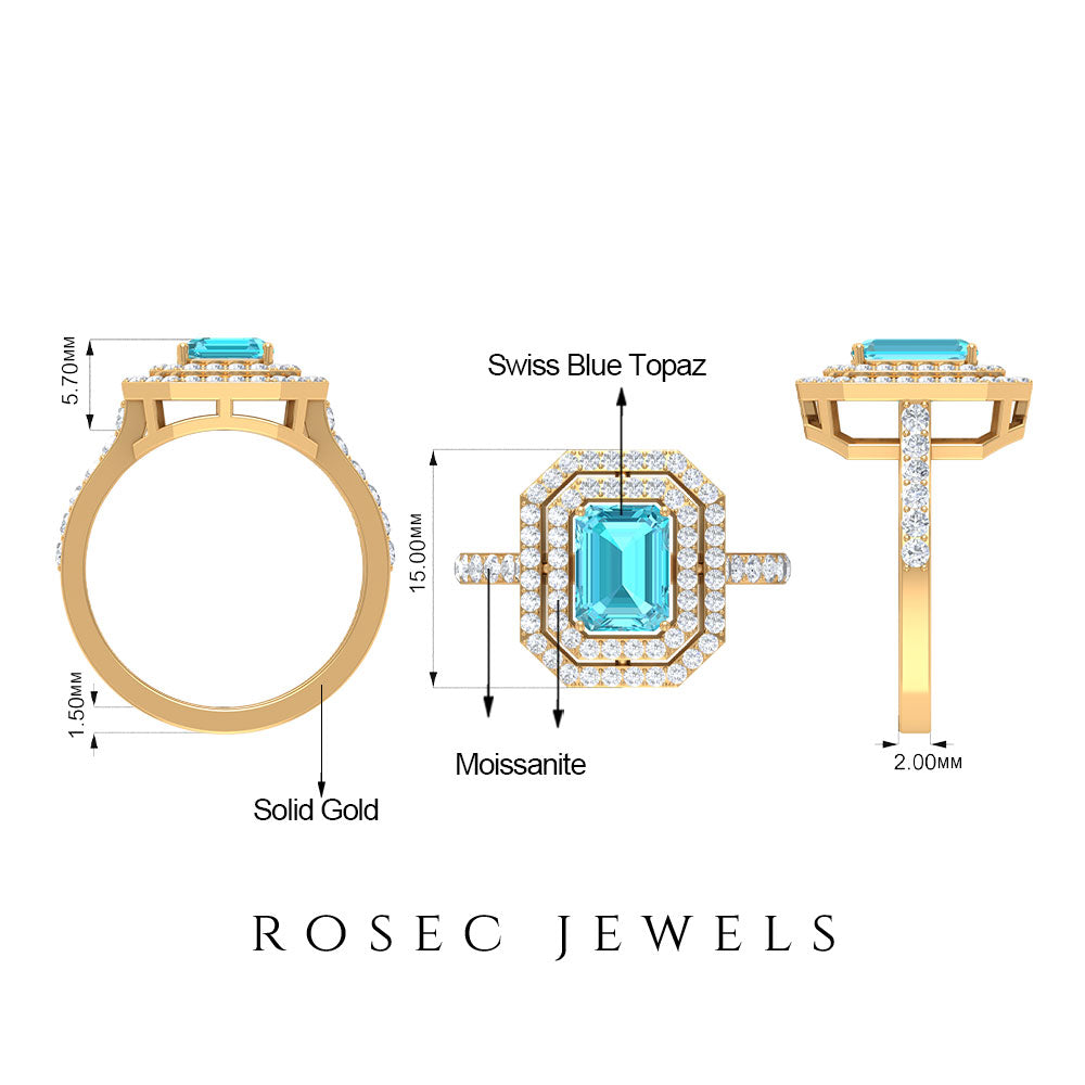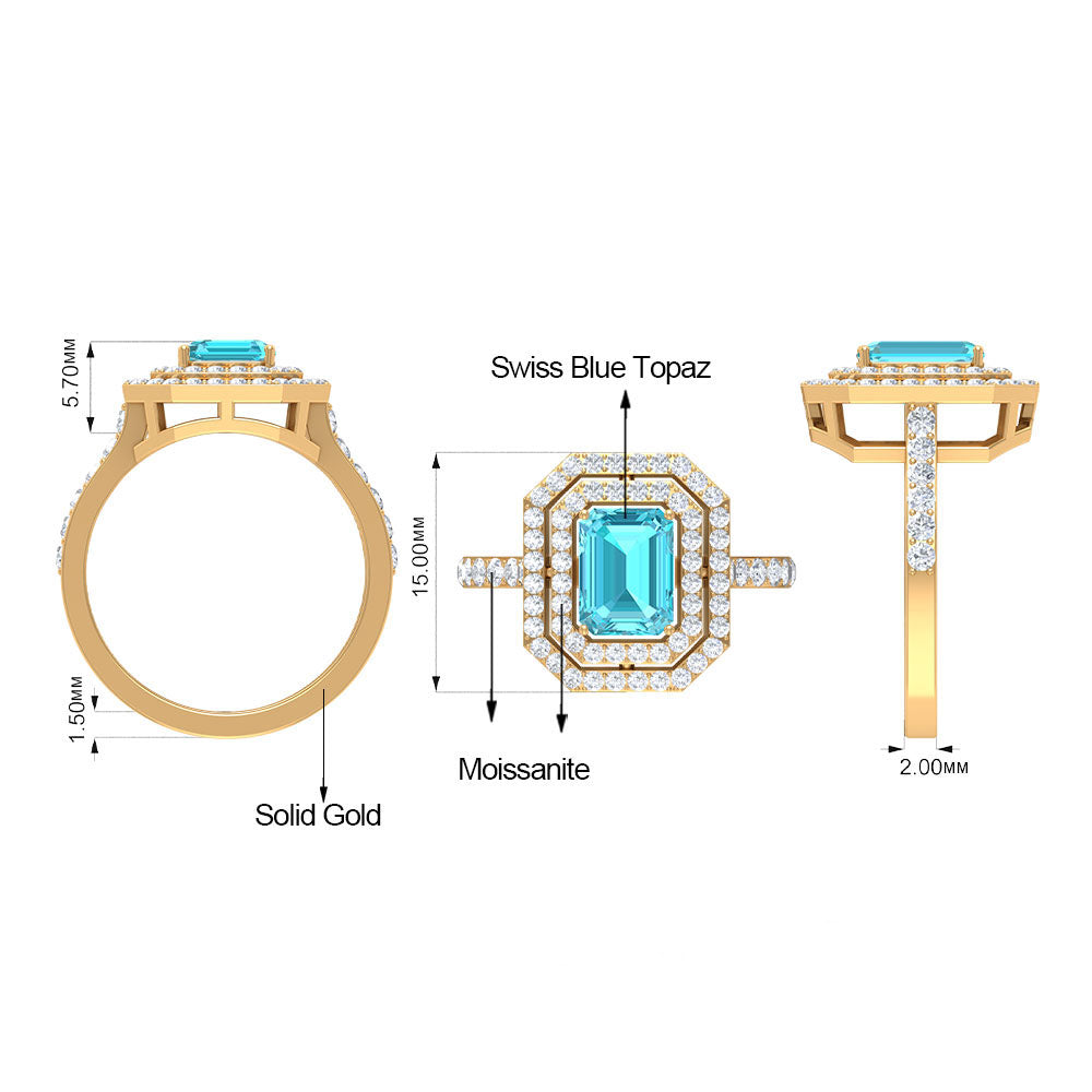 The double halo design is a well-liked variant of the Halo Engagement Ring. As the name implies, the center stone is surrounded by two concentric circles of diamonds. The double halo enhances the ring's shimmering appearance, resulting in a stunning show of light. The Double Halo Engagement Ring design is perfect for those looking for a ring that oozes opulence and highlights their uniqueness.