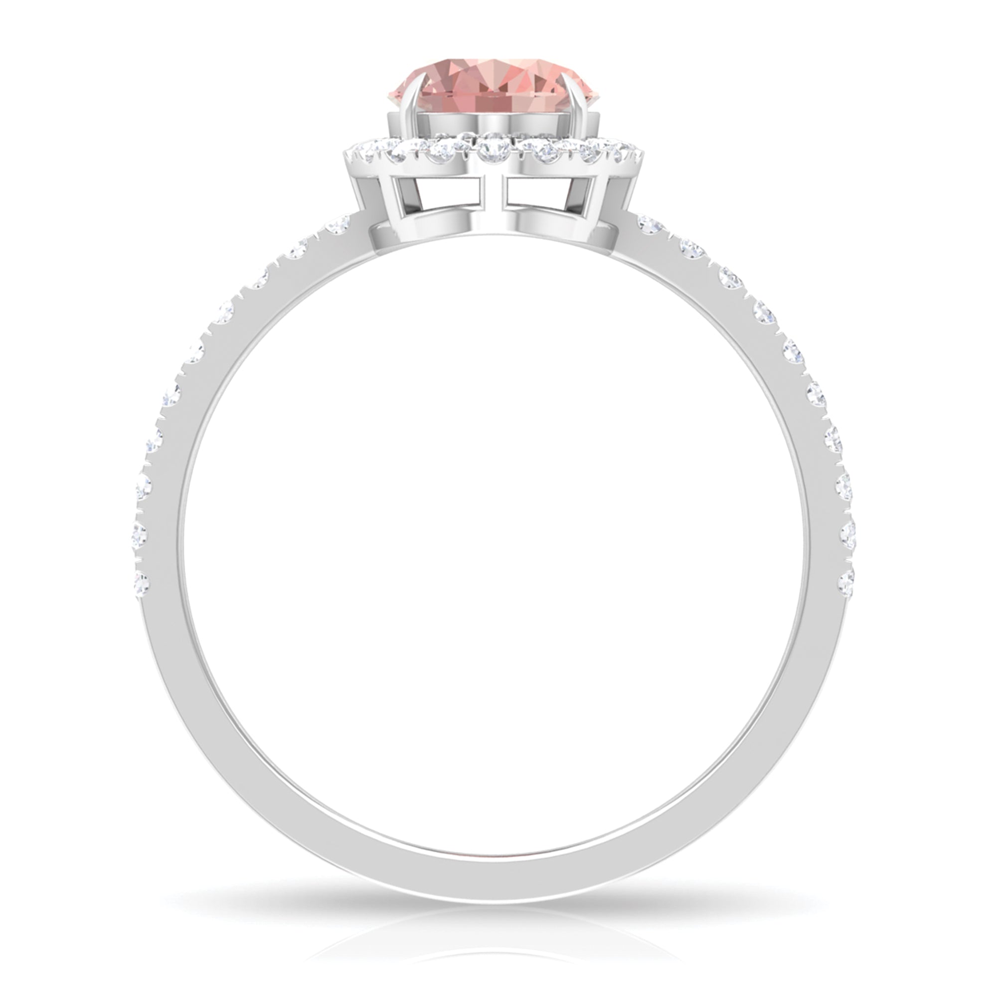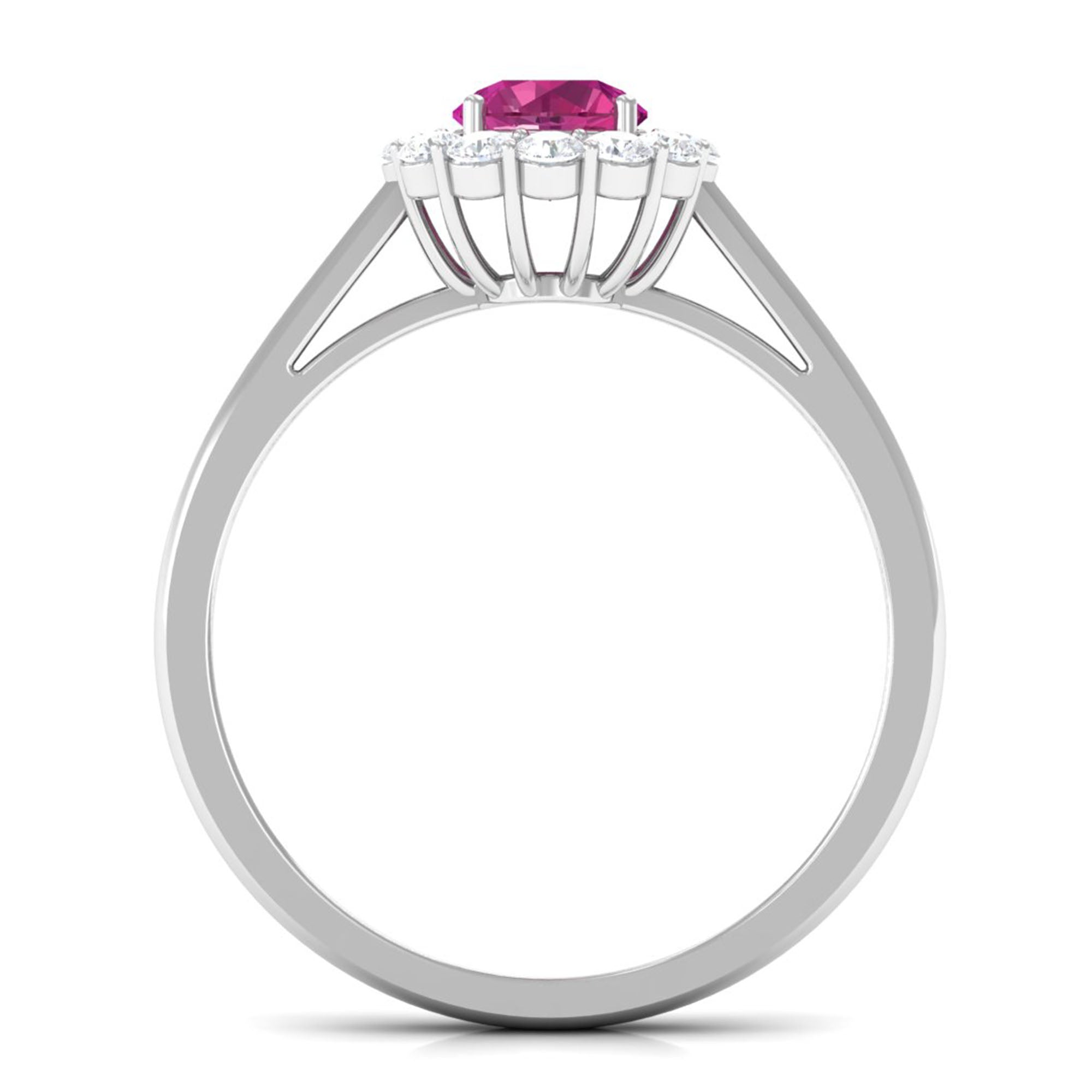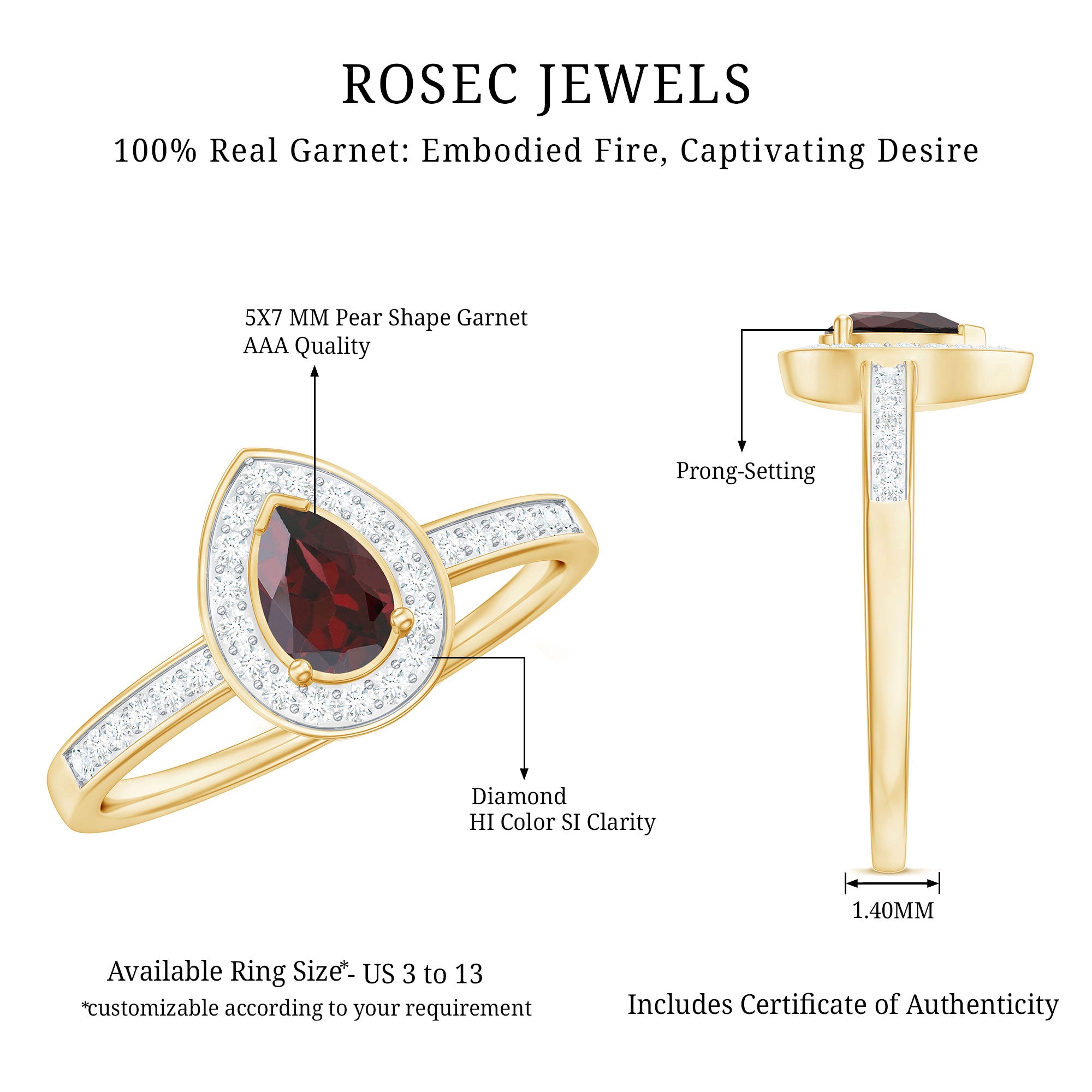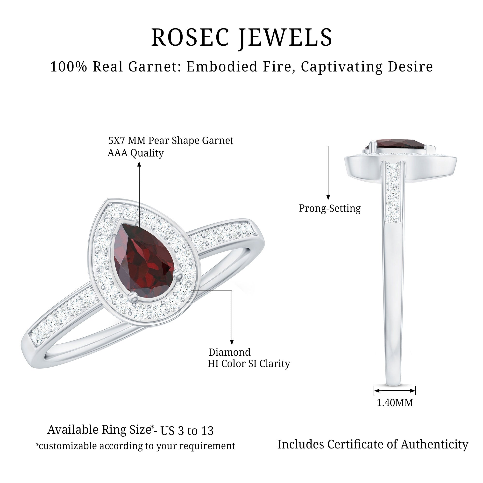 The halo highlights the pear-shaped diamond or gemstone's distinctive shape. In contrast, the diamond or gemstone oozes grace and timeless beauty, creating a beautiful ring.