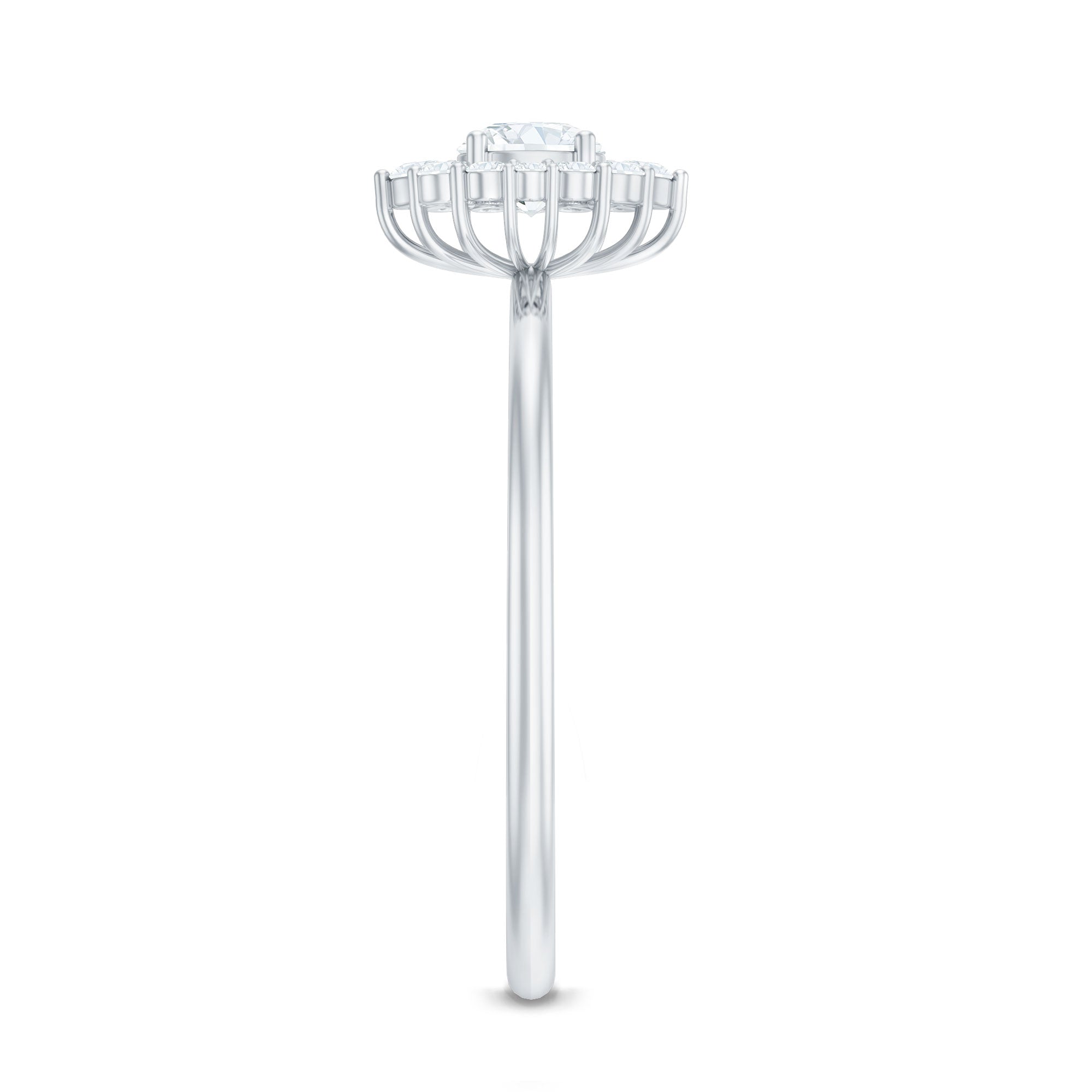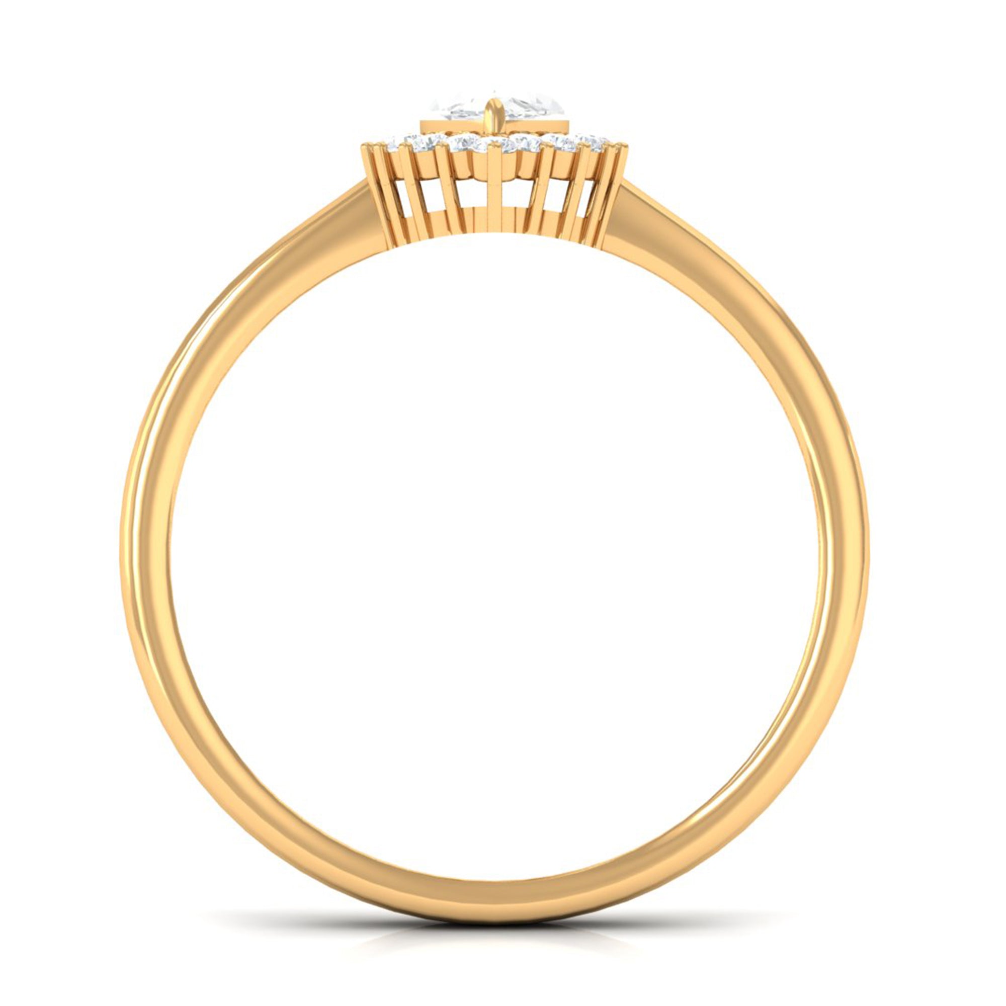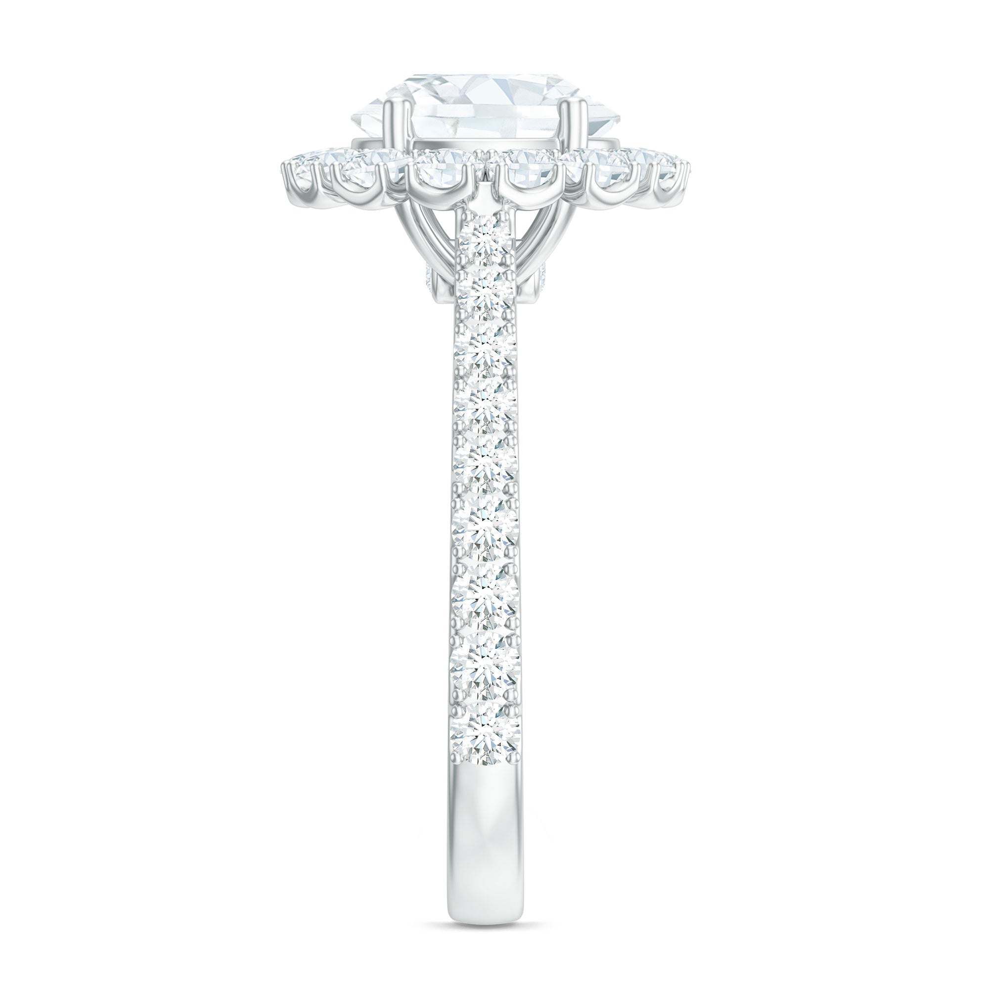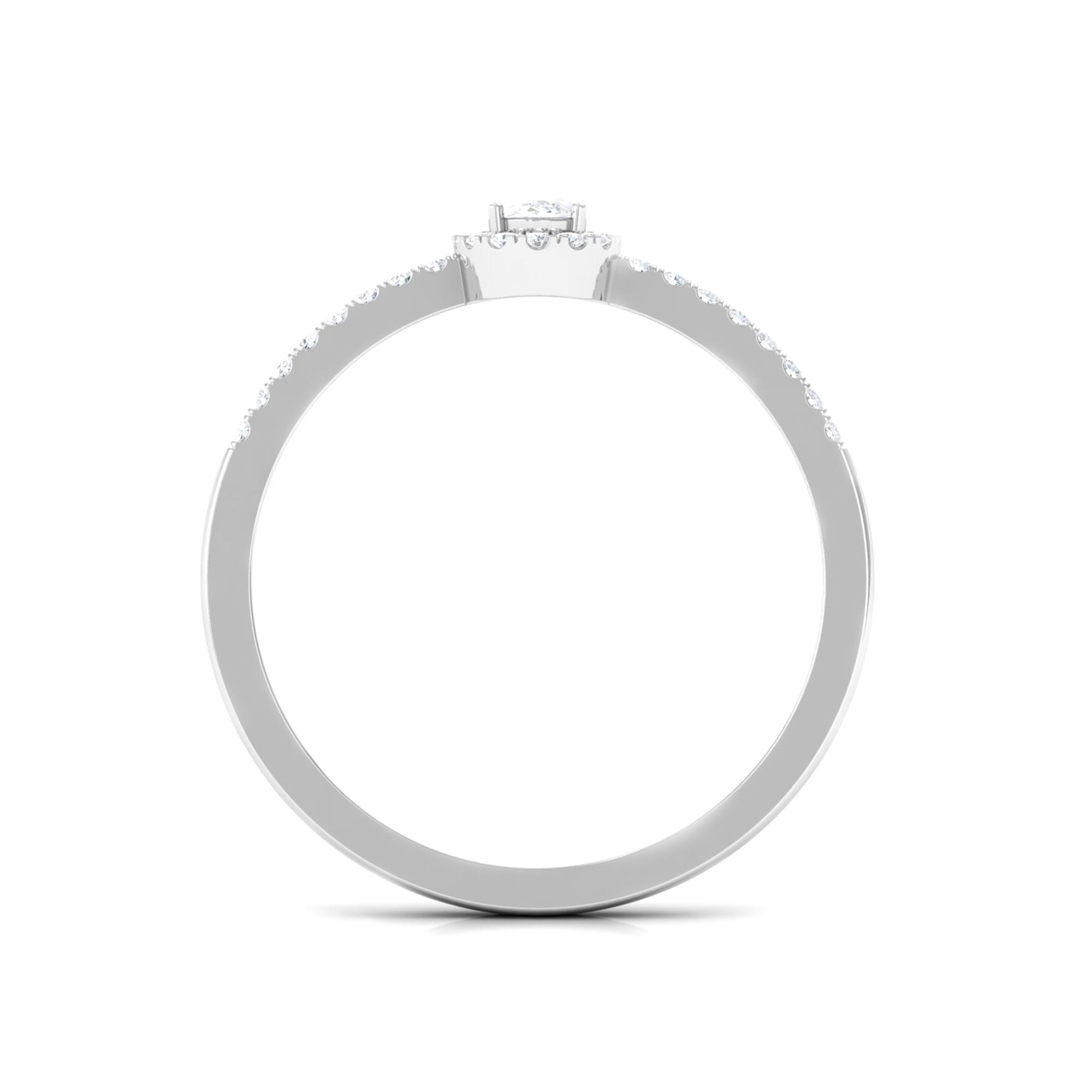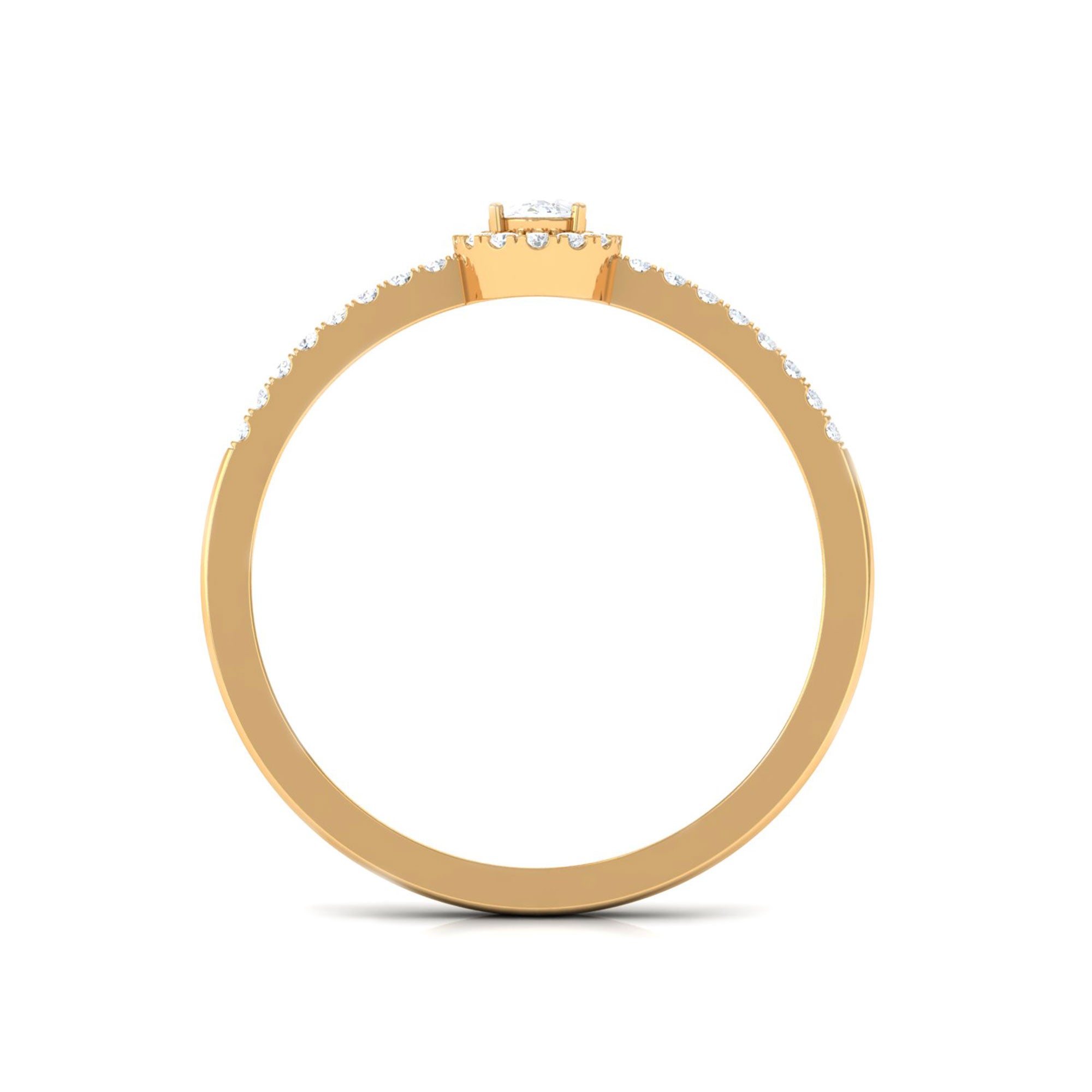 The pear shaped halo engagement ring is an attractive option for individuals who want a more distinctive and exquisite appearance. This design mixes traditional sophistication with a dash of modern flair with its teardrop-shaped center stone and the surrounding halo.