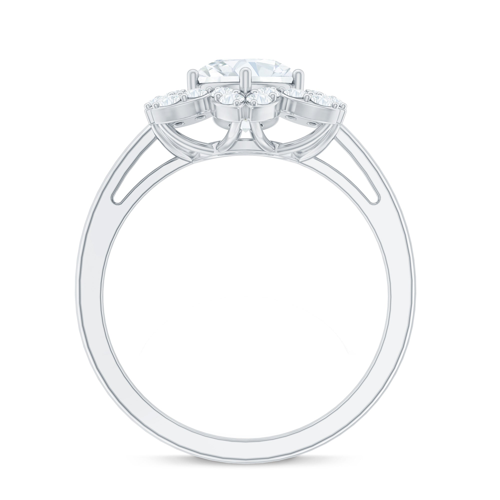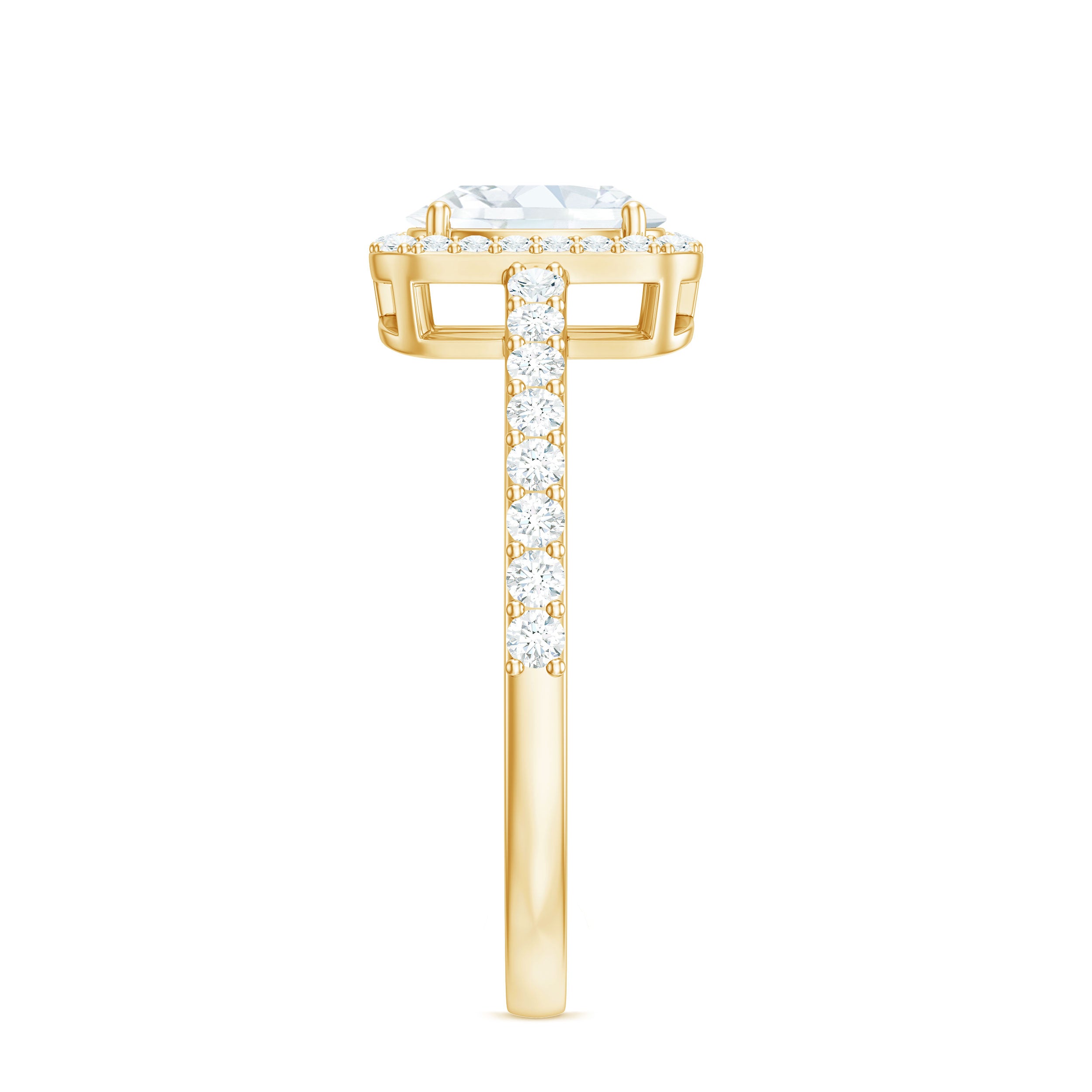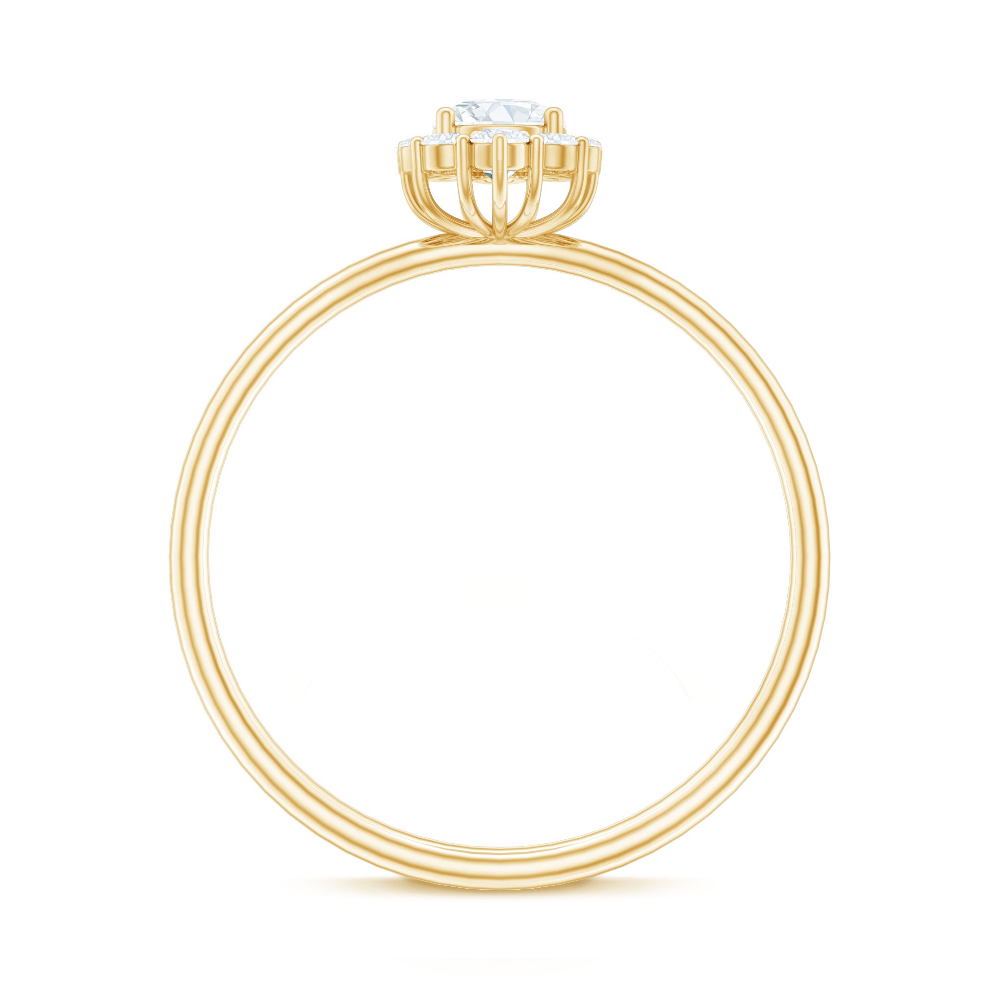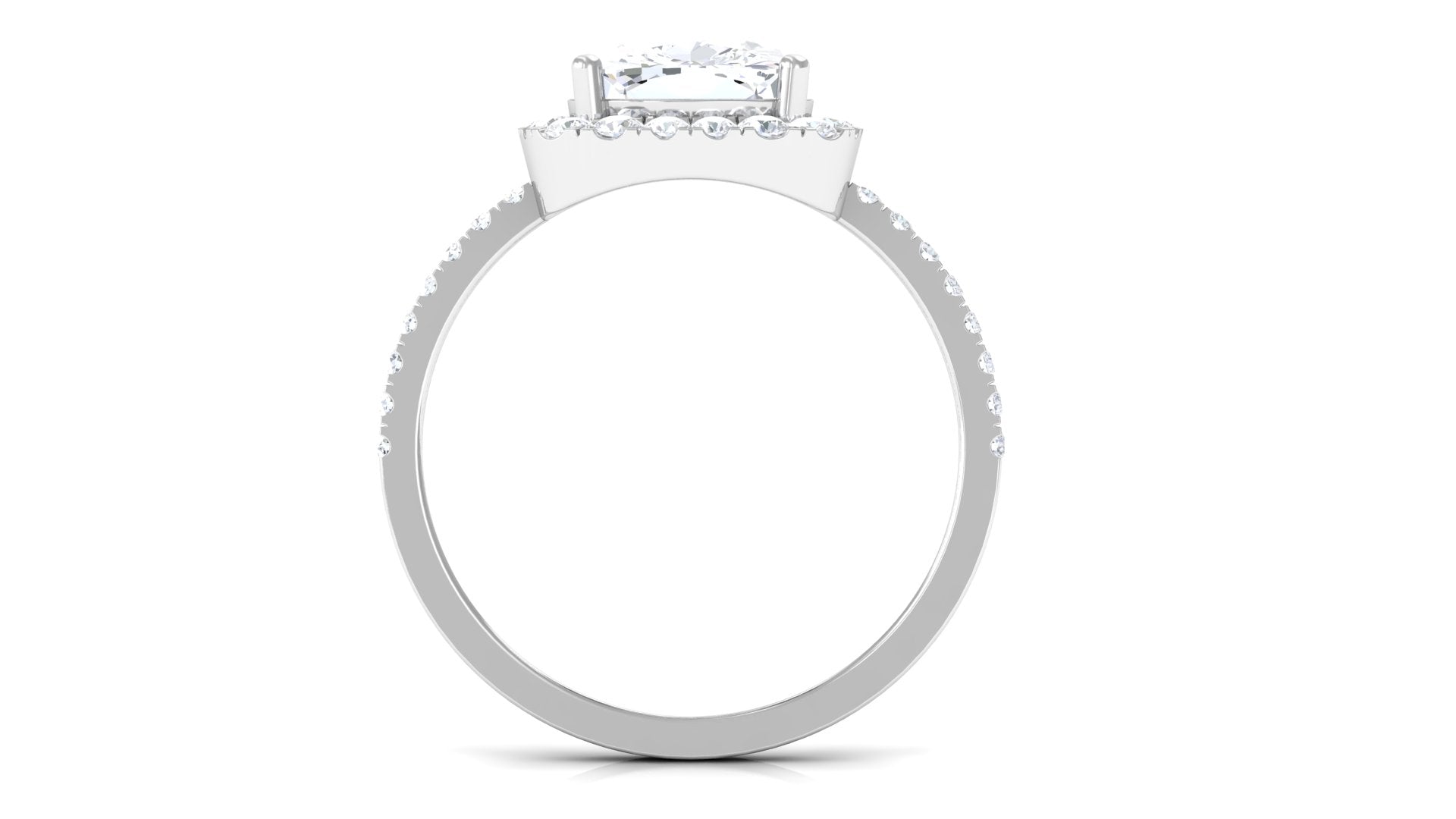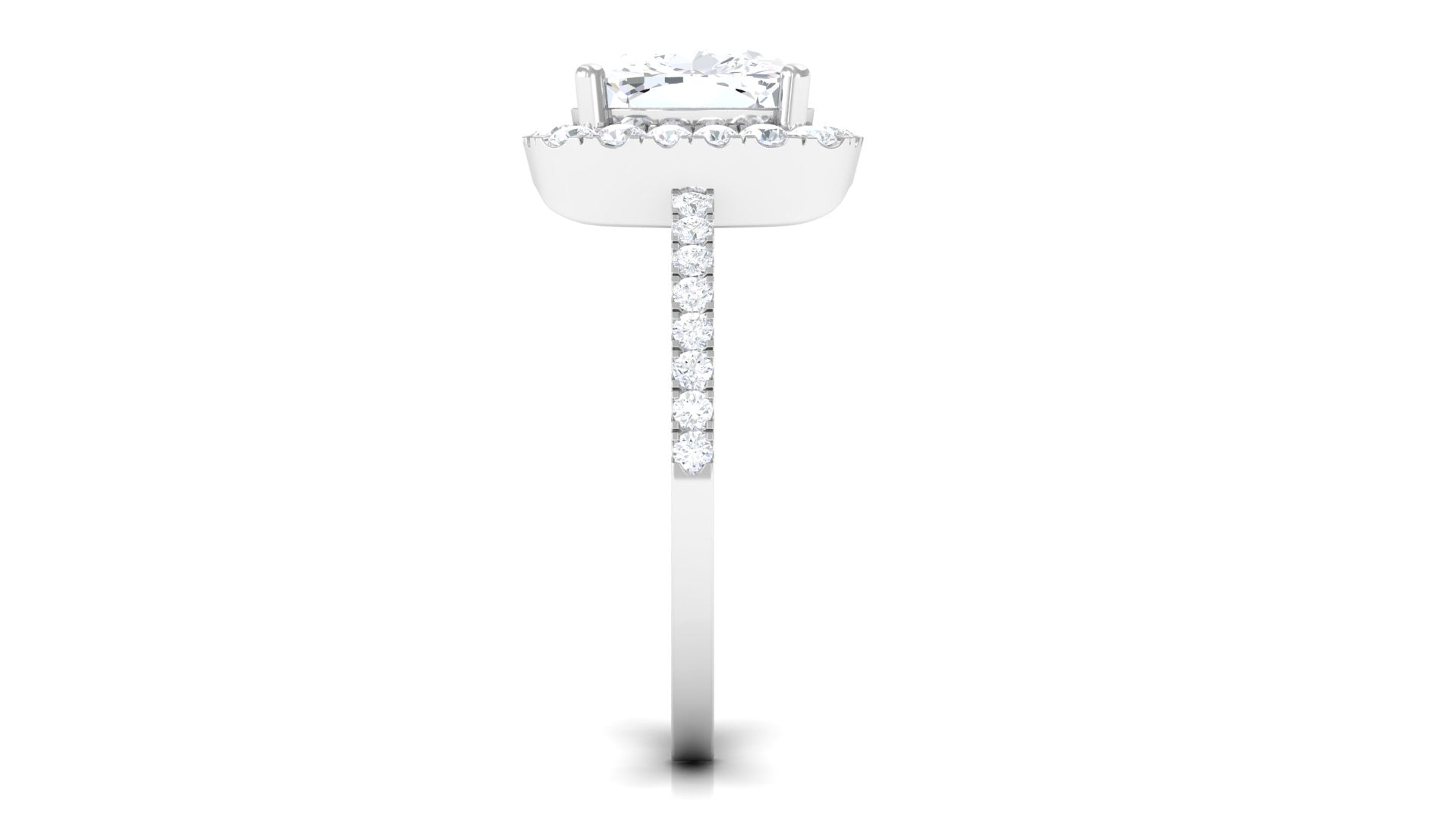 The pear shaped halo engagement ring is an attractive option for individuals who want a more distinctive and exquisite appearance. This design mixes traditional sophistication with a dash of modern flair with its teardrop-shaped center stone and the surrounding halo.
