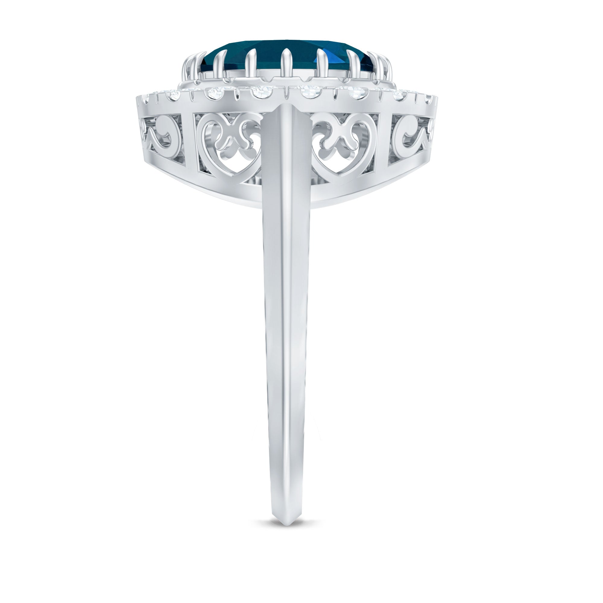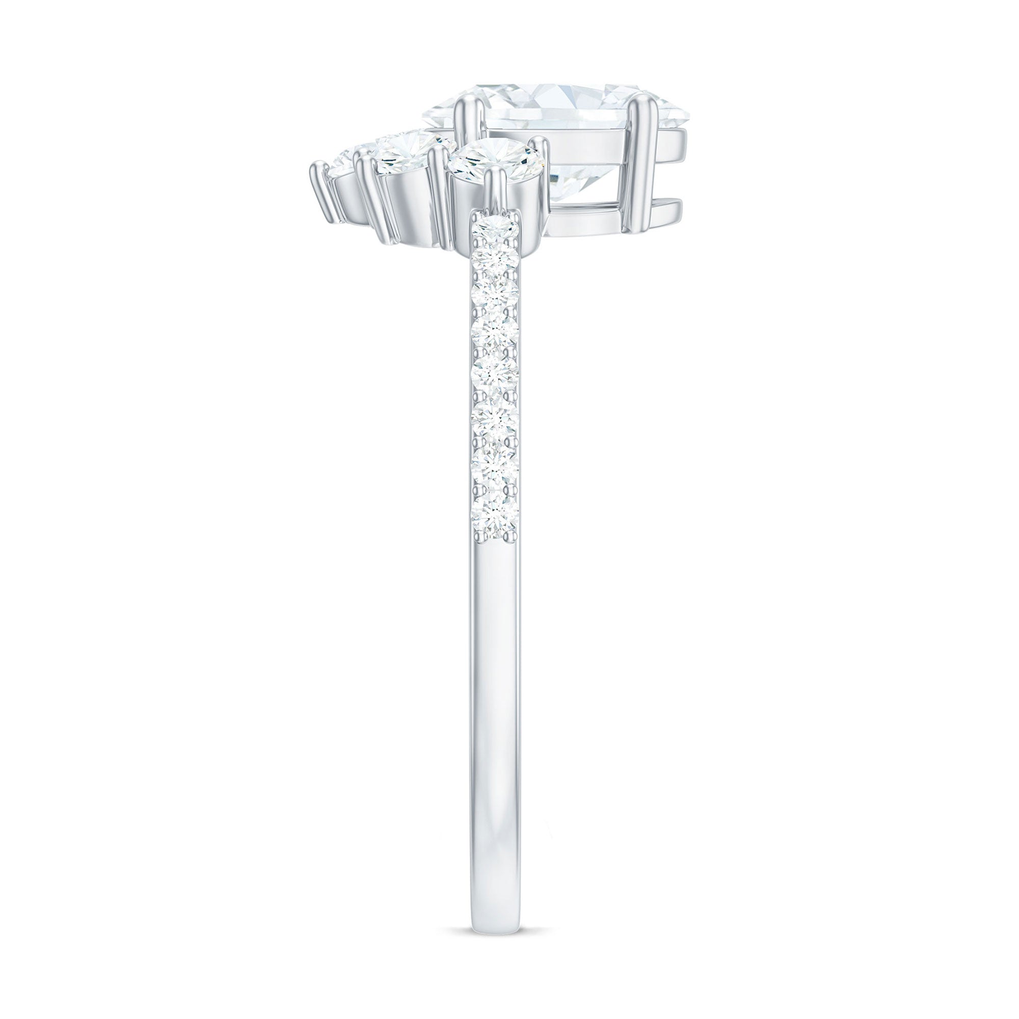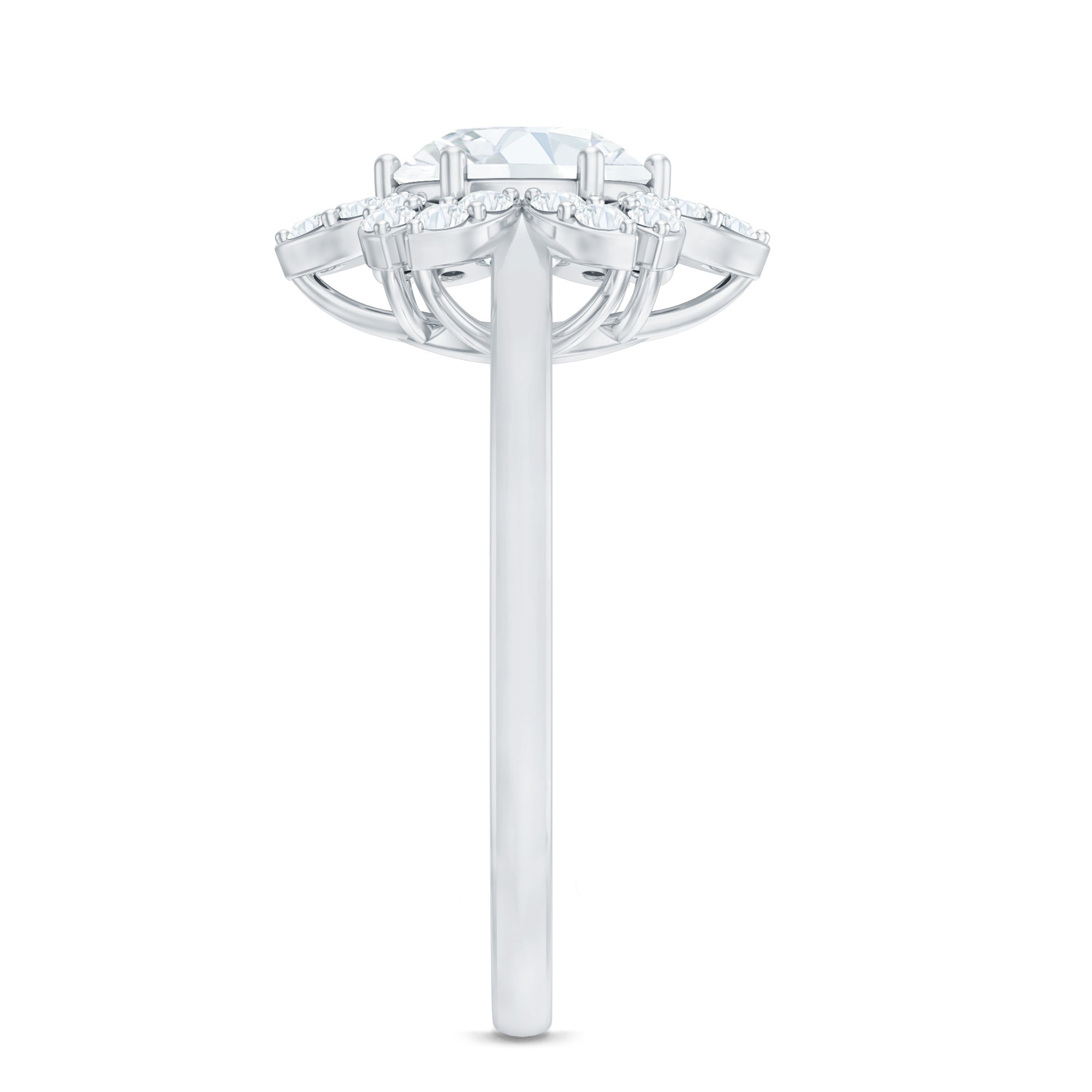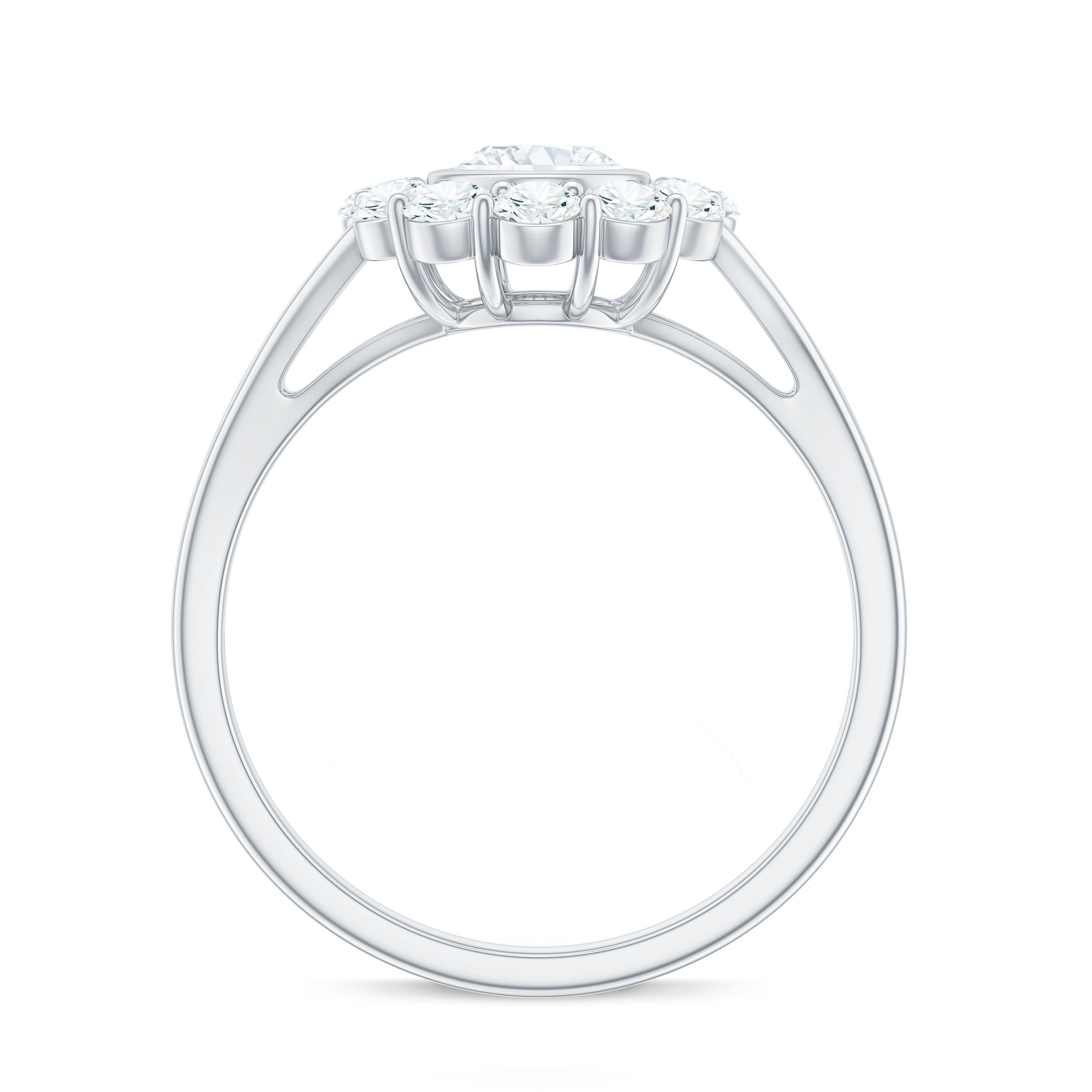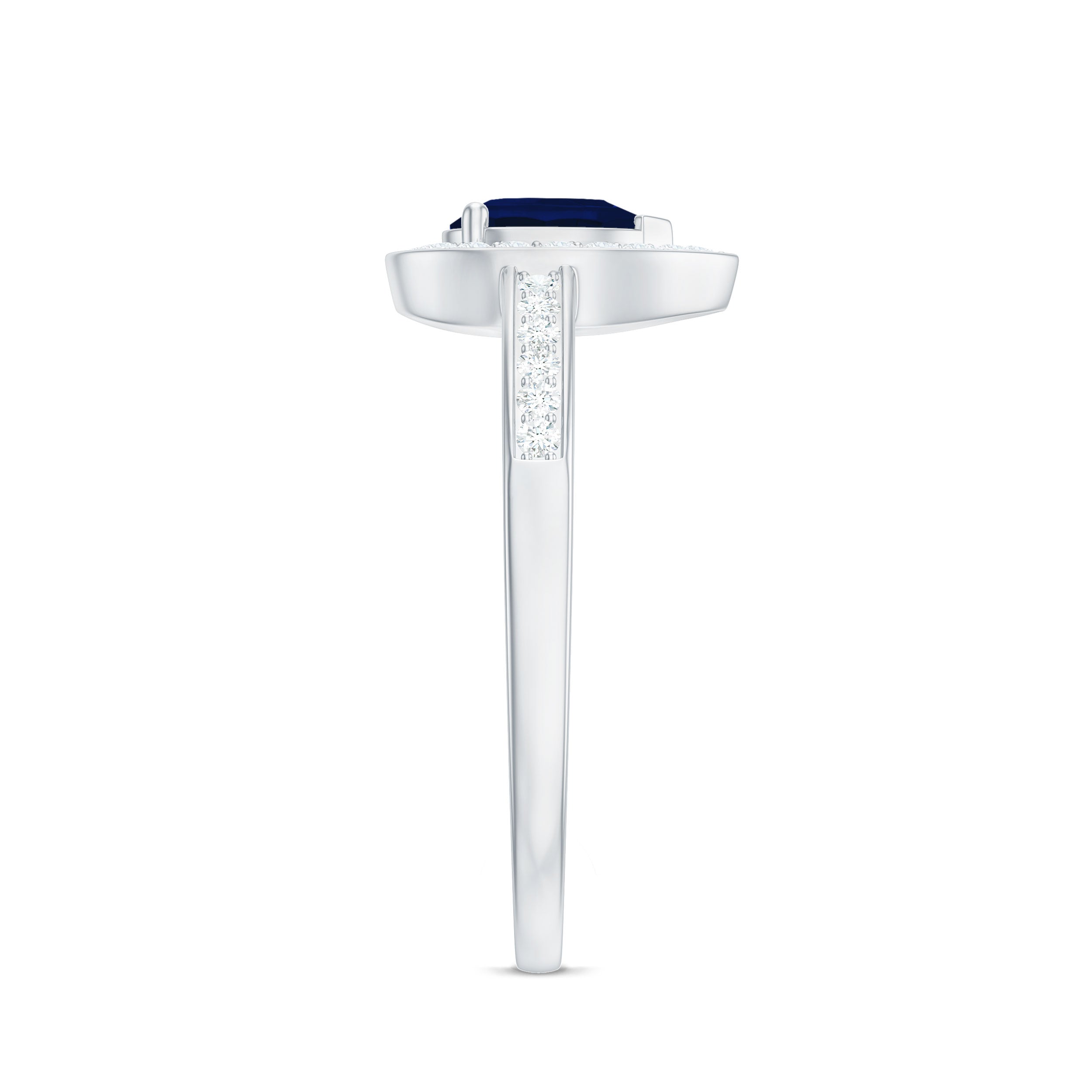 The pear shaped halo engagement ring is an attractive option for individuals who want a more distinctive and exquisite appearance. This design mixes traditional sophistication with a dash of modern flair with its teardrop-shaped center stone and the surrounding halo.