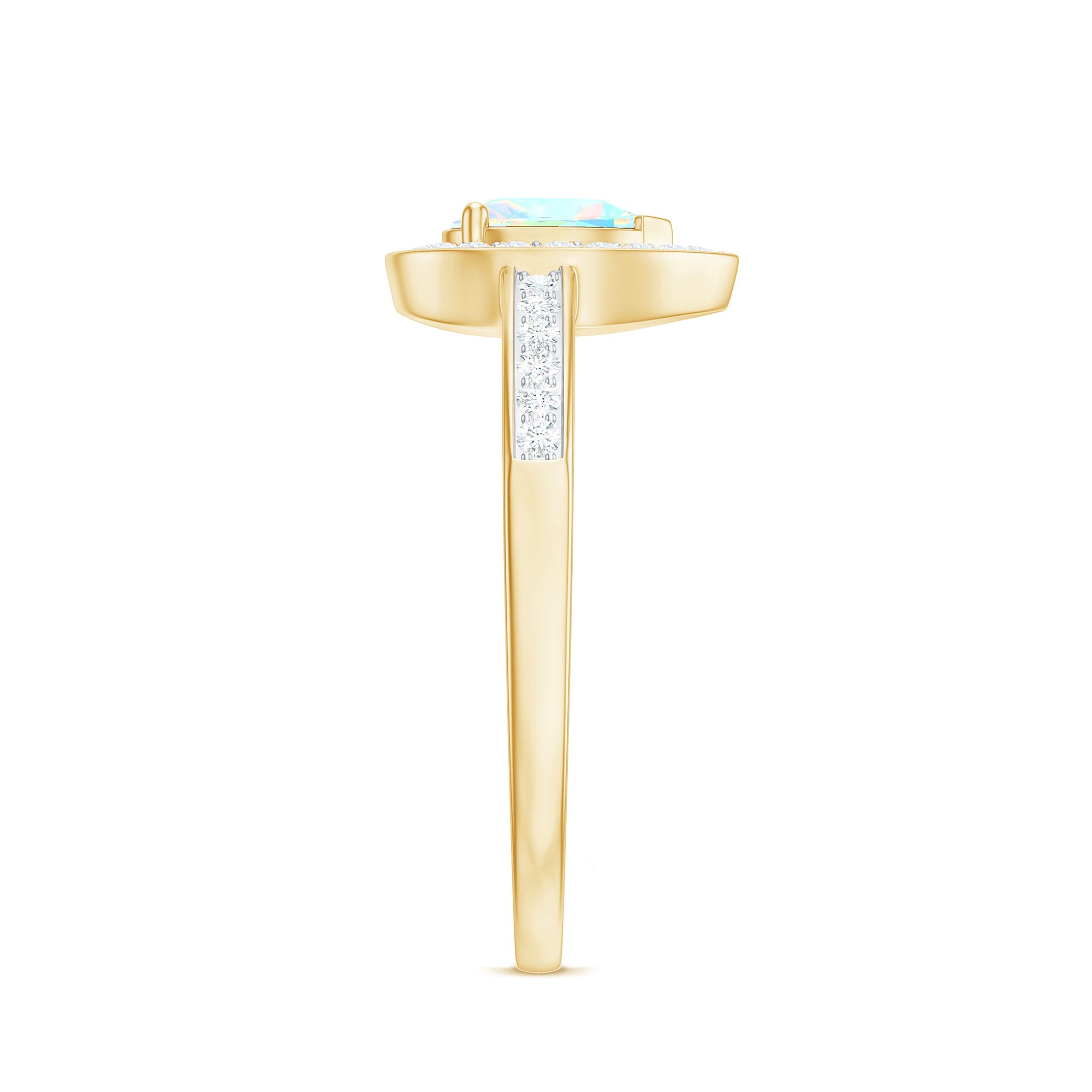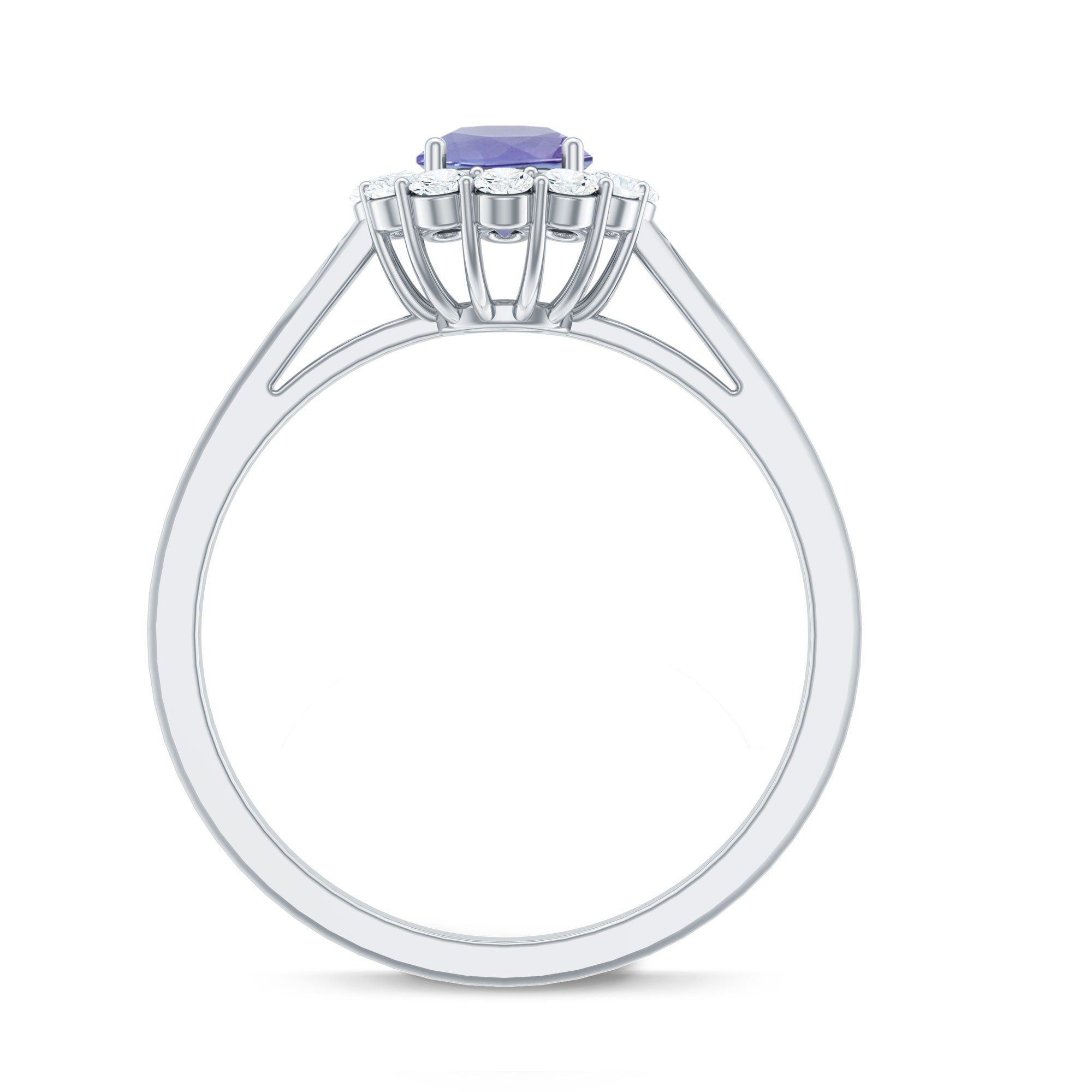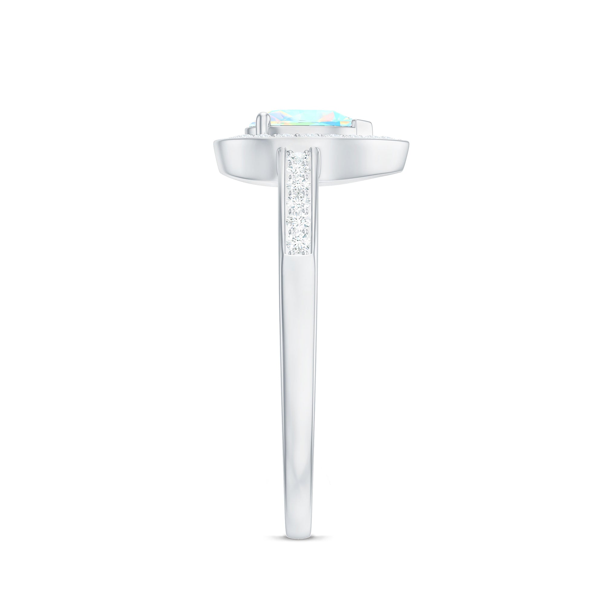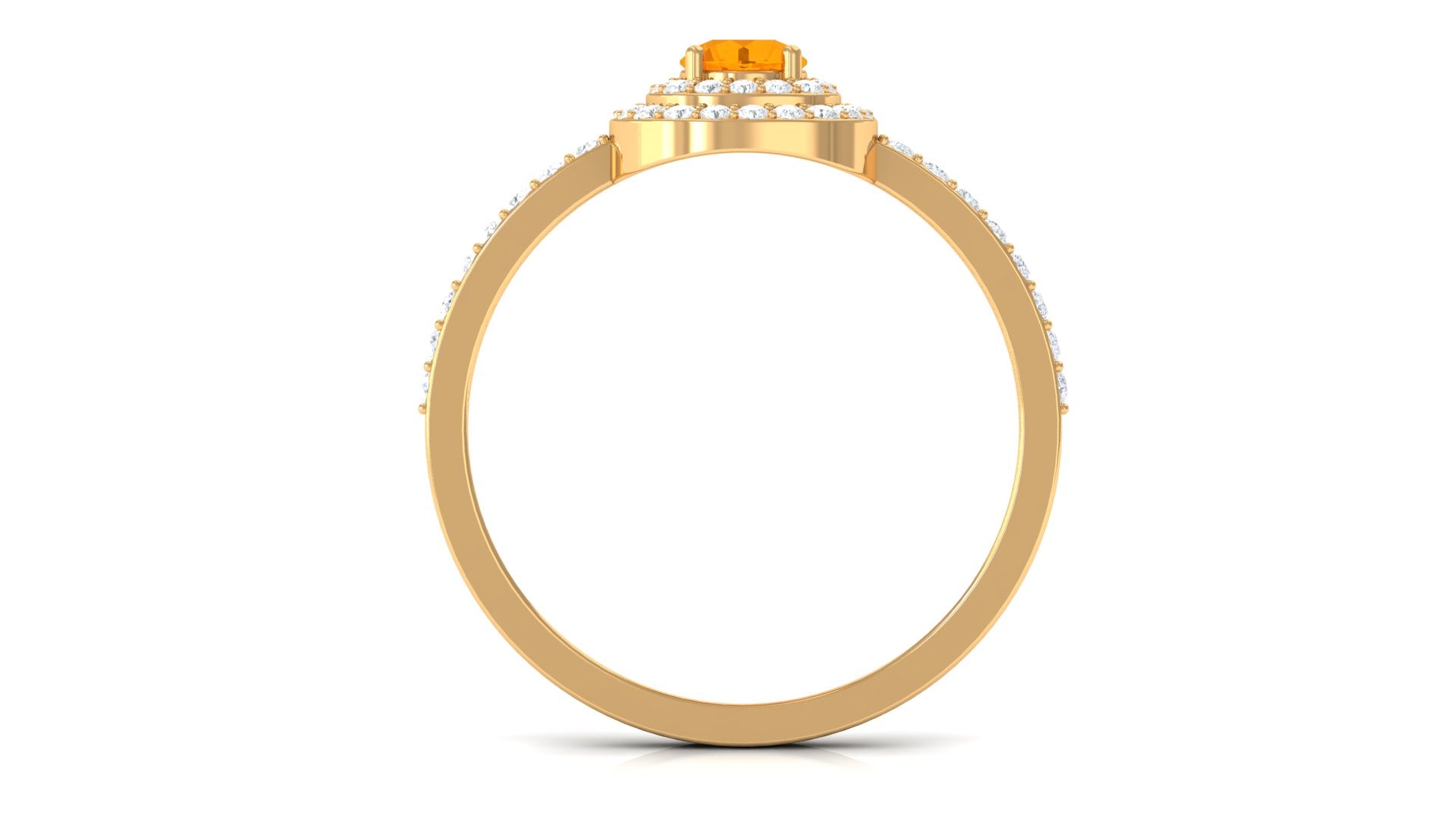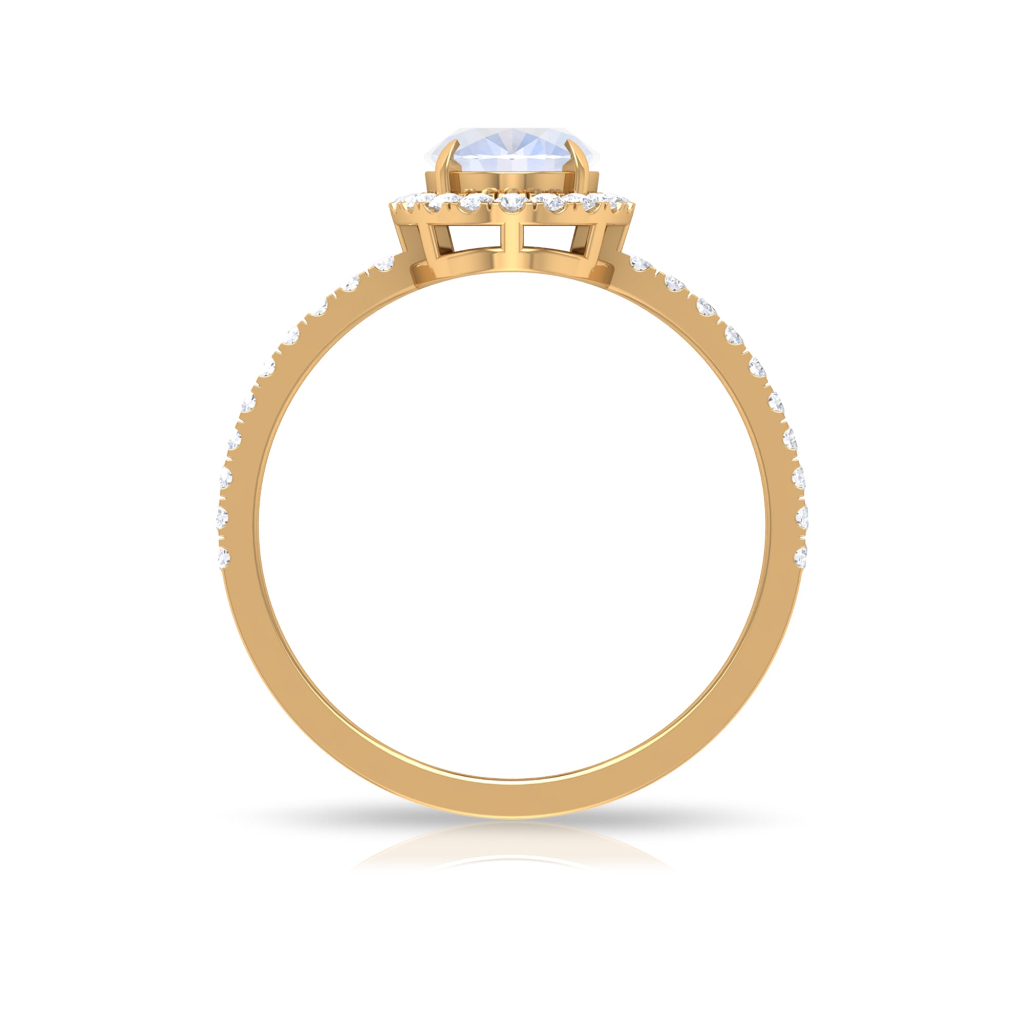 The pear shaped halo engagement ring is an attractive option for individuals who want a more distinctive and exquisite appearance. This design mixes traditional sophistication with a dash of modern flair with its teardrop-shaped center stone and the surrounding halo.