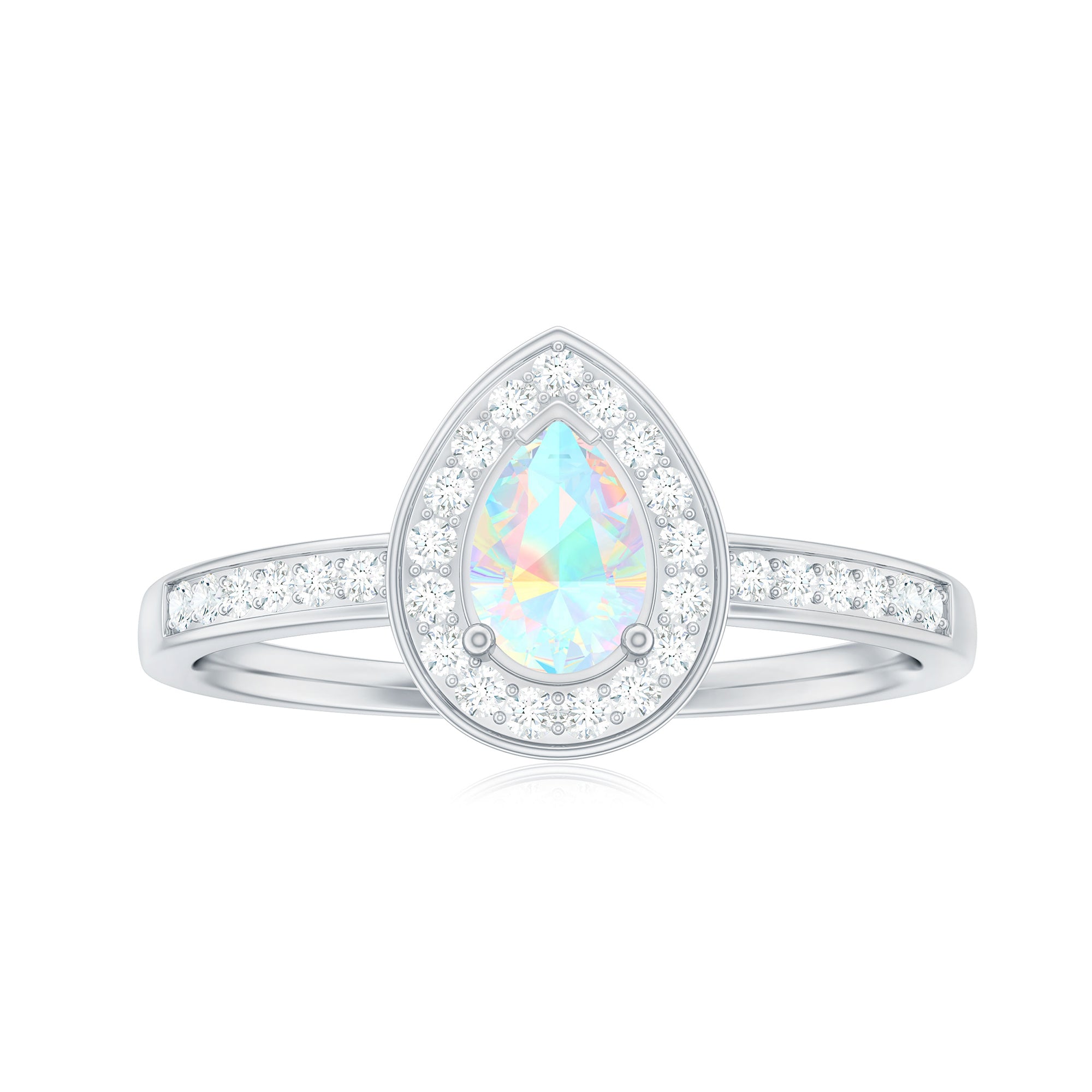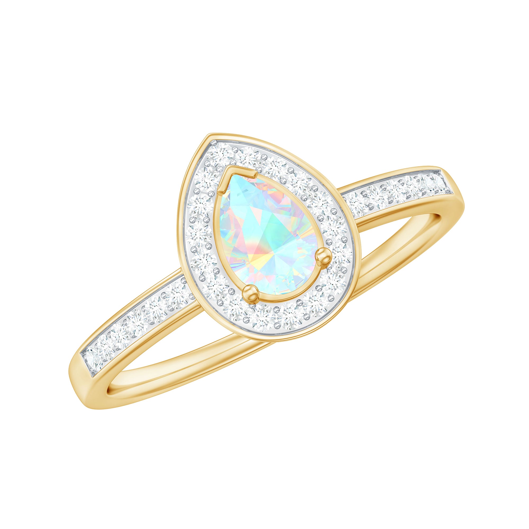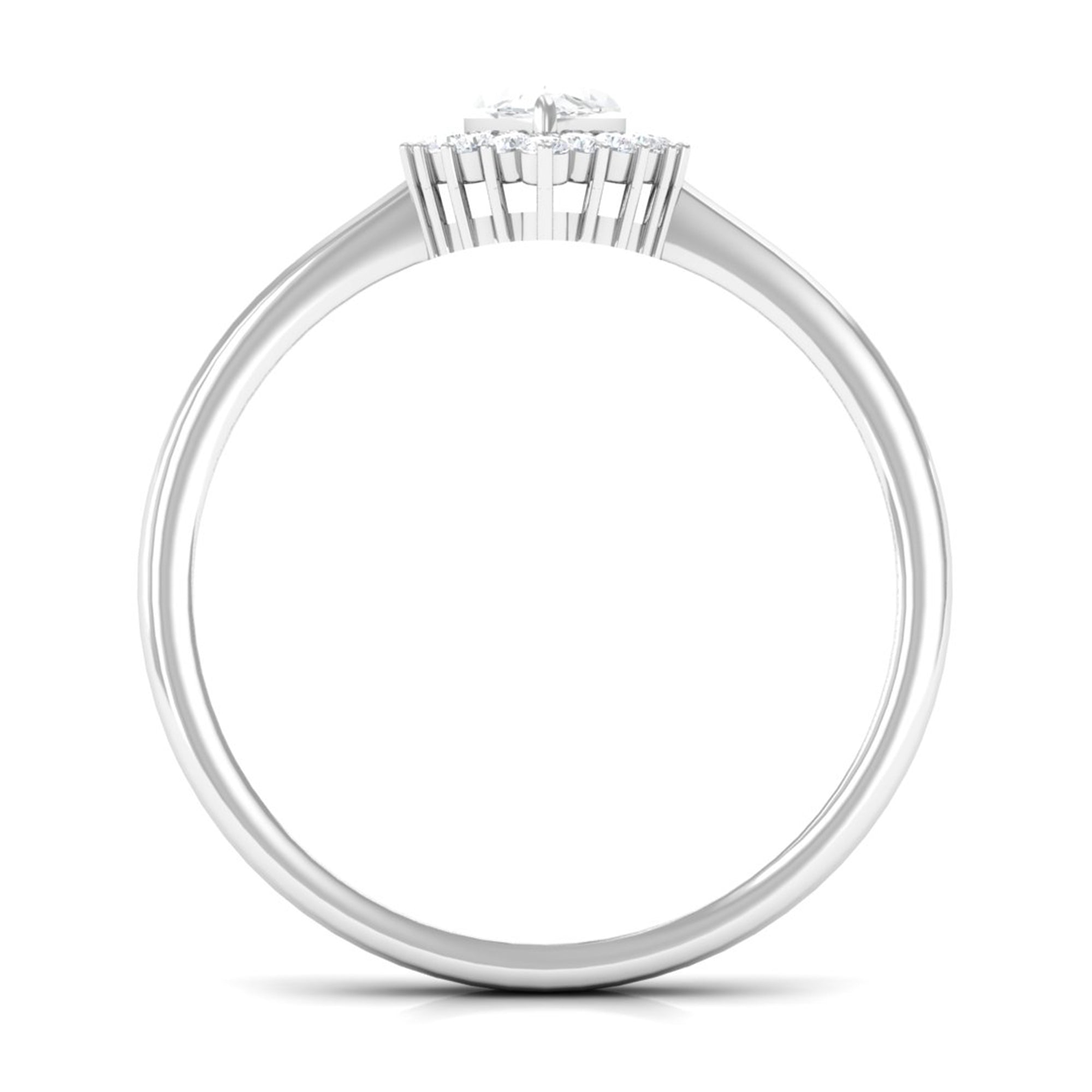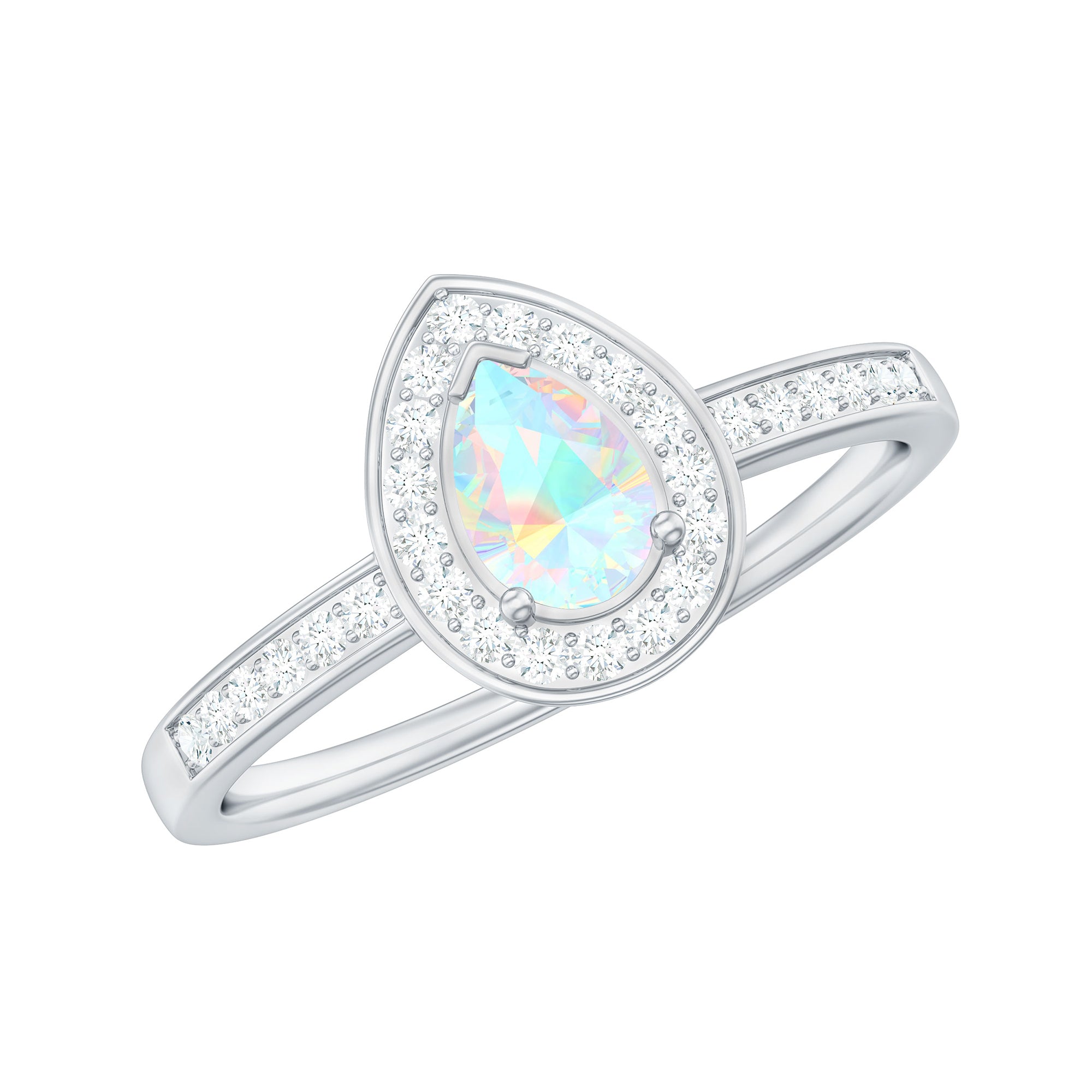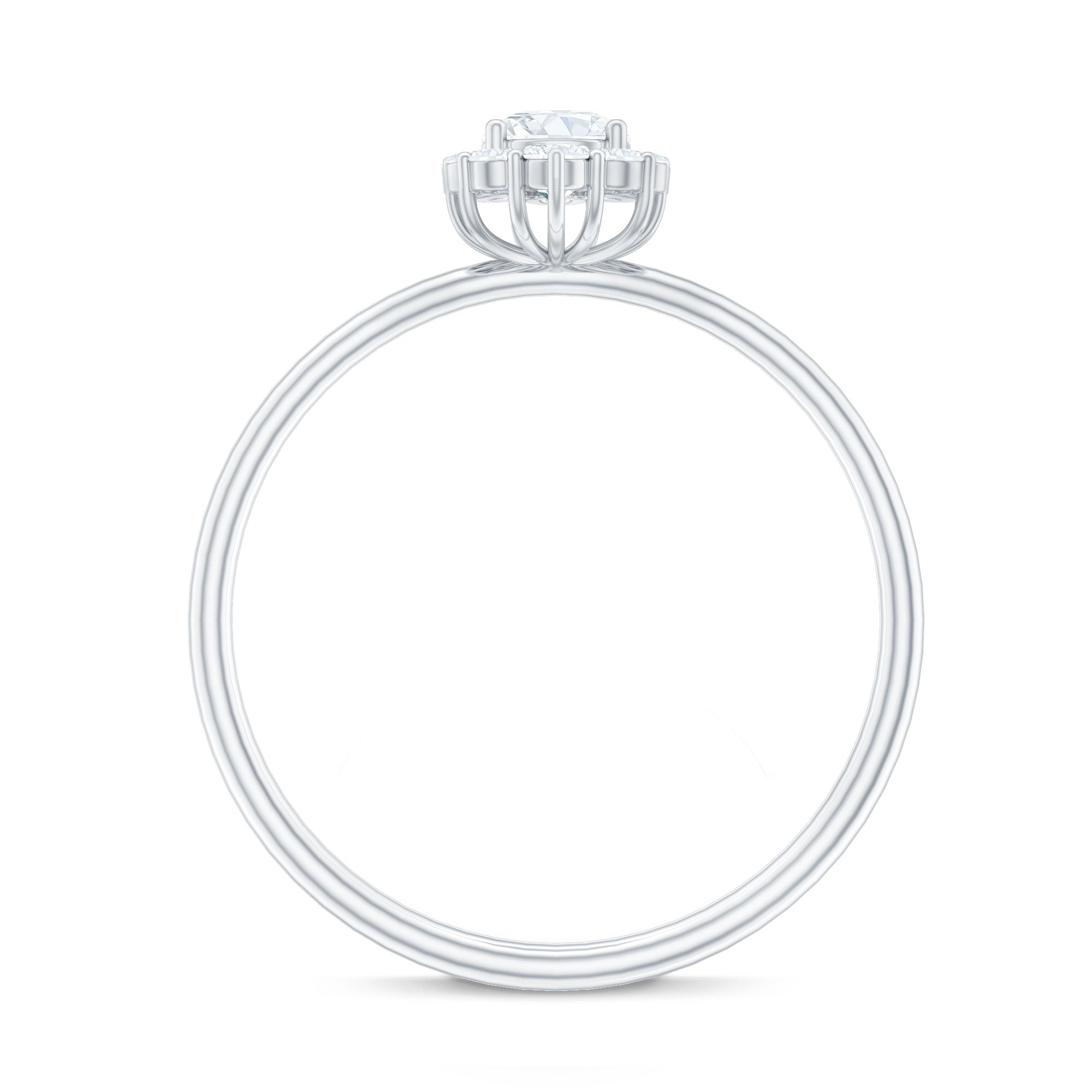 The halo highlights the pear-shaped diamond or gemstone's distinctive shape. In contrast, the diamond or gemstone oozes grace and timeless beauty, creating a beautiful ring.