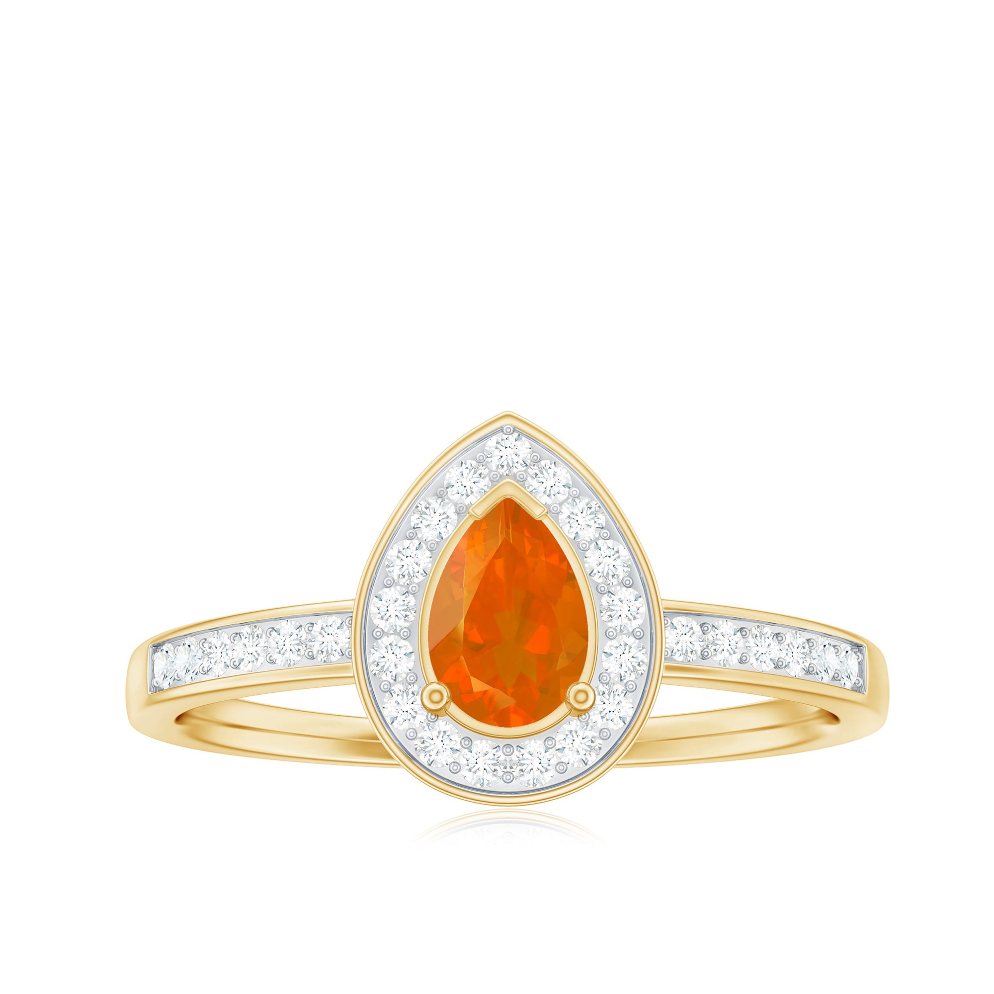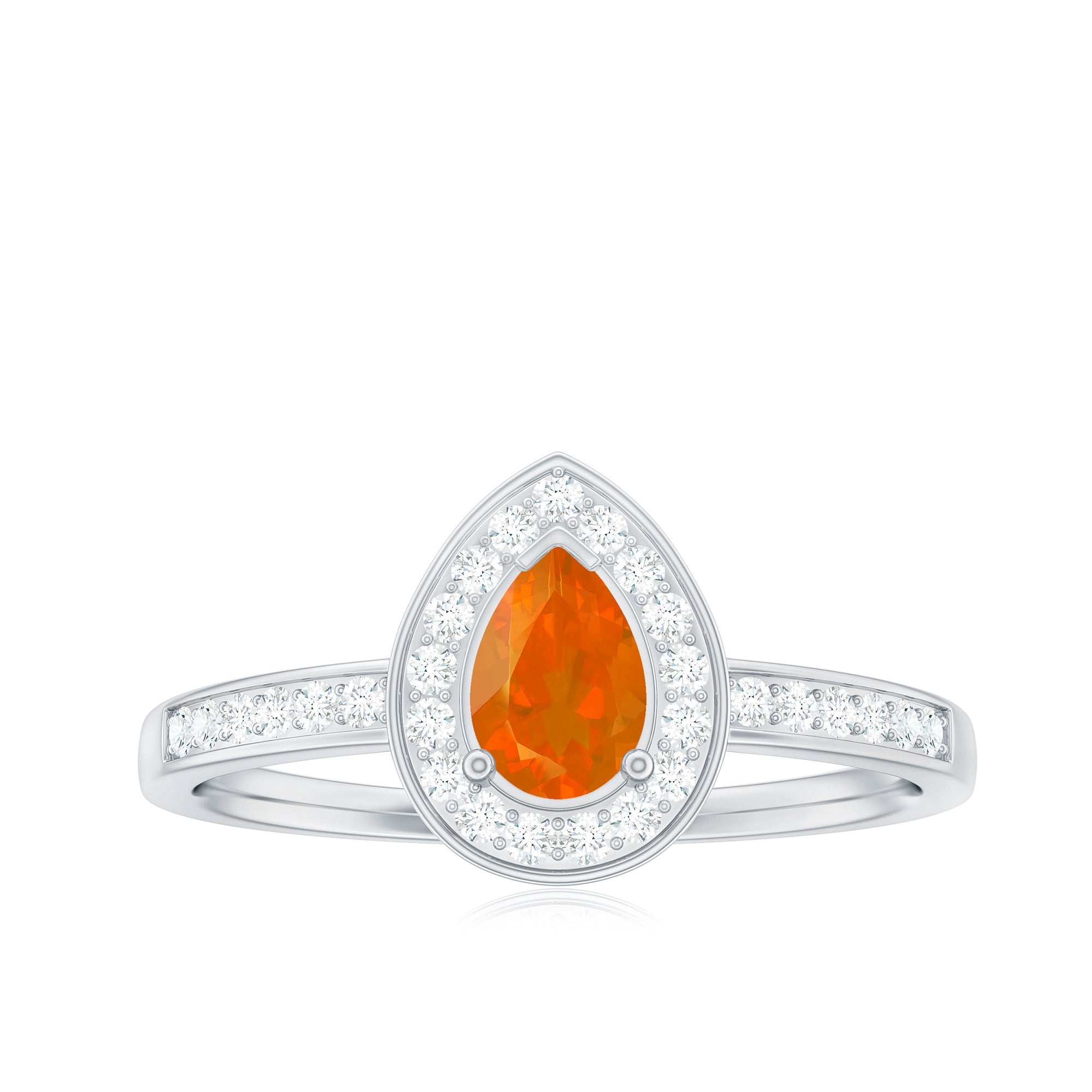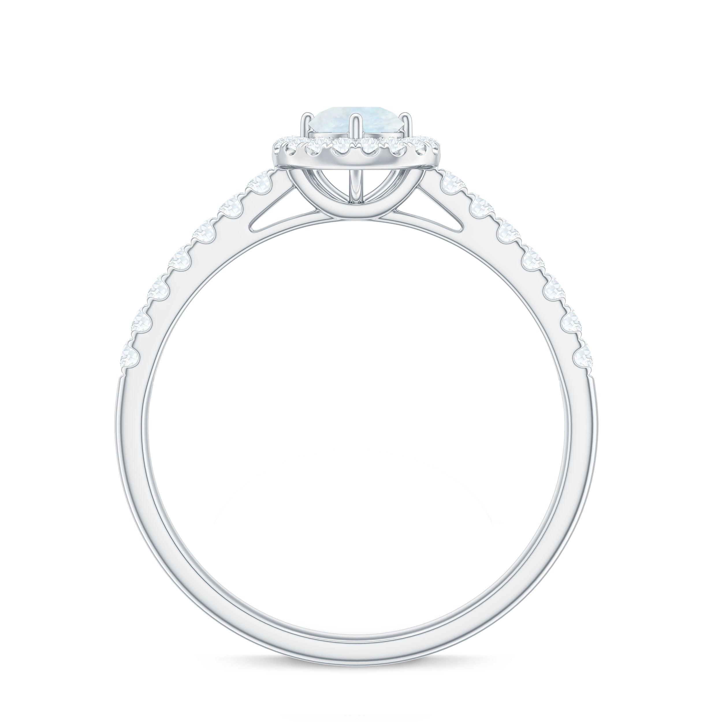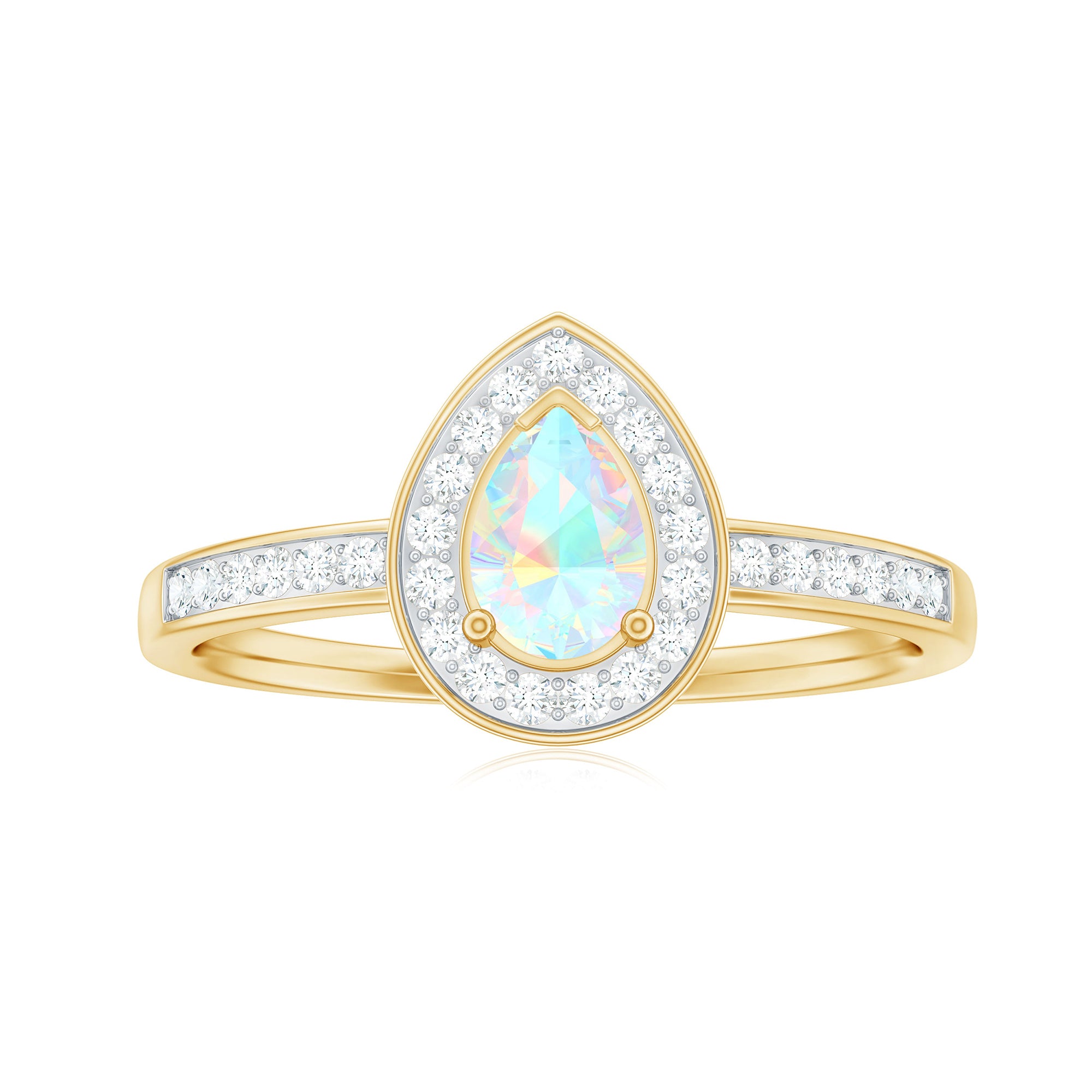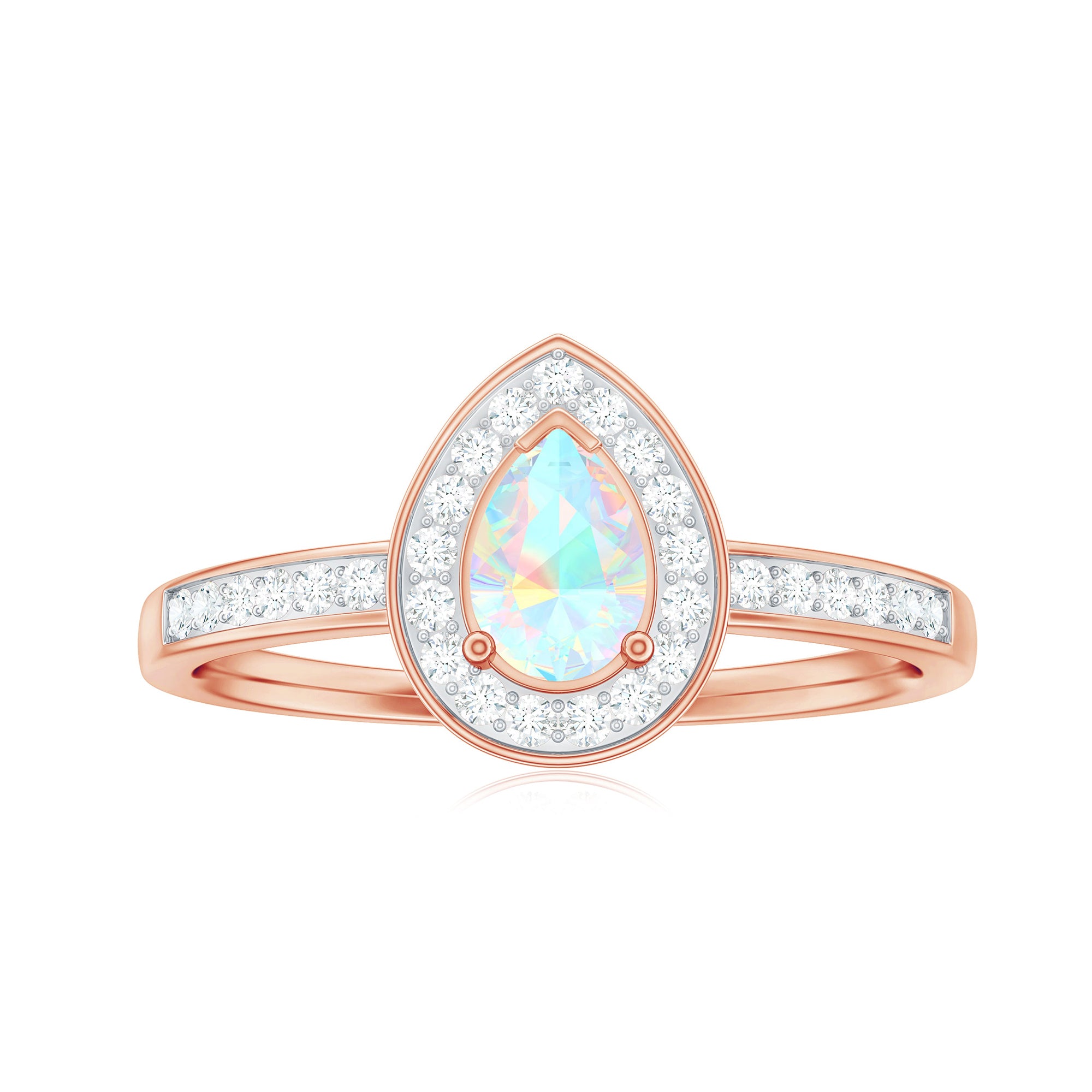 The halo highlights the pear-shaped diamond or gemstone's distinctive shape. In contrast, the diamond or gemstone oozes grace and timeless beauty, creating a beautiful ring.