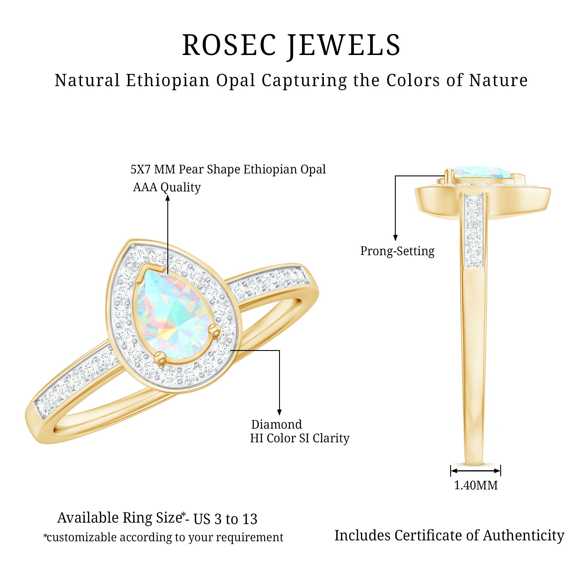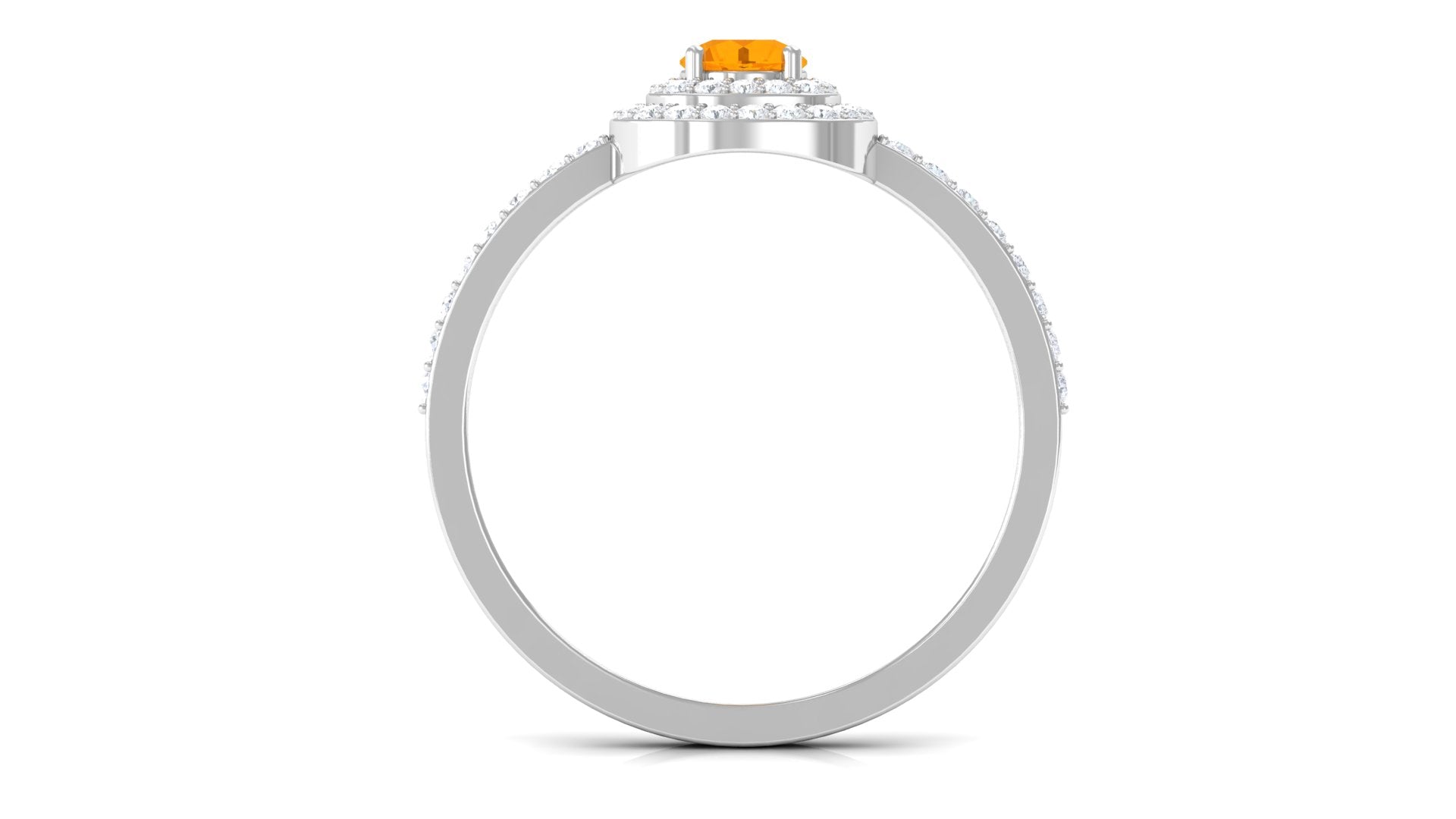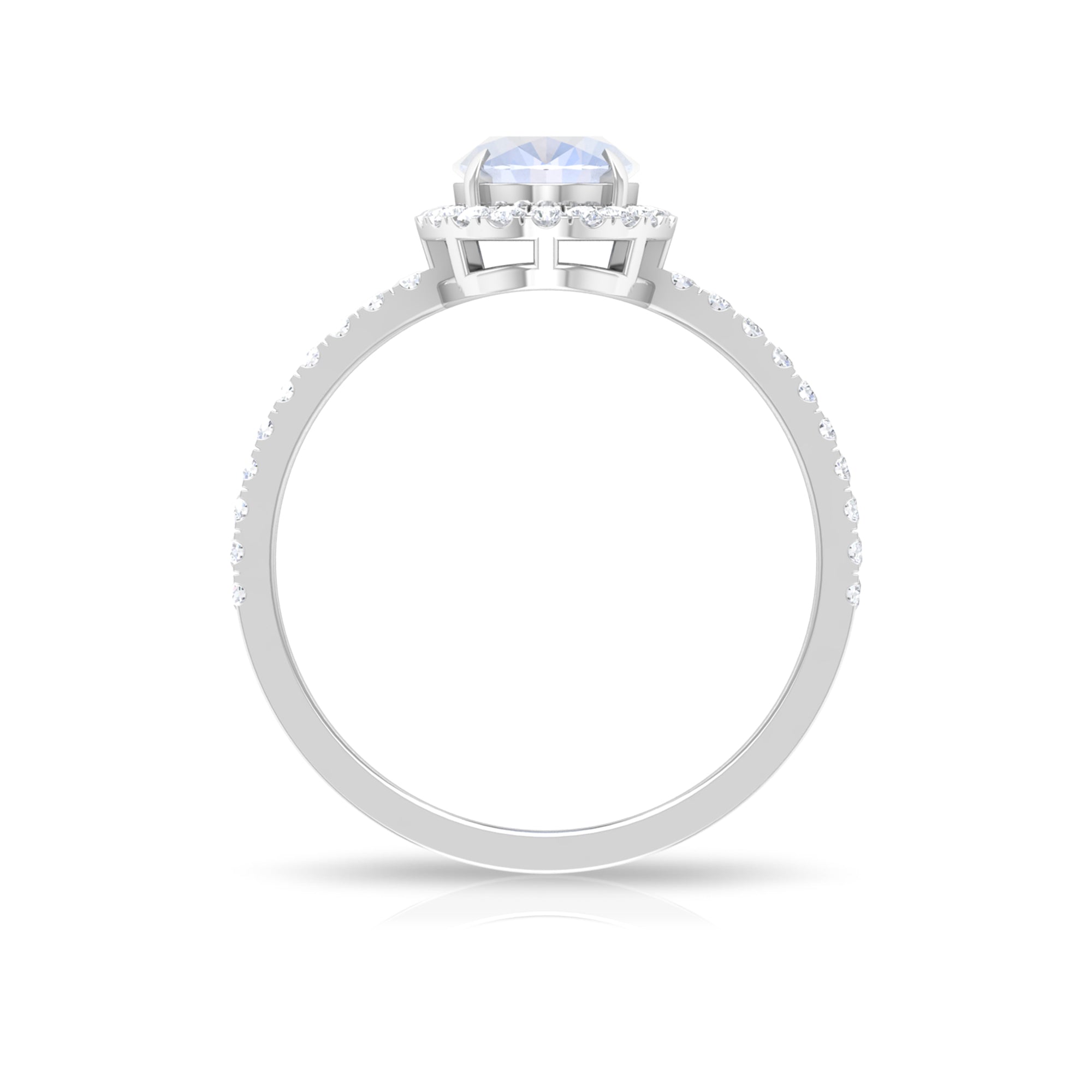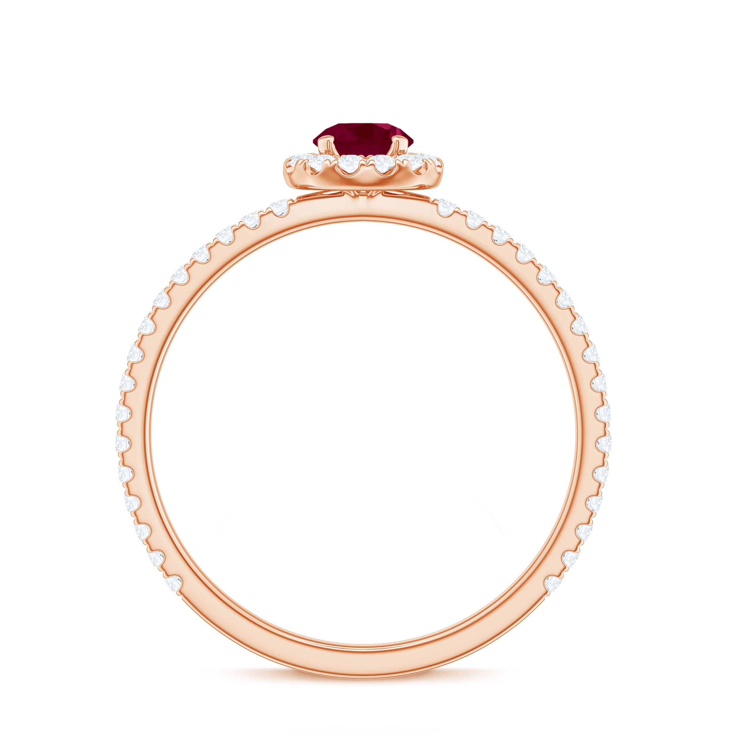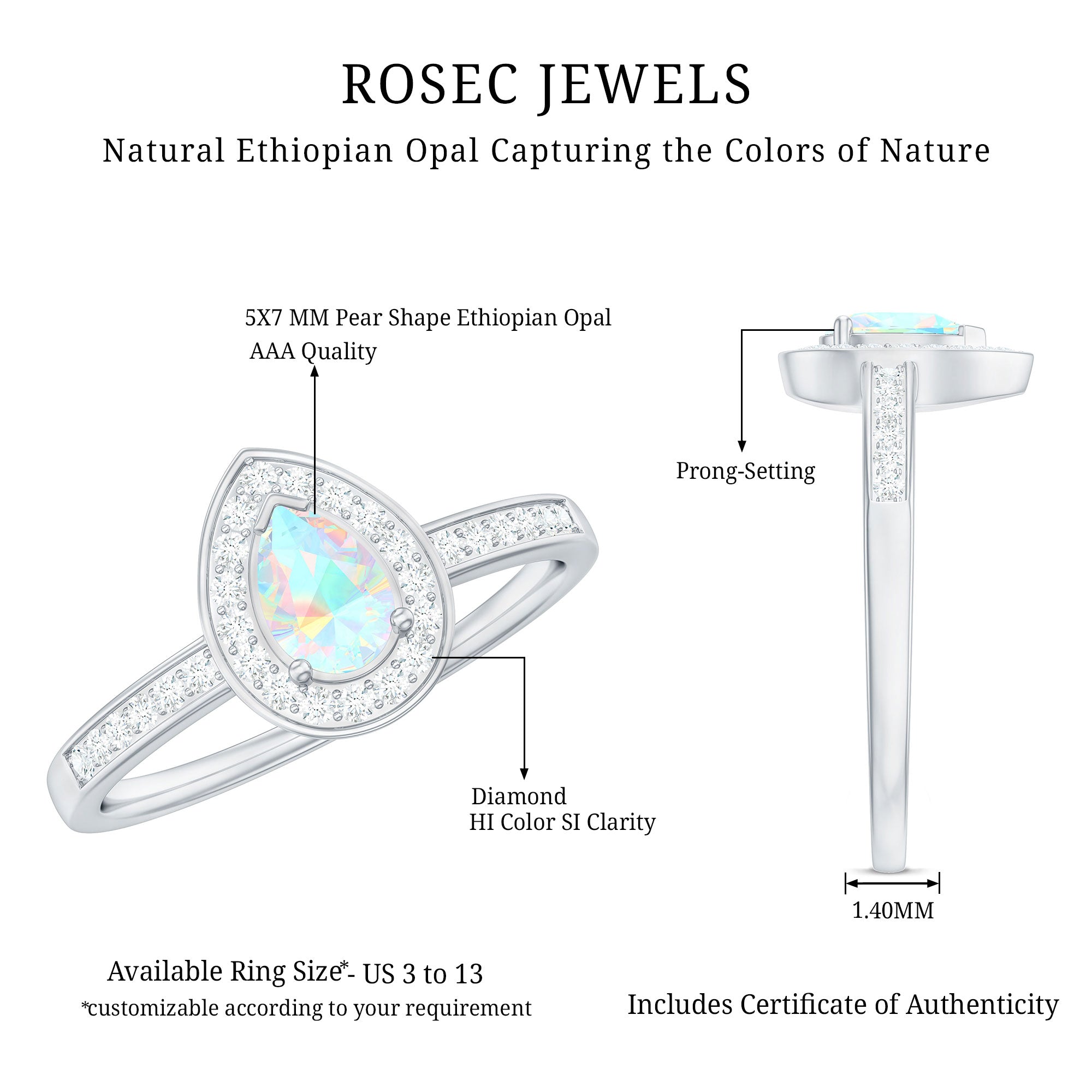 The halo highlights the pear-shaped diamond or gemstone's distinctive shape. In contrast, the diamond or gemstone oozes grace and timeless beauty, creating a beautiful ring.