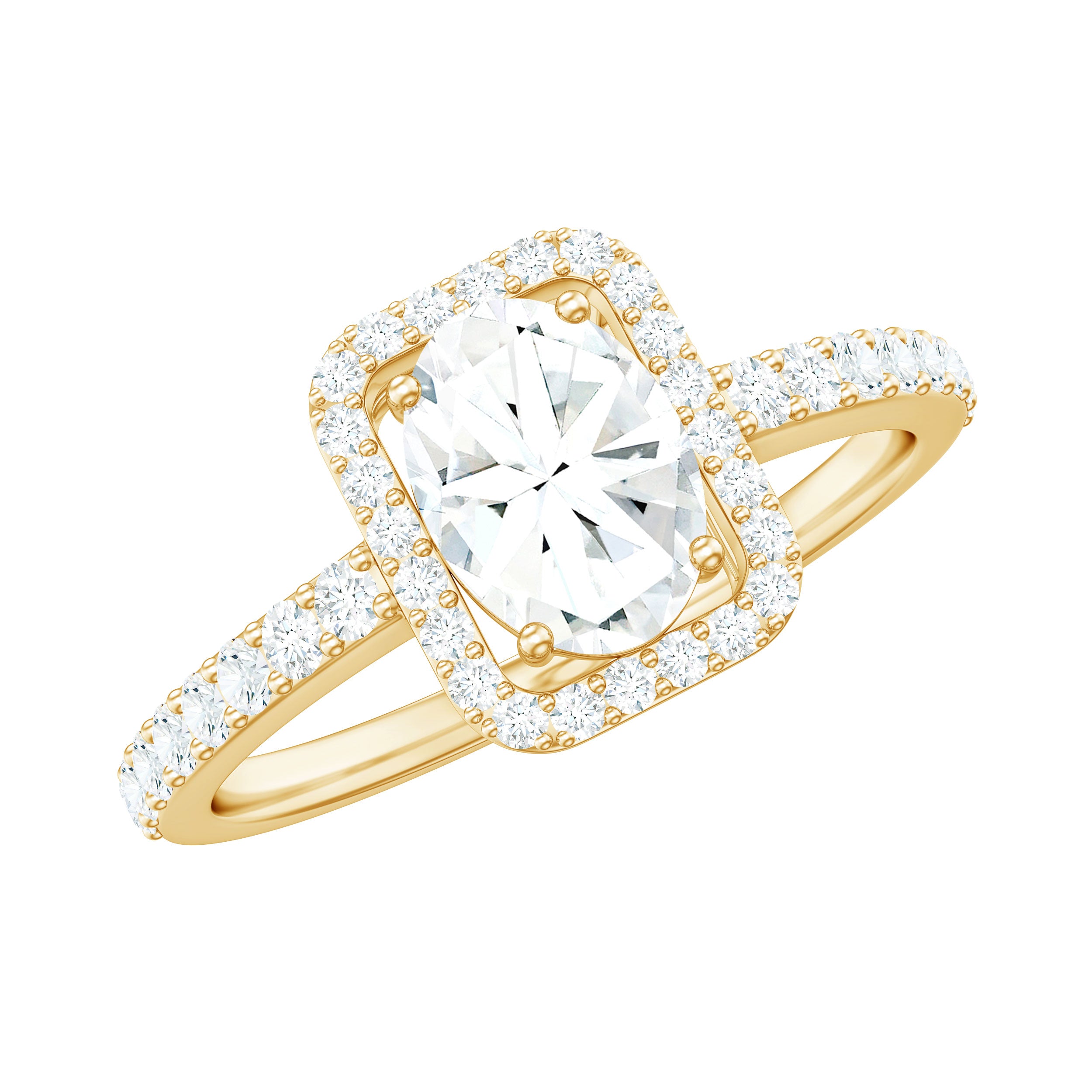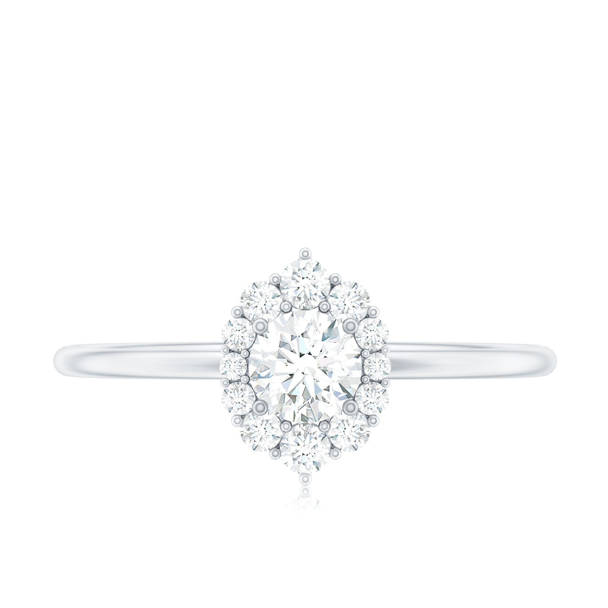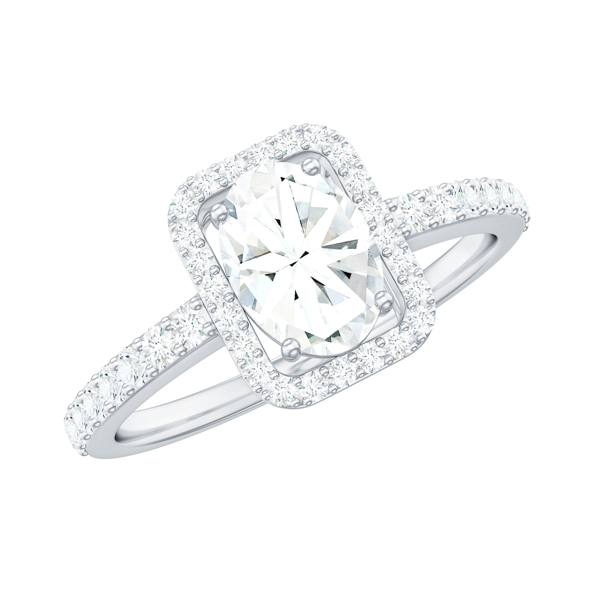 Oval halo engagement rings: The over-halo design looks attractive, sparkling, and unique at the same time.