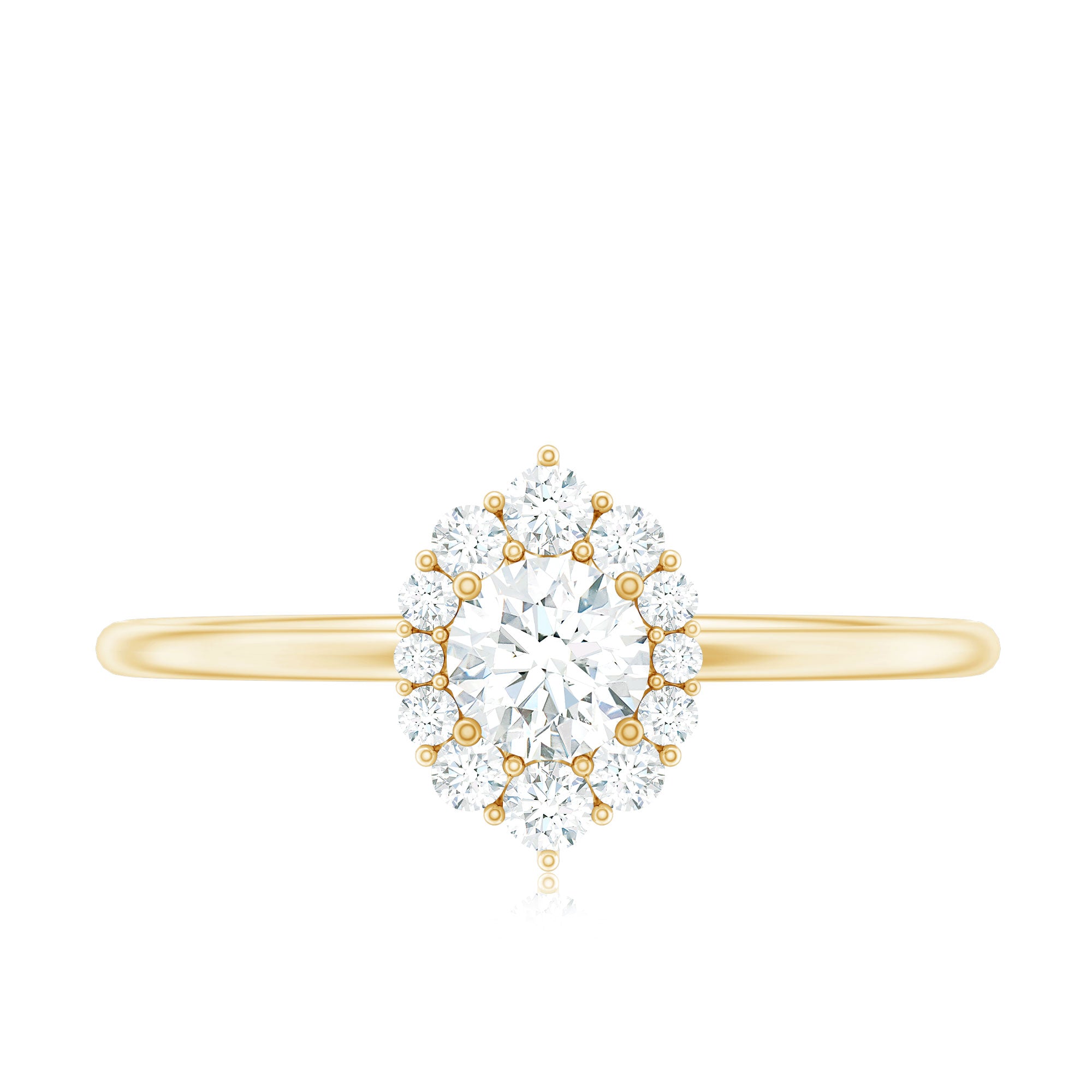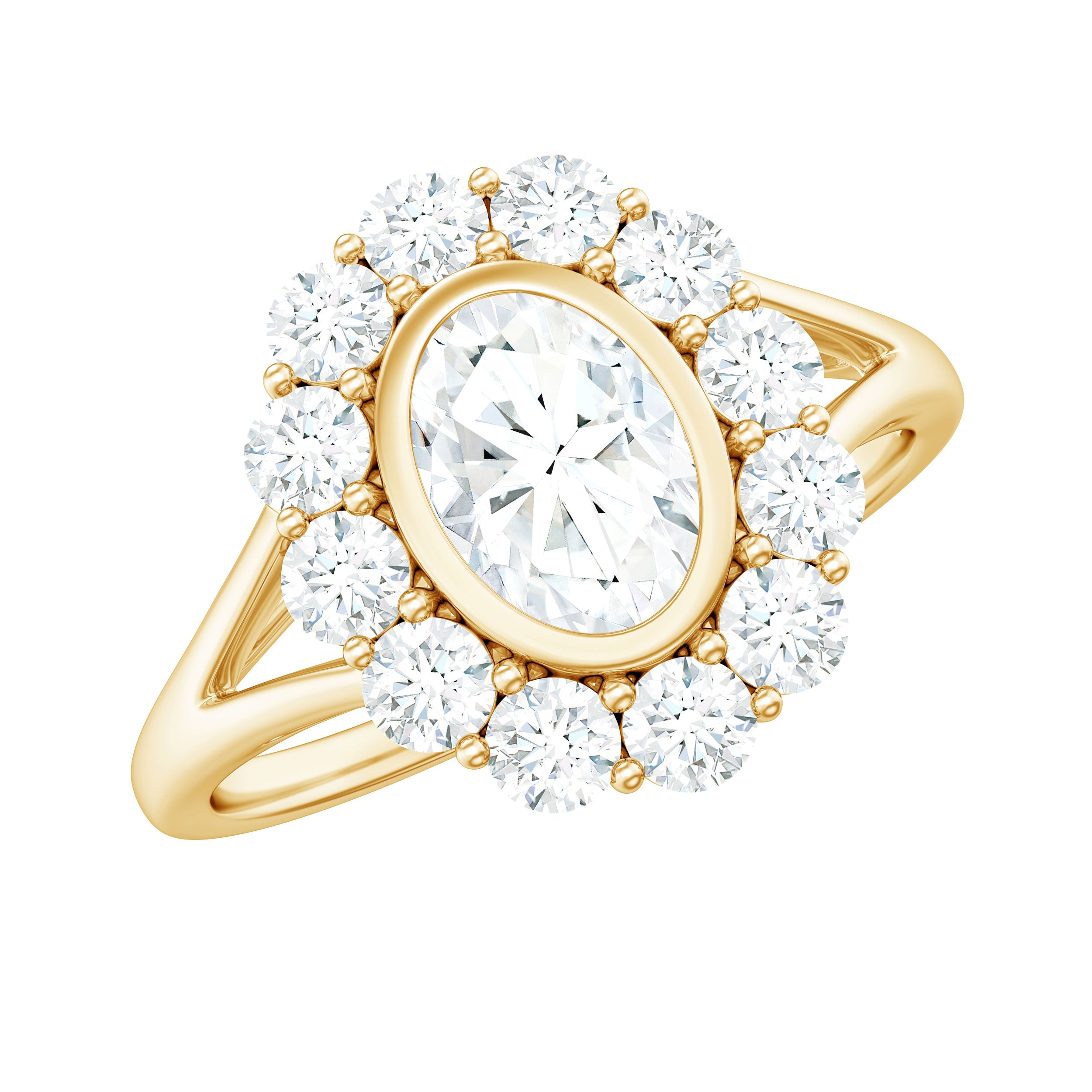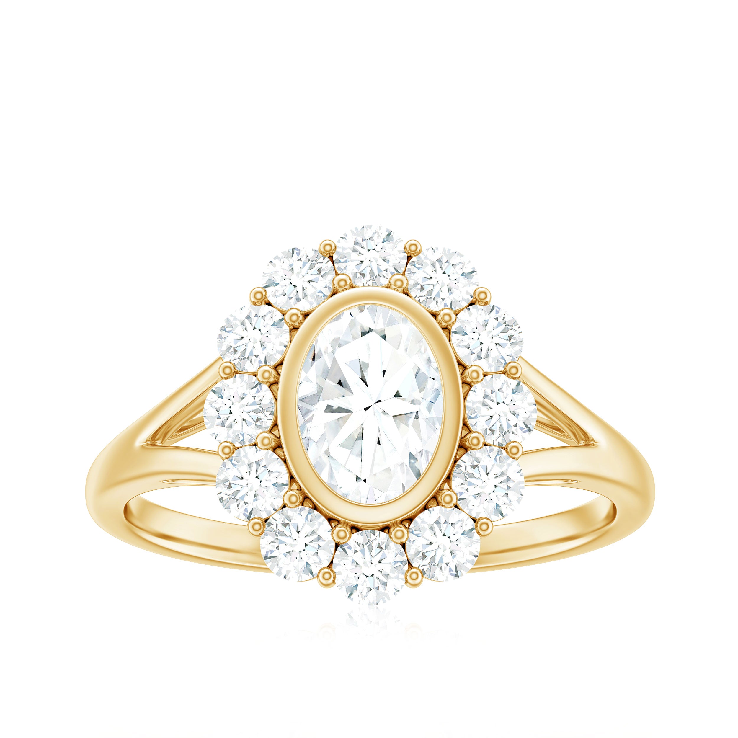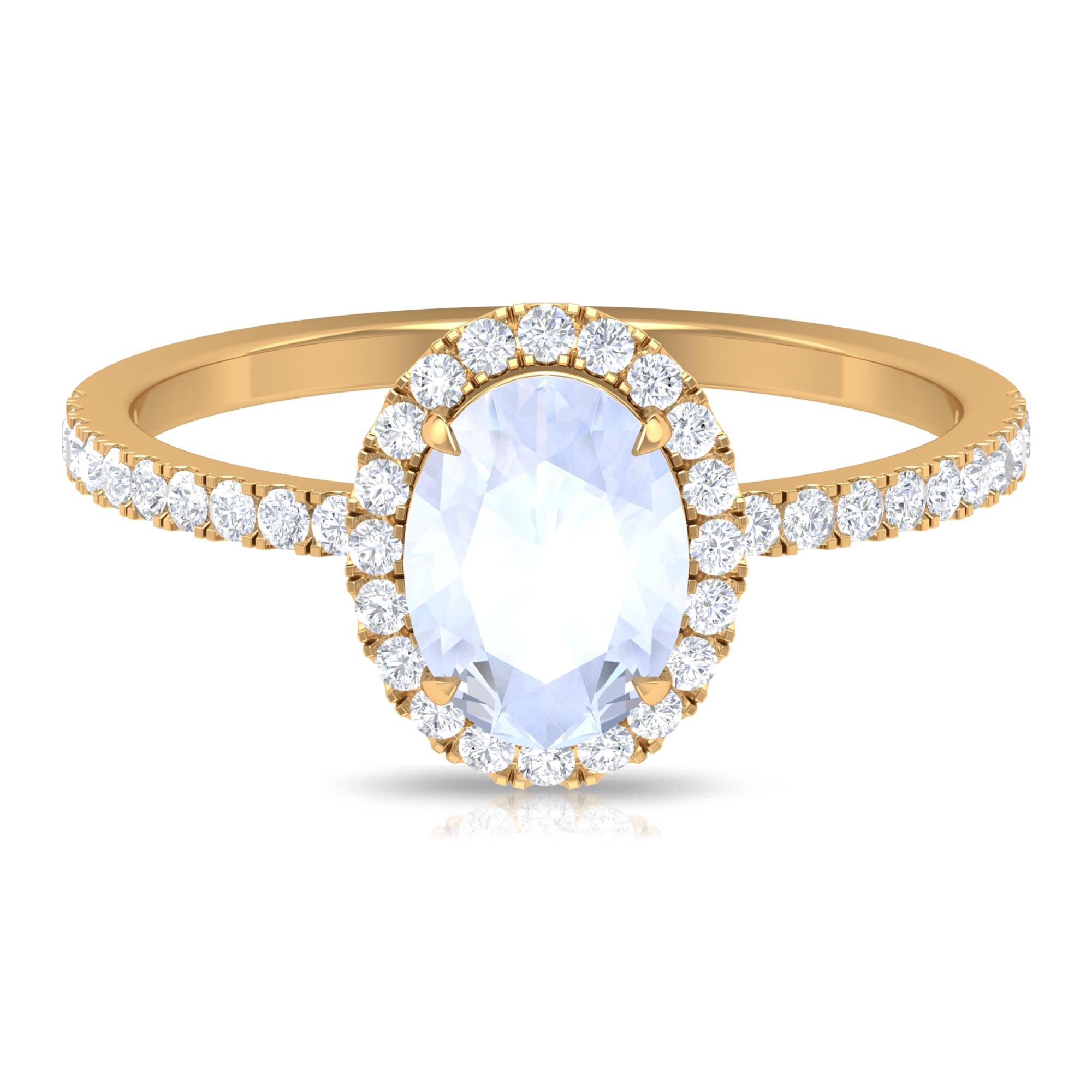 Oval halo engagement rings: The over-halo design looks attractive, sparkling, and unique at the same time.