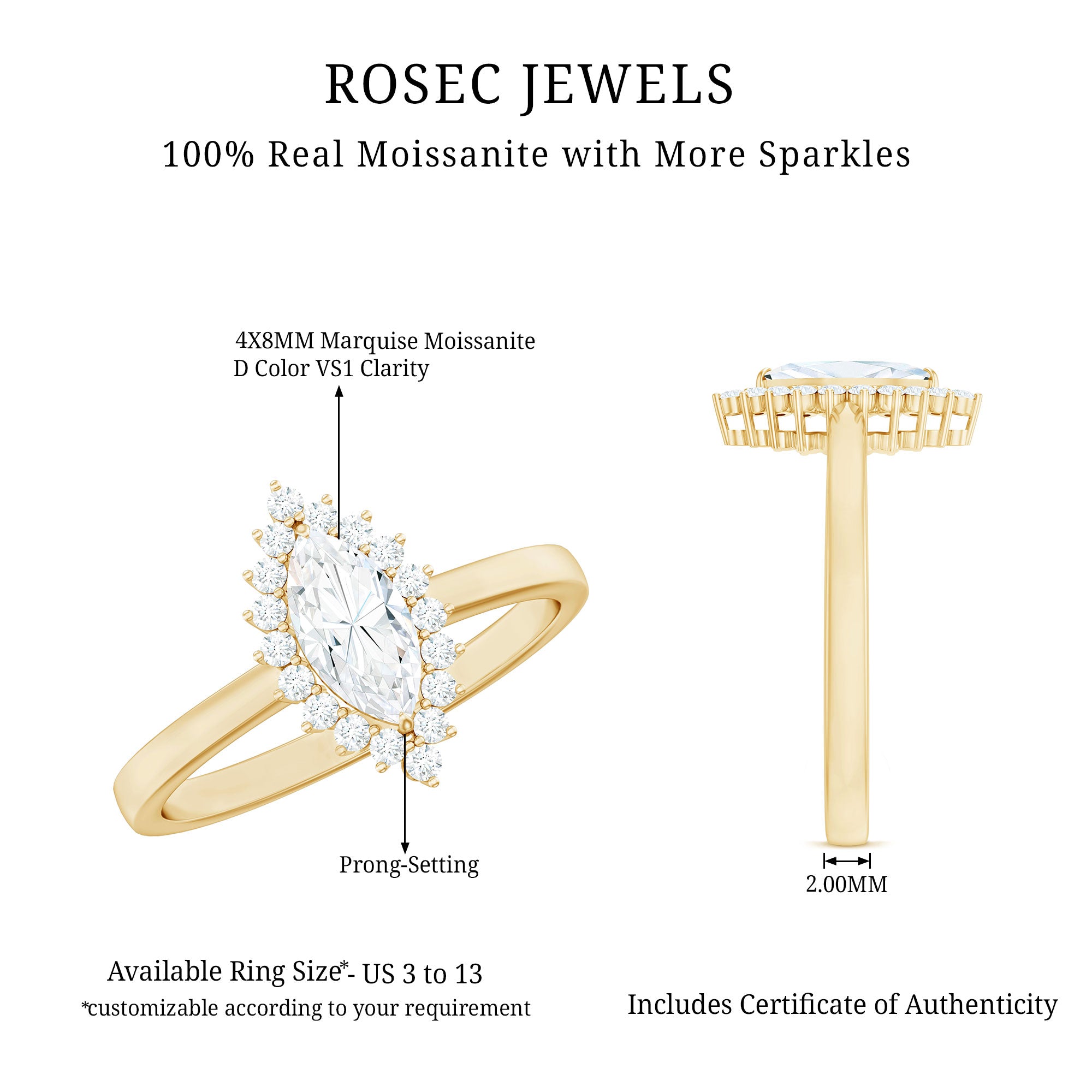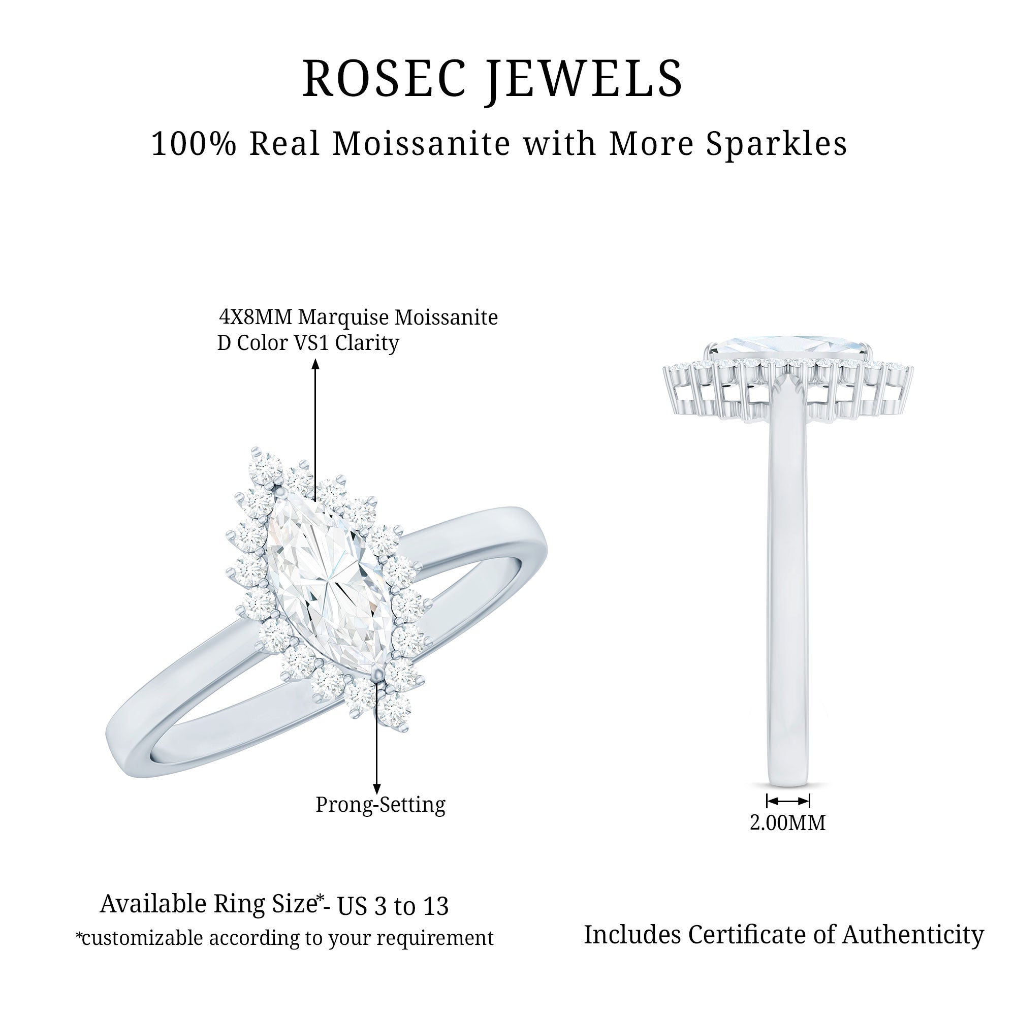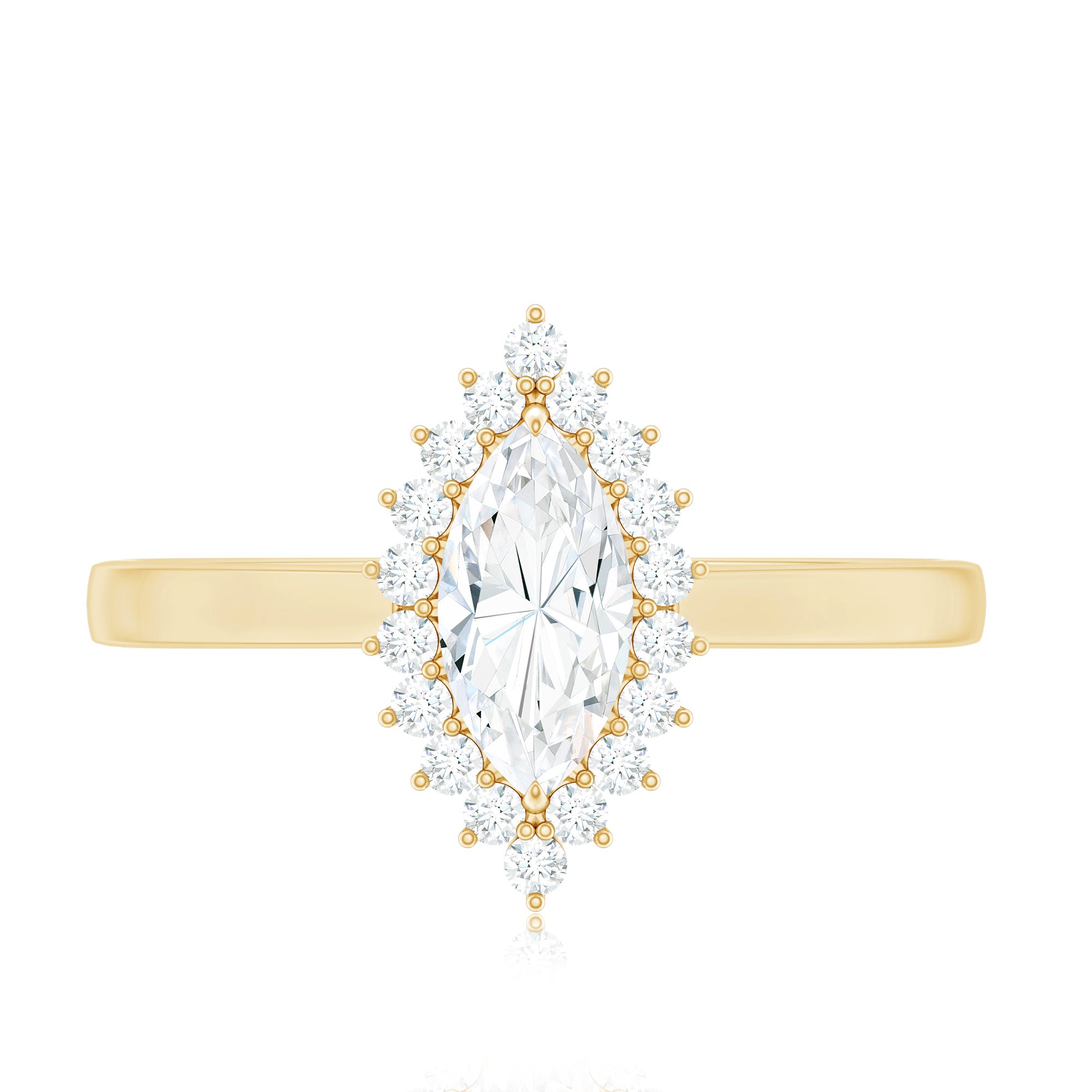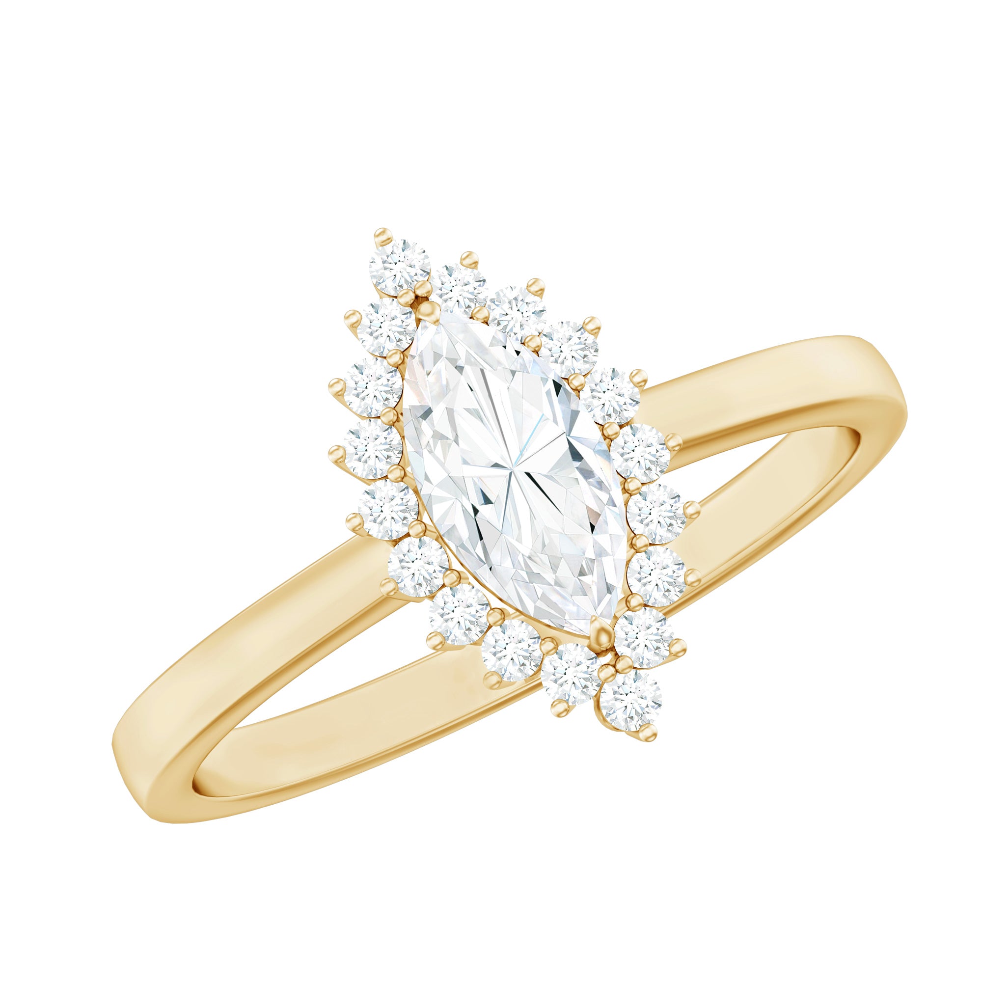 Marquise halo engagement ring: If you want your engagement ring to be a little bigger and captivate everyone’s attention, the Marquise halo engagement ring would be the one to go for.
