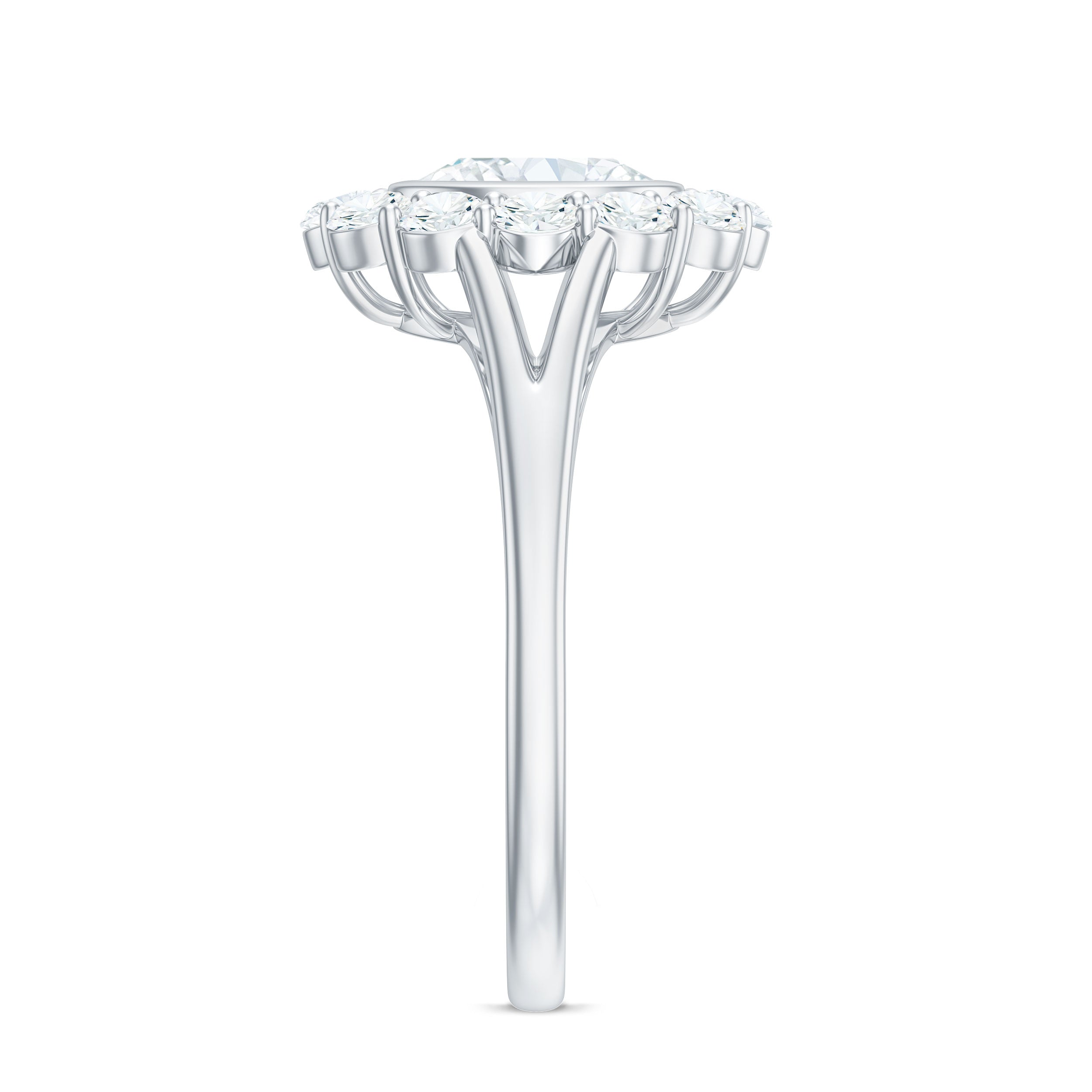 The double halo design is a well-liked variant of the Halo Engagement Ring. As the name implies, the center stone is surrounded by two concentric circles of diamonds. The double halo enhances the ring's shimmering appearance, resulting in a stunning show of light. The Double Halo Engagement Ring design is perfect for those looking for a ring that oozes opulence and highlights their uniqueness.