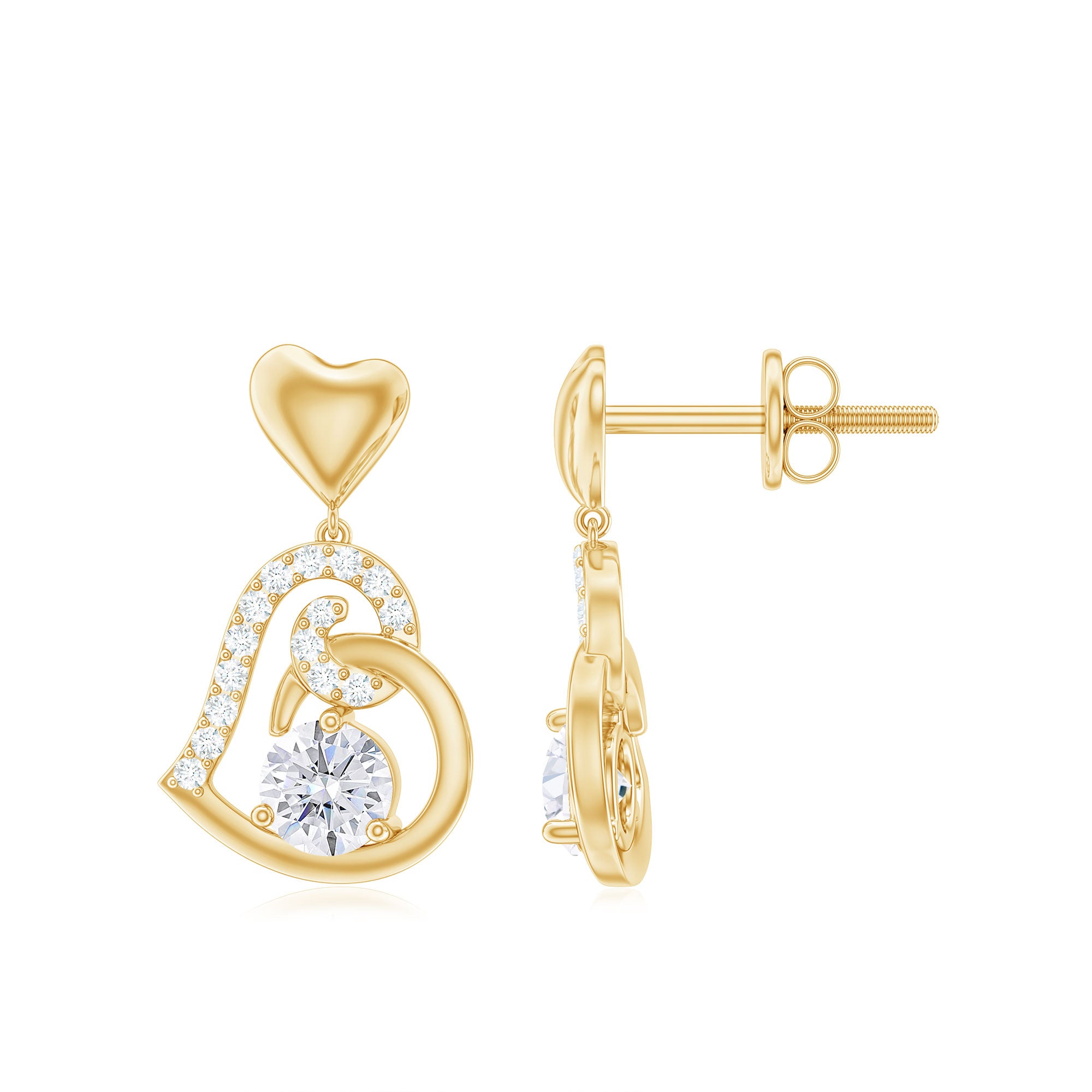 Elegant and feminine, Heart Drop Earrings hang (or drop) just below the earlobe (suspended by a hook) while emphasizing on the heart shaped center stone. For those on the lookout for something a little more statement-making than studs without going for a loud and extravagant accessory, they are the perfect choice. Be it a Classic pair of Open Heart Drop Earrings or those beautified with eye-catching motifs, they are the touch of grace ever woman fancies.