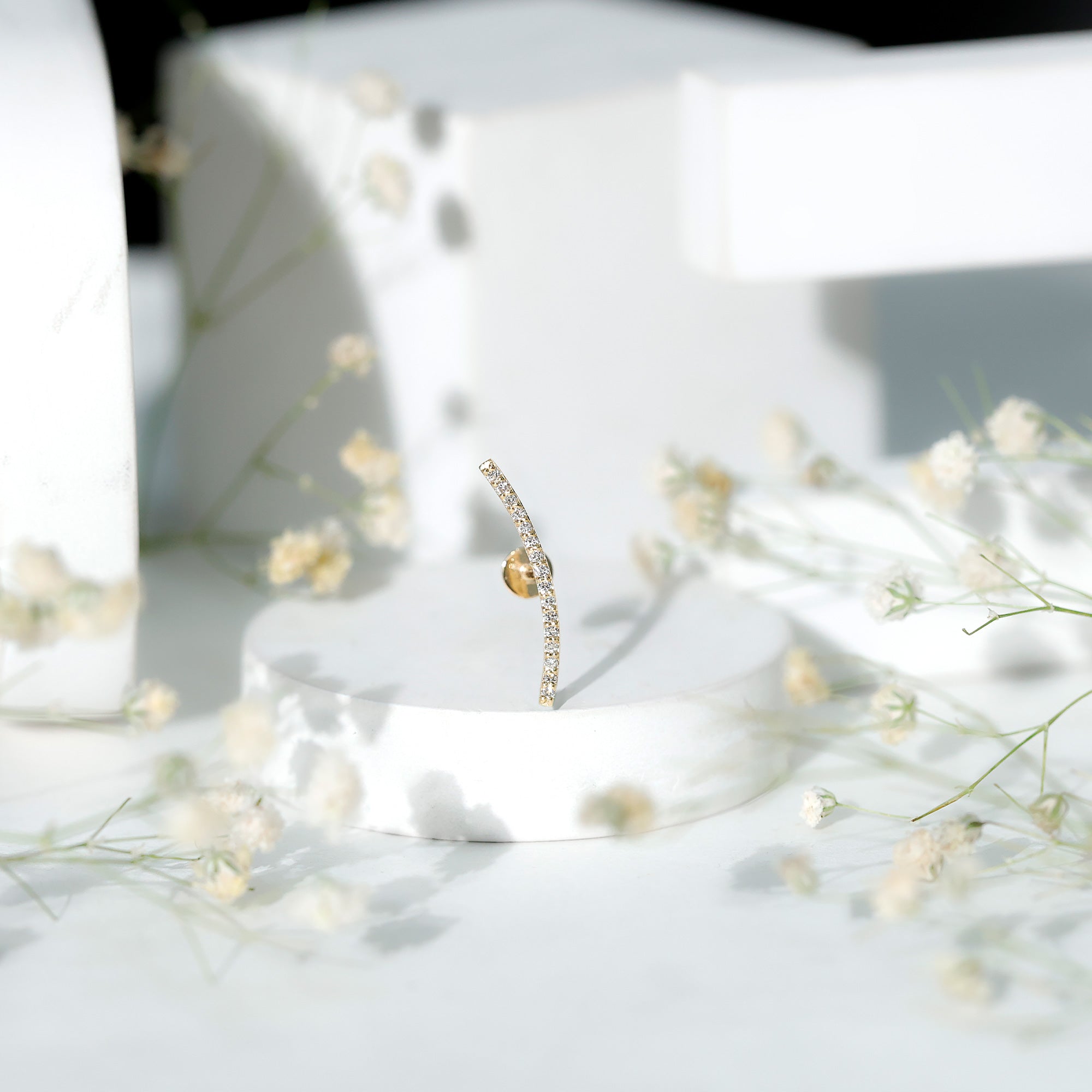 Climber Earrings: - they are precisely made to flaunt on the earlobe. These type of earrings has a curved shape, elegantly showing off the curve of the ear elegantly, and create a classic look. The earrings look like you get multiple piercings without the actual need. They're ideal for individuals seeking a classy and stylish appearance without enduring the discomfort of additional piercings.
