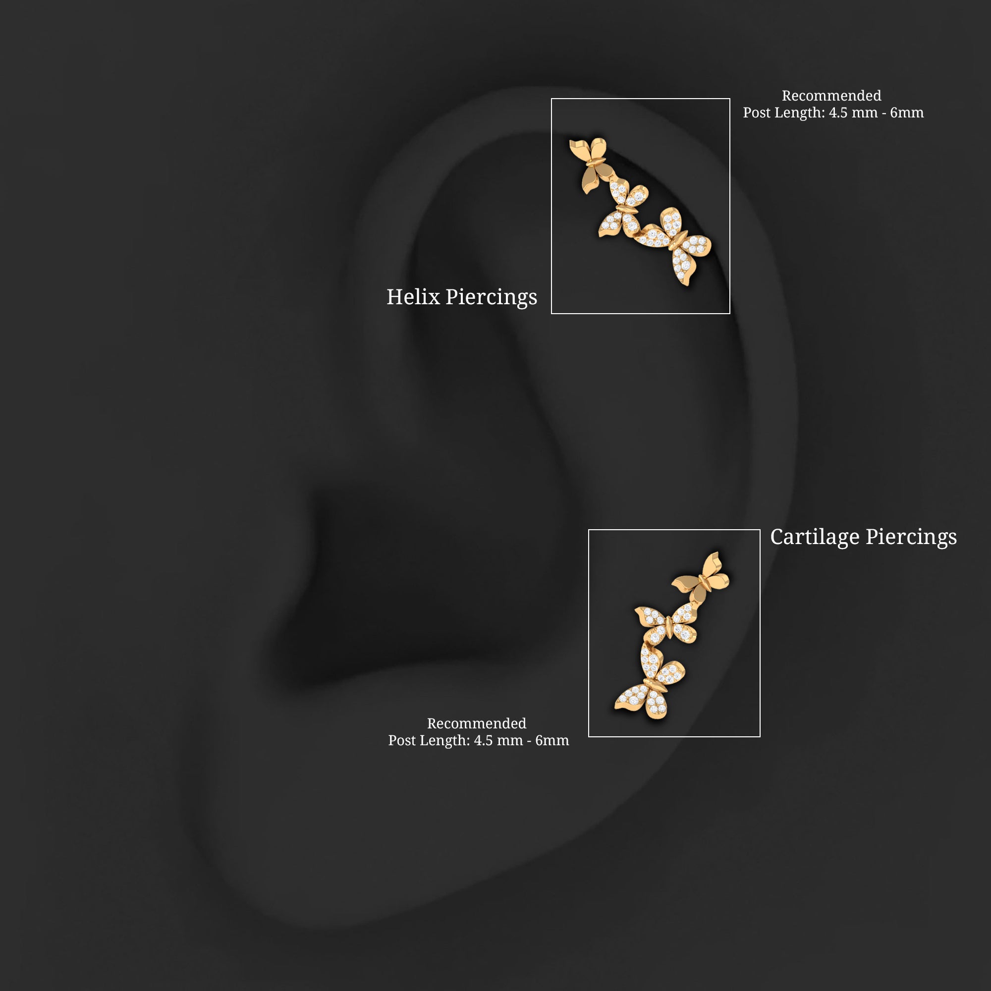 Crawler Earrings: - Unique pieces of jewelry specially designed to wrap around the helix of the ear, making a captivating design to suit elegantly to the upper earlobe. You can uplift your style with these crawler earrings, perfect for every occasion. This crawler earring comes in different designs and styles, allowing you to express your personality through wearing these most exquisite earrings.