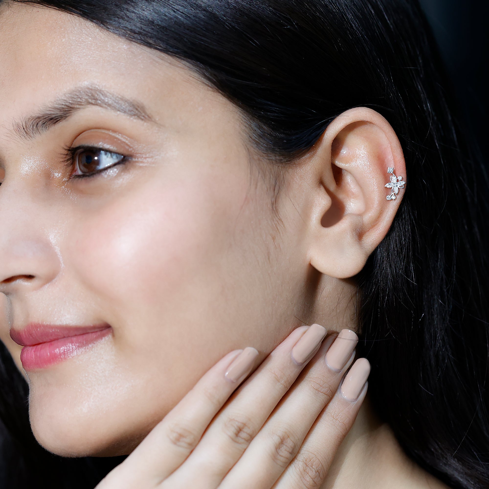 Stud Earrings: - Basically, helix stud earrings can be worn anywhere from the lower part of the earlobe to the upper curve of the ear. They offer a versatile range of designs, encompassing drop studs, heart-shaped studs, solitary studs, infinity helix studs, halo studs designed specifically for helix piercings. Our Earring for Helix Piercing stands out as an ideal choice for everyday wear, boasting both style and comfort without causing any irritation.