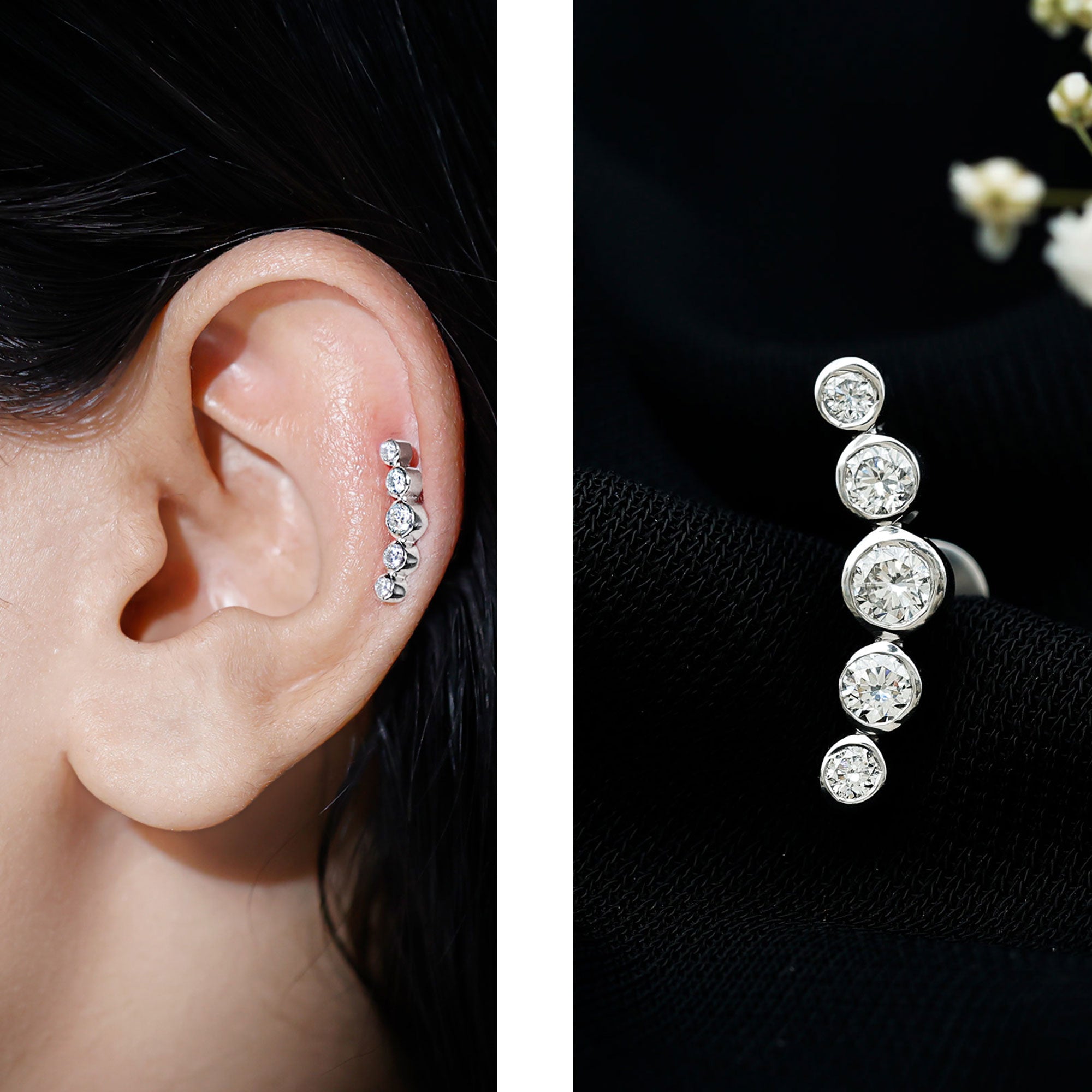 Women’s Helix ear pieces seamlessly transition from day to night attires, making them a versatile accessory for any occasion. Despite some women's initial fear of helix piercing, these earrings offer a striking and bold statement that enhances your look with shiny touch. Whether you're dressing up or keeping it casual, these popular jewelry are sure to elevate your style game.