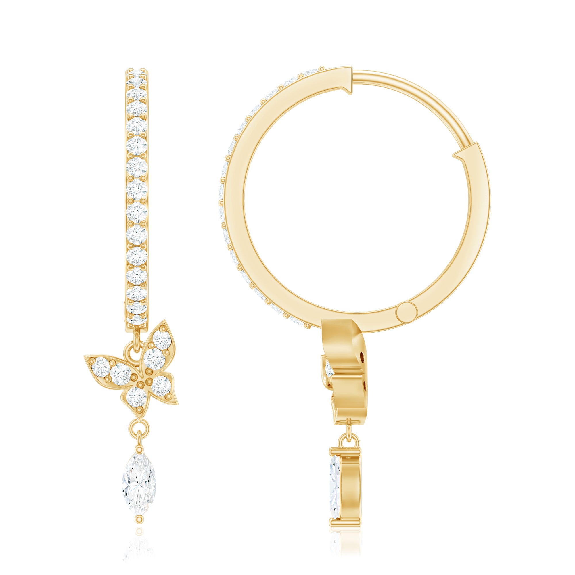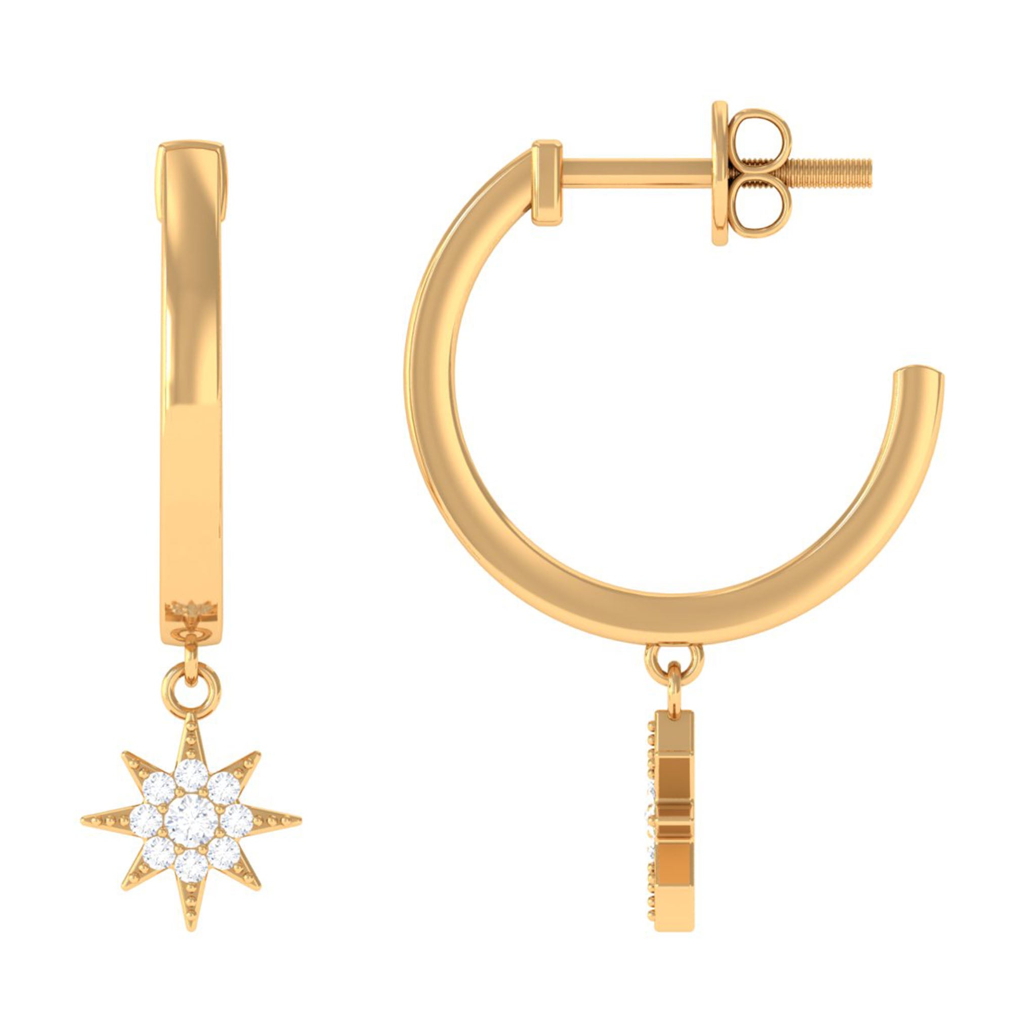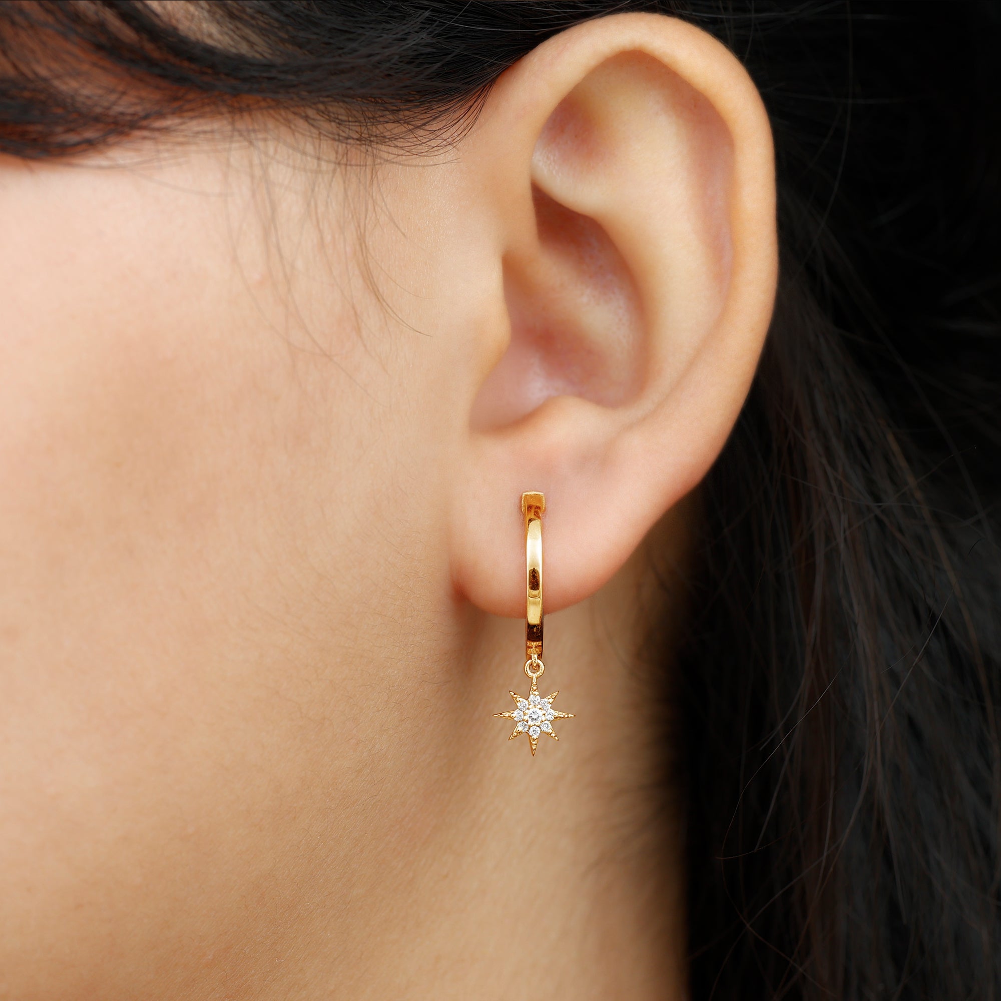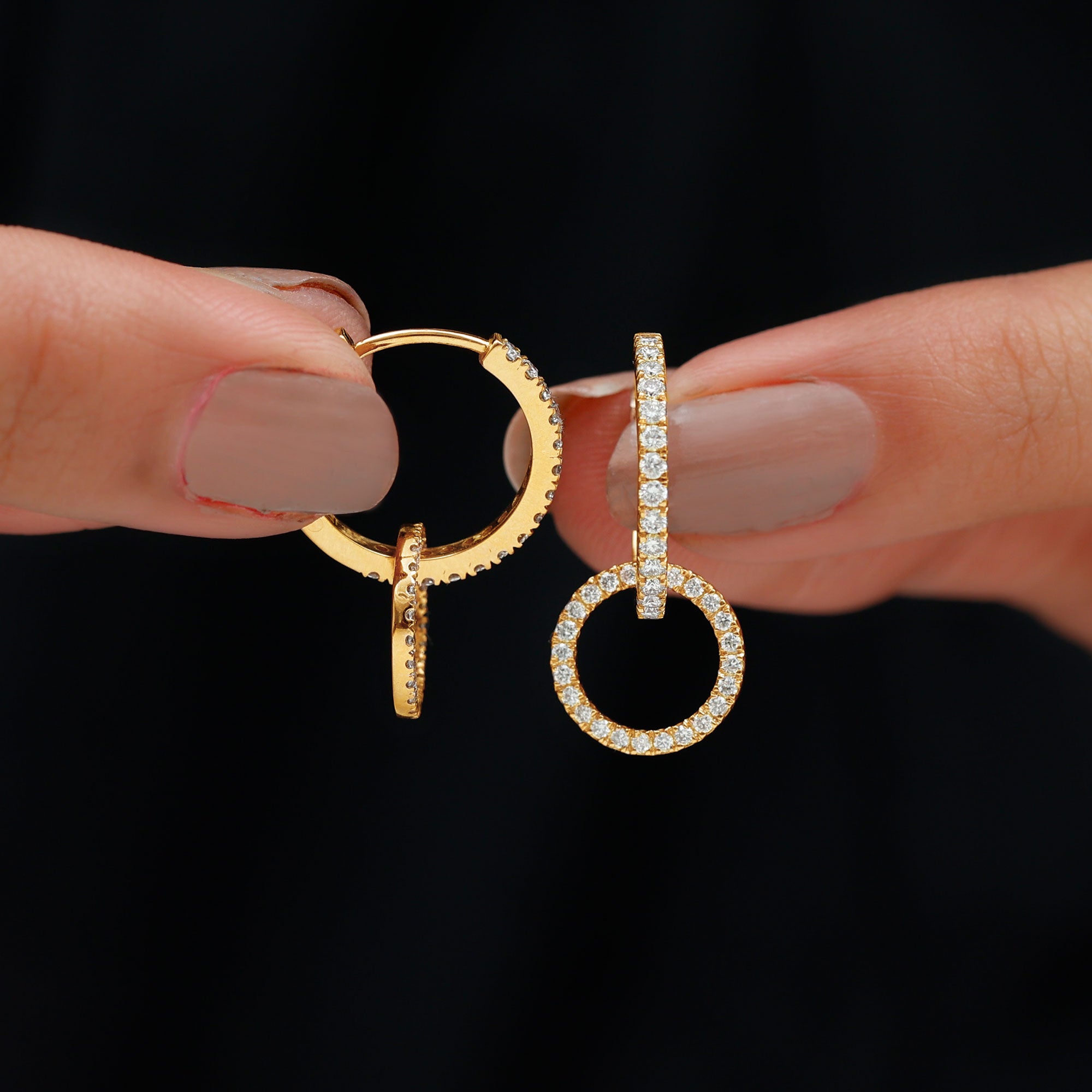 Hoop Drop Earrings: - Hoop drop earrings blend the classic appearance of hoop with the graceful charm of dangling drops. Each pair of hoop drop earrings features a delicate hoop element adorned with a timeless charm, lending a subtle way that captivates the eye. If you are among those who elevate the look of your outfit, then these exquisite designs of hoop earrings with intricate detailing and colored gemstones exude refined beauty and sophistication. These hoop earrings perfectly suit to your earlobe with their celestial motifs dangling below the hoop.
