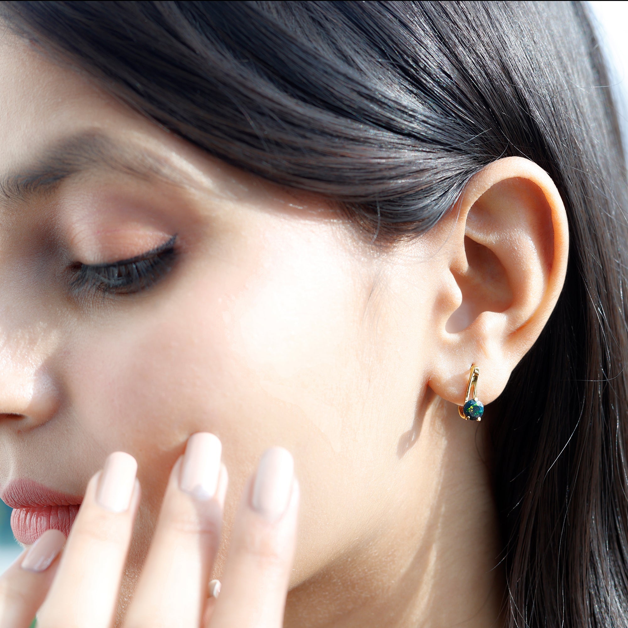 Colored Gemstone Hoop Earrings: - available in Emerald Hoop Earrings, Blue Sapphire Hoop Earrings, Ruby Hoop Earrings, and Ethiopian Opal Hoop Earrings. If you're also searching for an accessory that captures the essence of your style in a truly profound manner then look no further than hoop earrings with luxury colored gemstones. These earrings not only infuse your ensemble with visual allure but also carry a depth of potential meaning, adding an extra touch of elegance to your style.