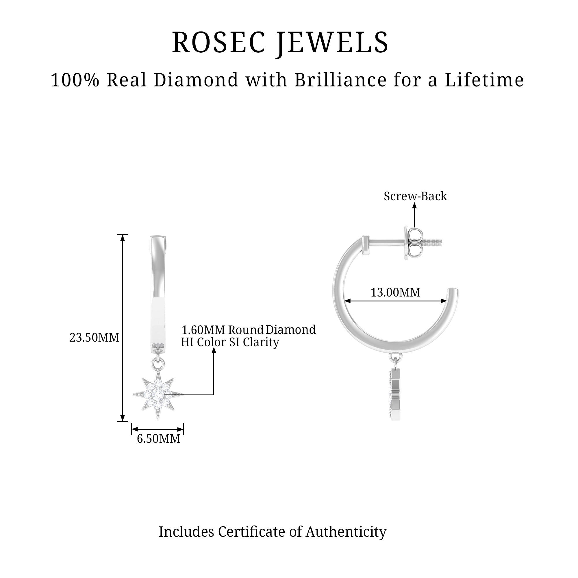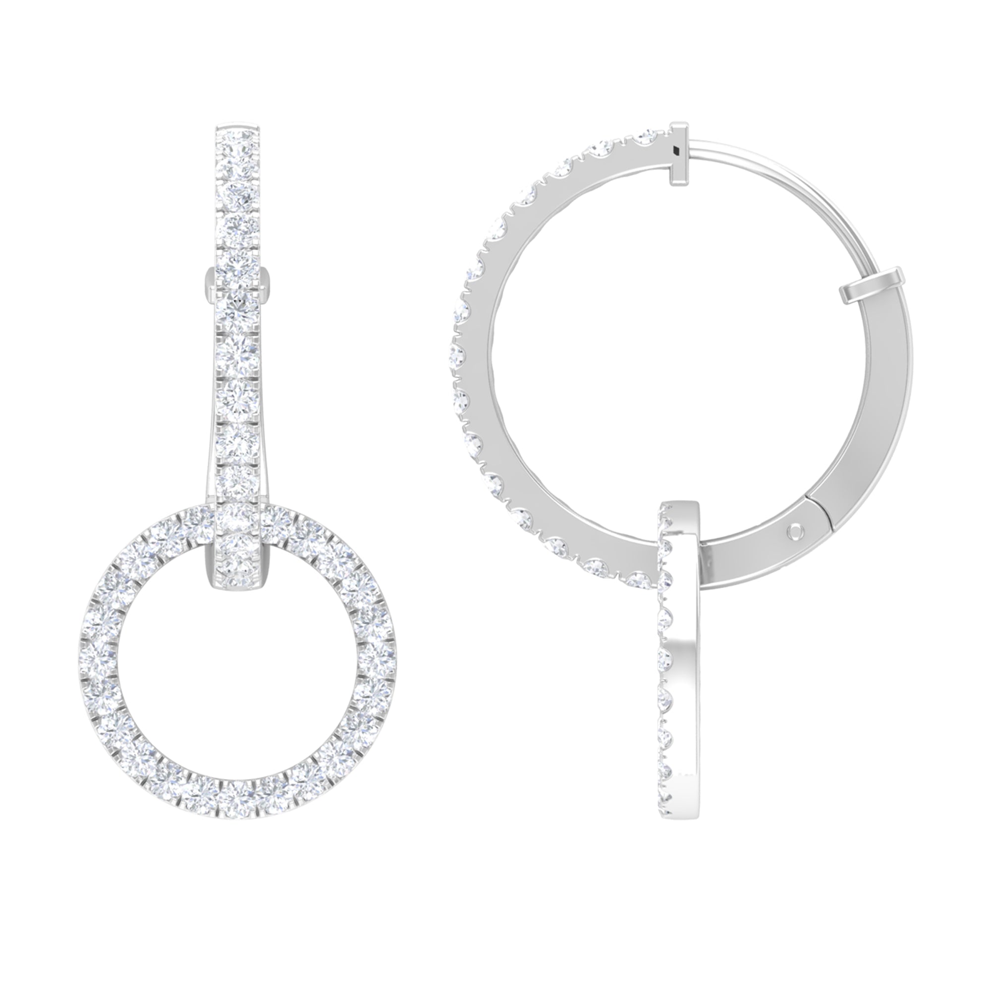 Diamond Hoop Earrings: - A timeless jewelry, essential for every woman. Our diamond hoop earrings boast a delicate arrangement of small glistening diamonds embellishing the curving of hoop earrings. There is no other jewelry sparkling like these diamond hoop earrings.