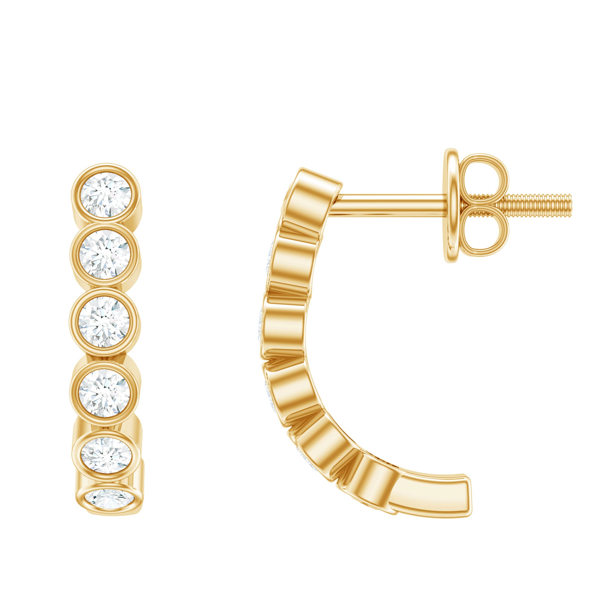 Diamond Hoop Earrings: - A timeless jewelry, essential for every woman. Our diamond hoop earrings boast a delicate arrangement of small glistening diamonds embellishing the curving of hoop earrings. There is no other jewelry sparkling like these diamond hoop earrings.