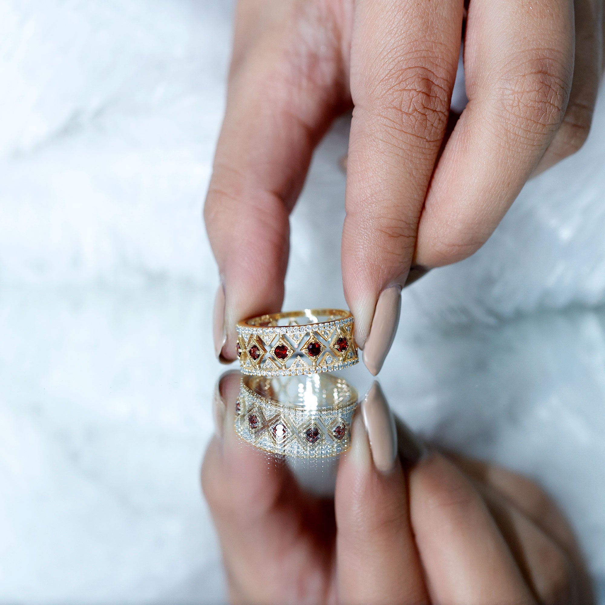 Garnet Rings:- From vintage-inspired to stunning promise garnet rings, halo rings, wedding bands, solitaire rings, and engagement rings, you can find a wide collection of garnet rings that suits all famous style eras.