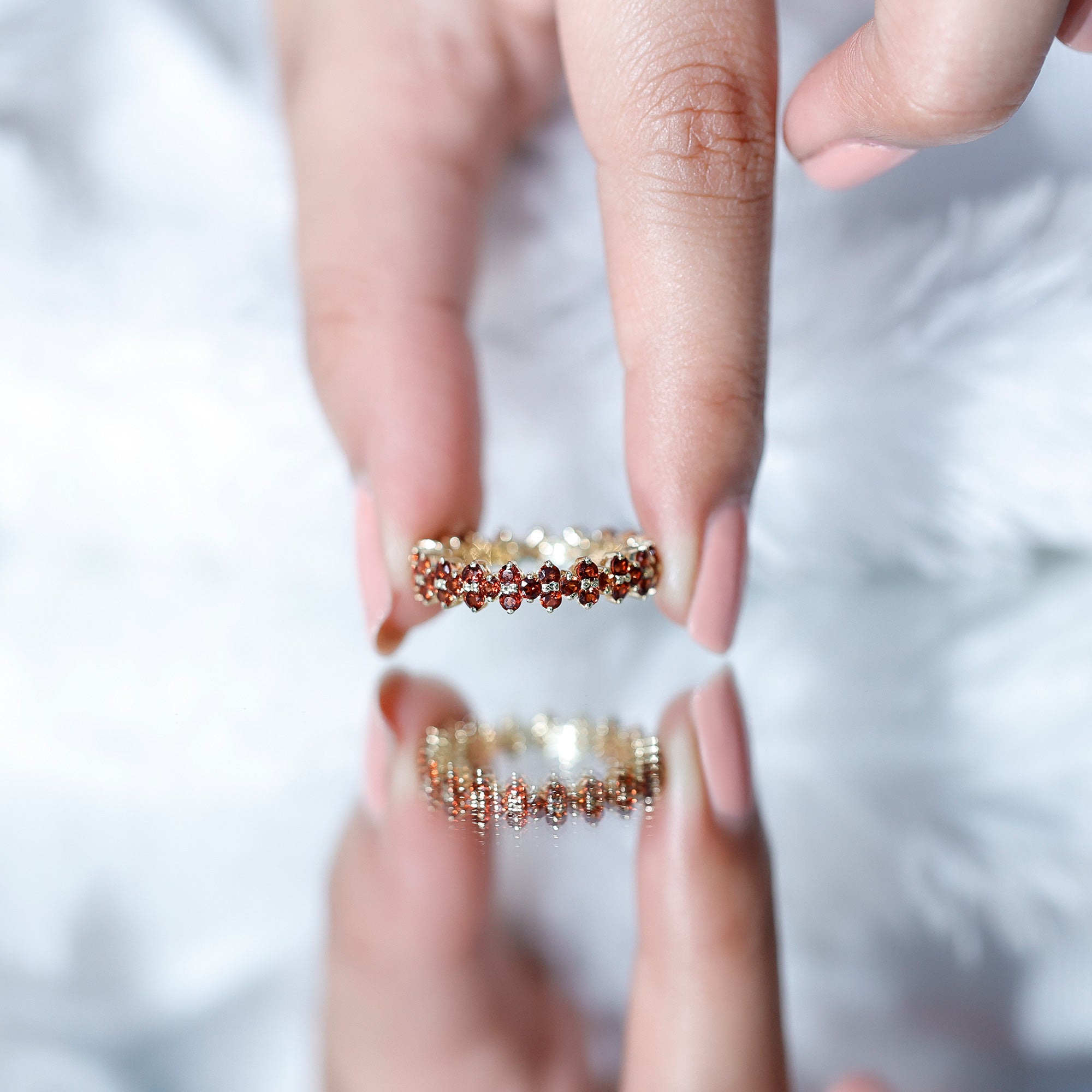 Garnet can be worn regularly with mindful care. For daily wear, choose protective designs and remove your jewelry during heavy activity, cleaning, or workouts to help prevent scratches.
