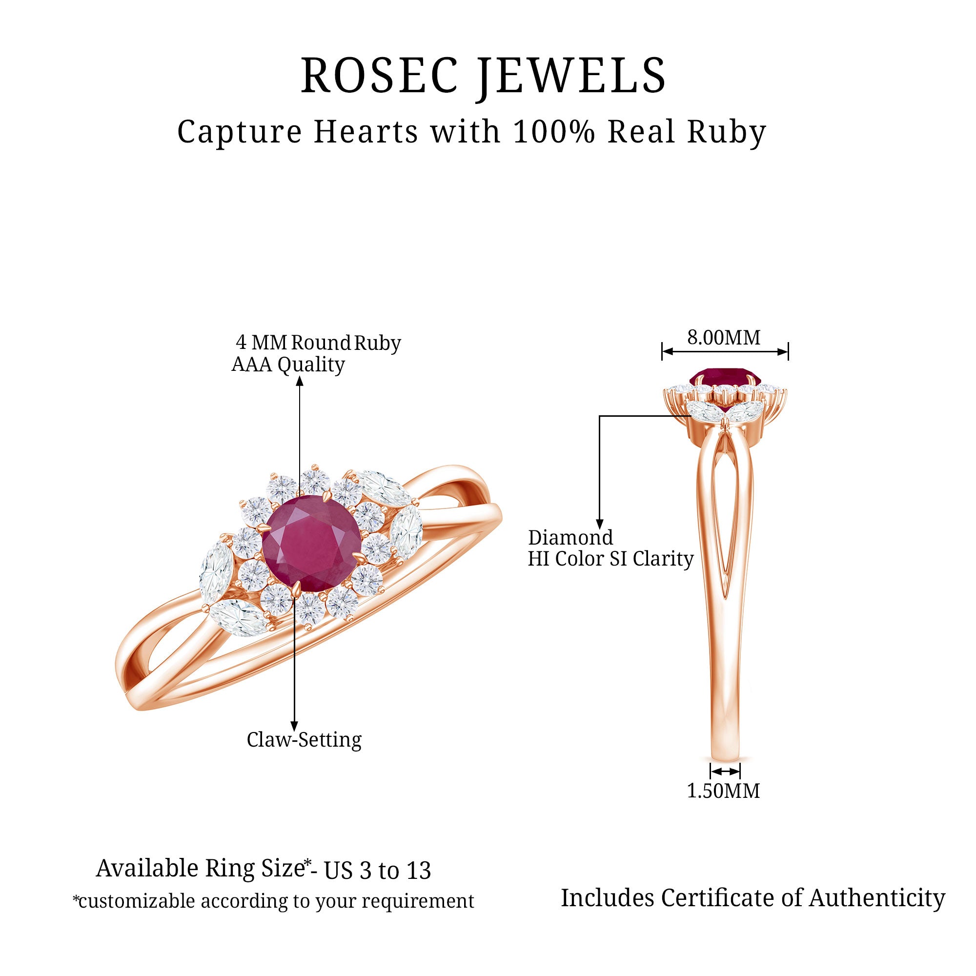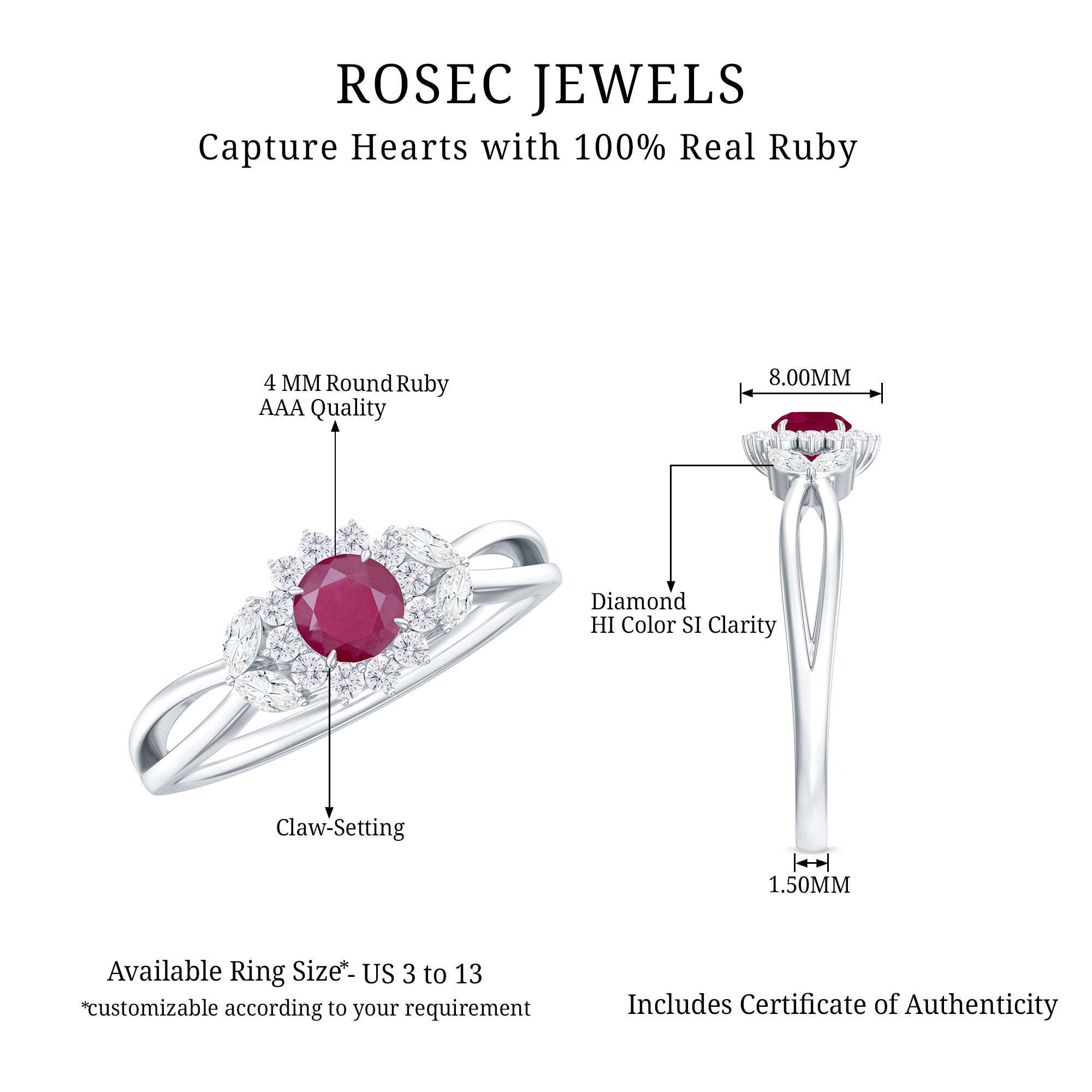 - Cut: The shape of Ruby ranges from a classic round, oval, pear and princess cut to more elaborate heart, cushion, baguette and marquise cut.