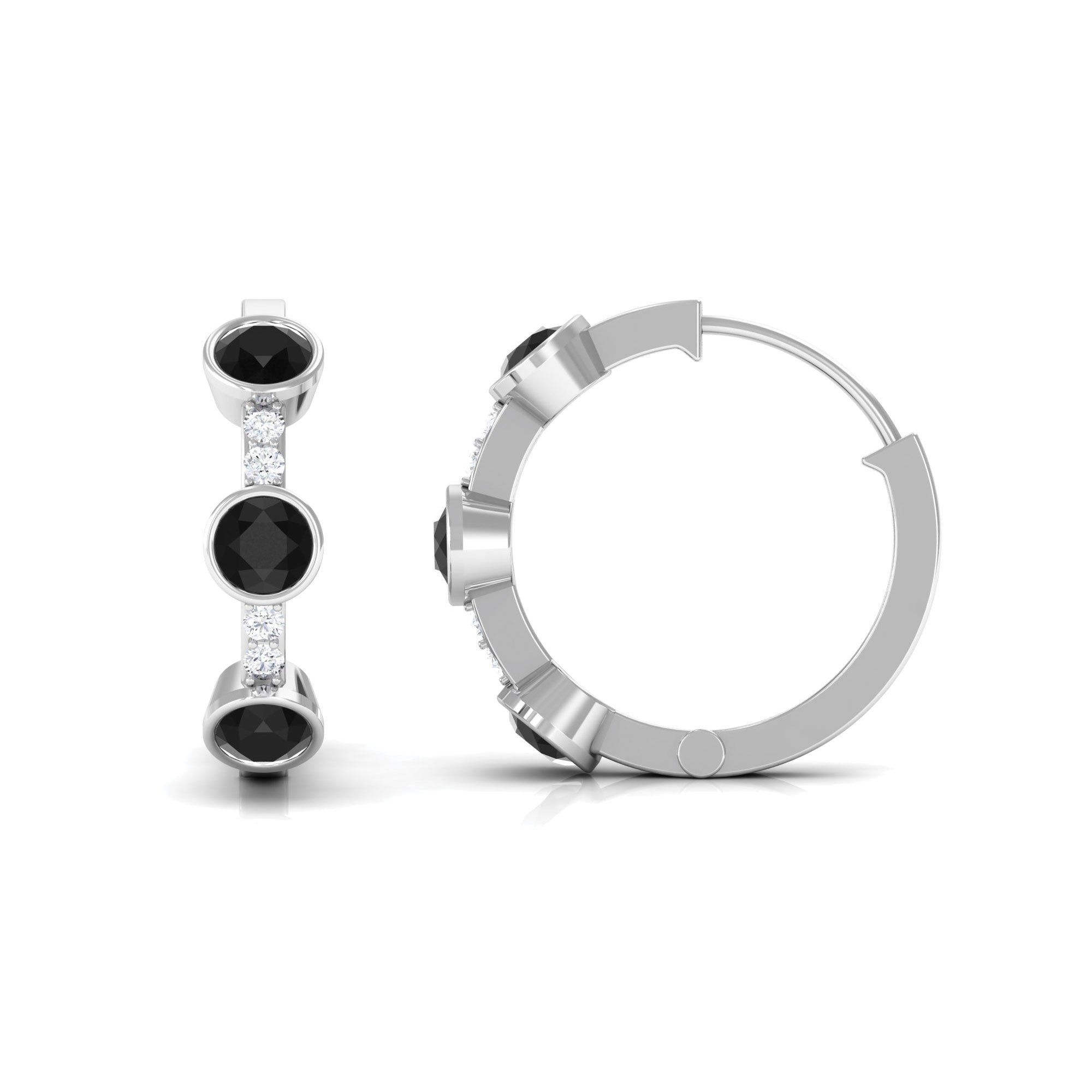 In this style, these earrings are majorly circular. You can simply get it in various shapes and sizes, while designs can range from minimalist to extravagant. Depending on the type you prefer, our gold hoops feature lab-grown black diamonds, crafted with precious metal.