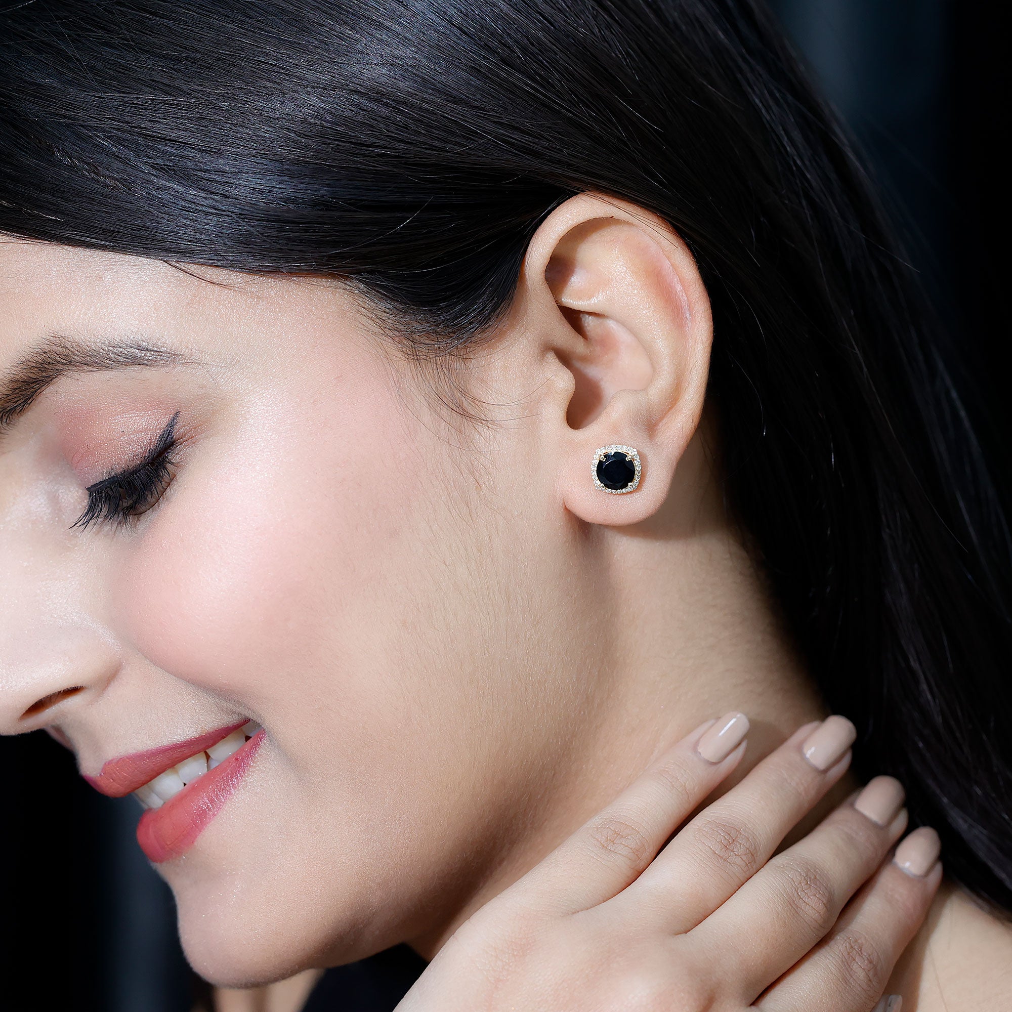 Add a pair of lab-grown black diamond studs or any casual or dressy attire. When styled with a statement matching necklace, they will add a special charm to your overall appearance. Our striking lab-grown black diamond earrings showcase different cuts of gems, like round, pear, cushion, etc.
