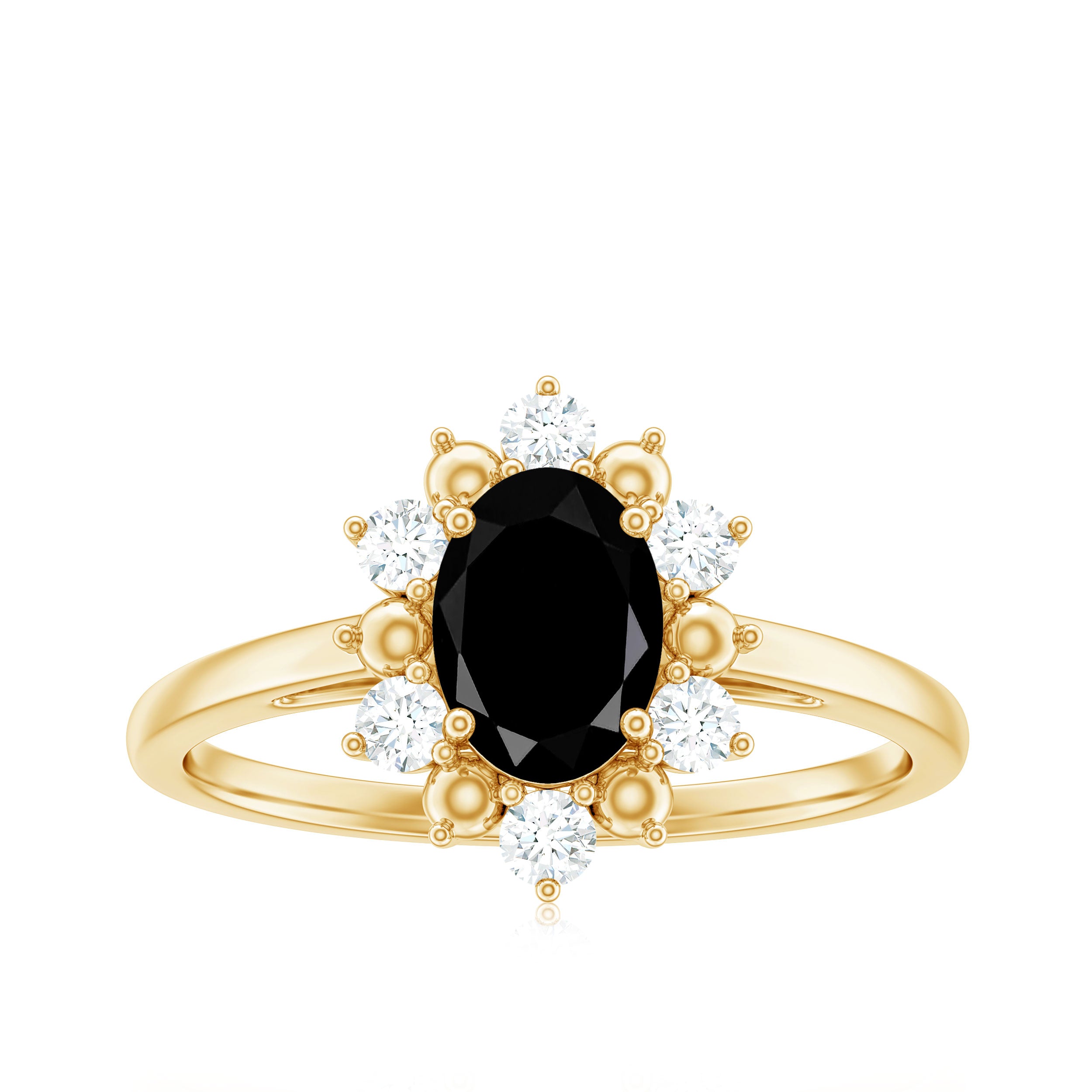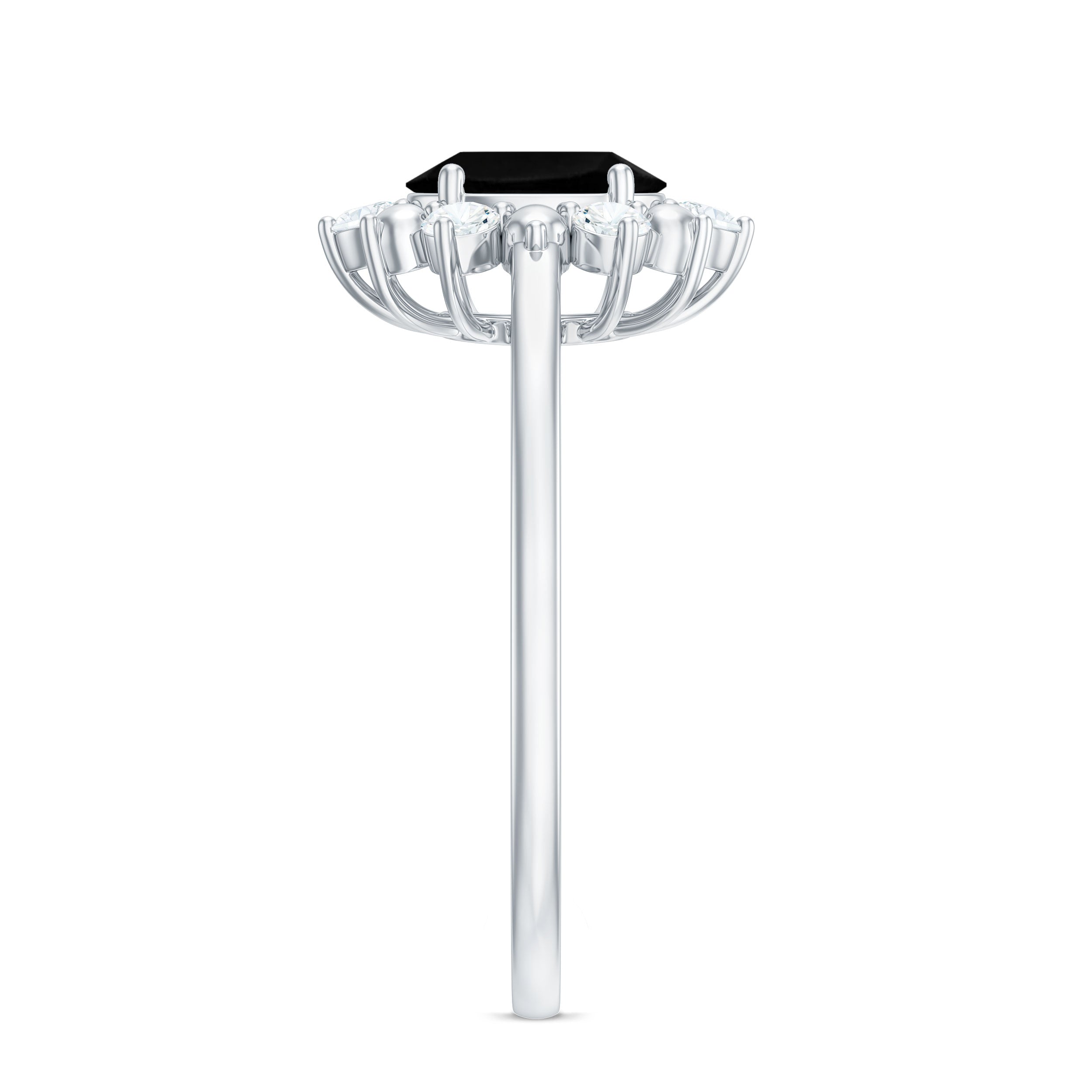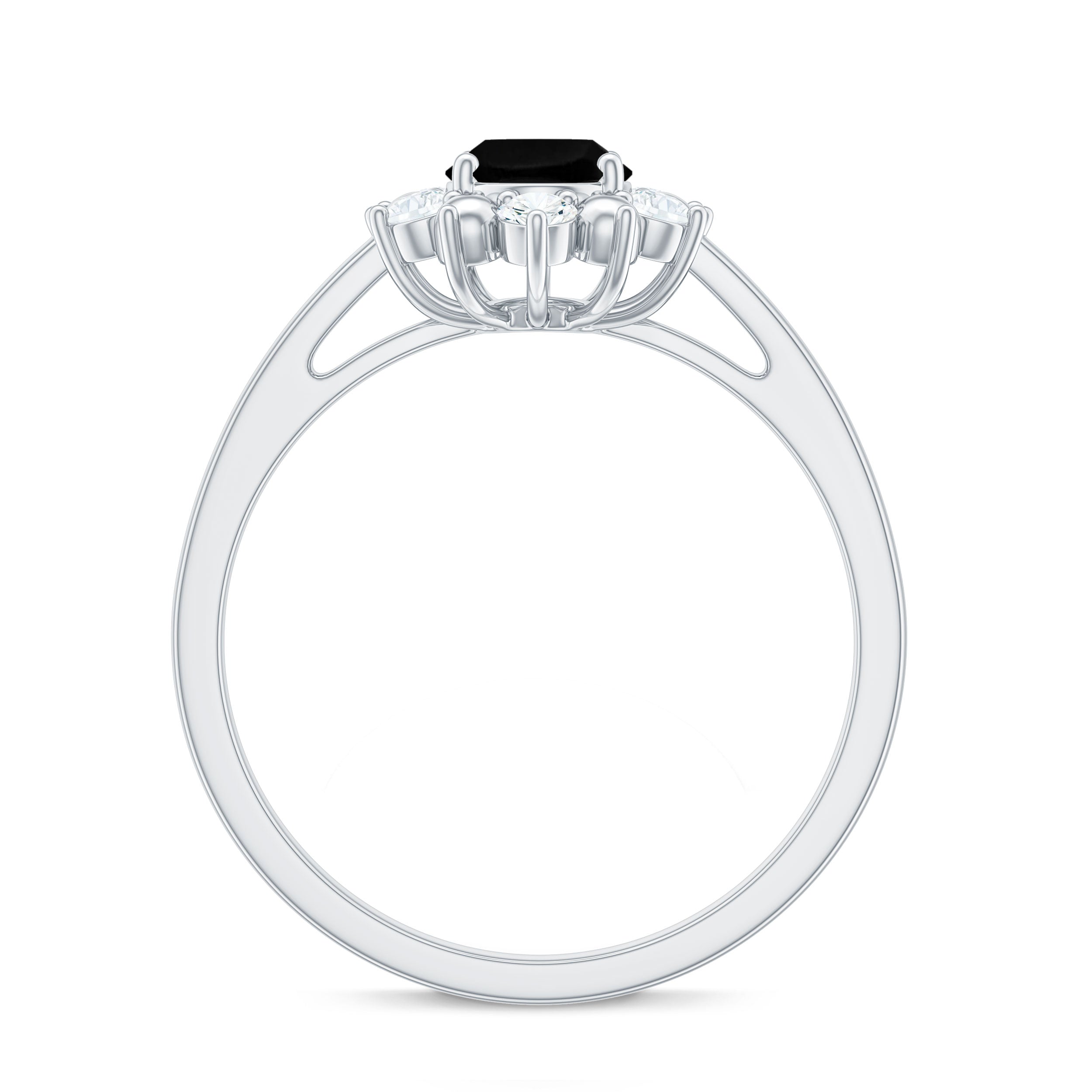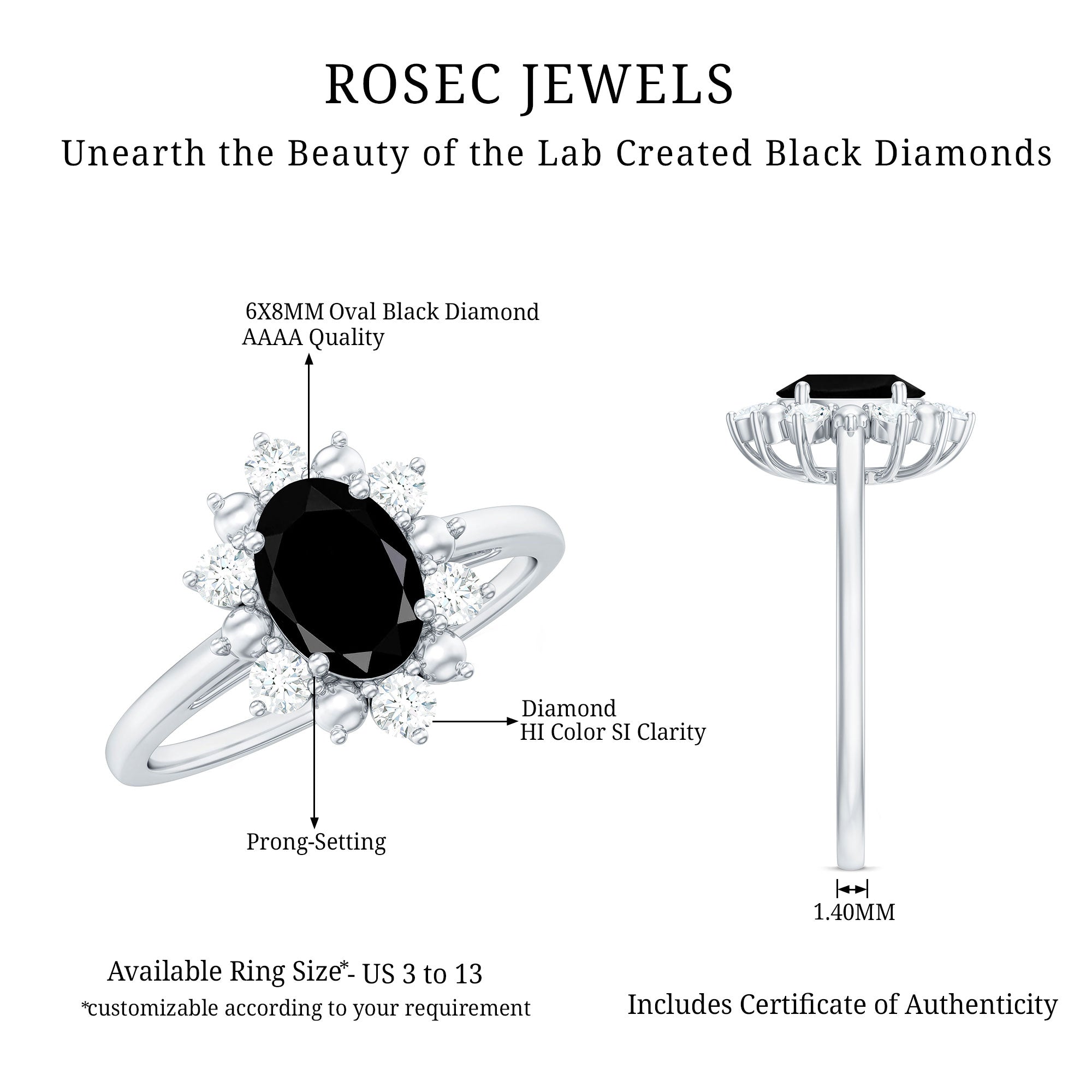 Lab Created Black Diamond Halo Engagement rings: Black diamond making the heart of the ring is surrounded by the accent of other shining gemstones, like moissanite or diamonds. The halo around the gemstone not only adds a sparkle, but offers it protection too.