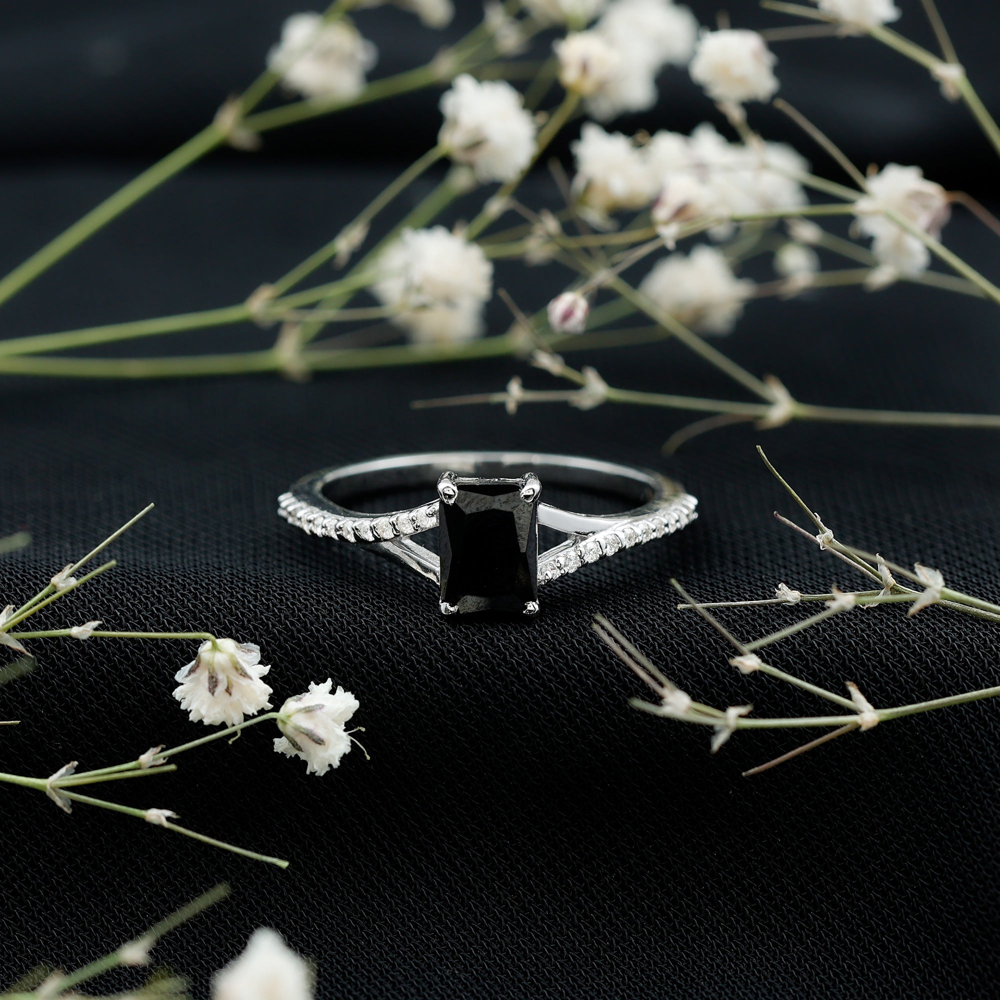 Promise rings symbolize devotion and commitment, as they are also called pre-engagement rings. Featuring a synthetic black diamond gemstone either in a simple style or enhanced by diamonds or other gems to make it more attractive. The black diamond promise rings are an incredible way to express your feelings for your special one. An ideal reminder of the commitment you both share.