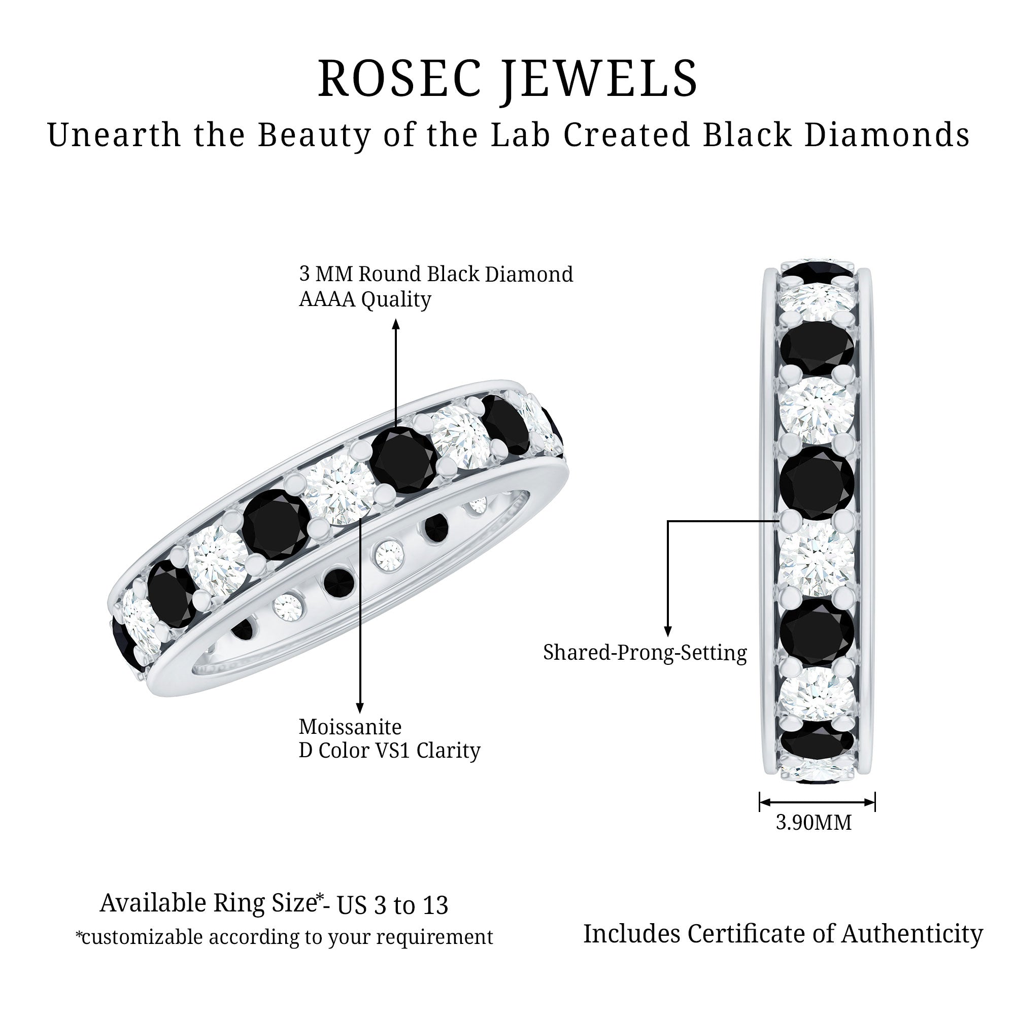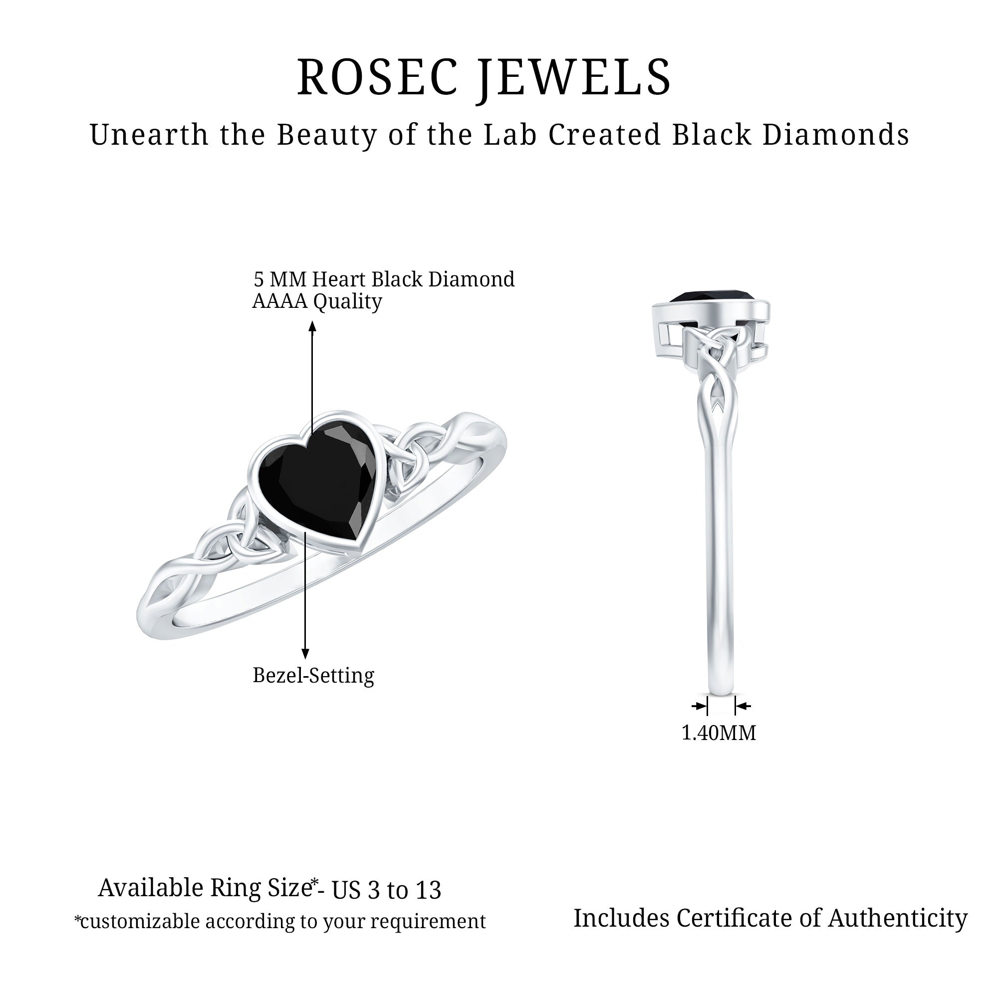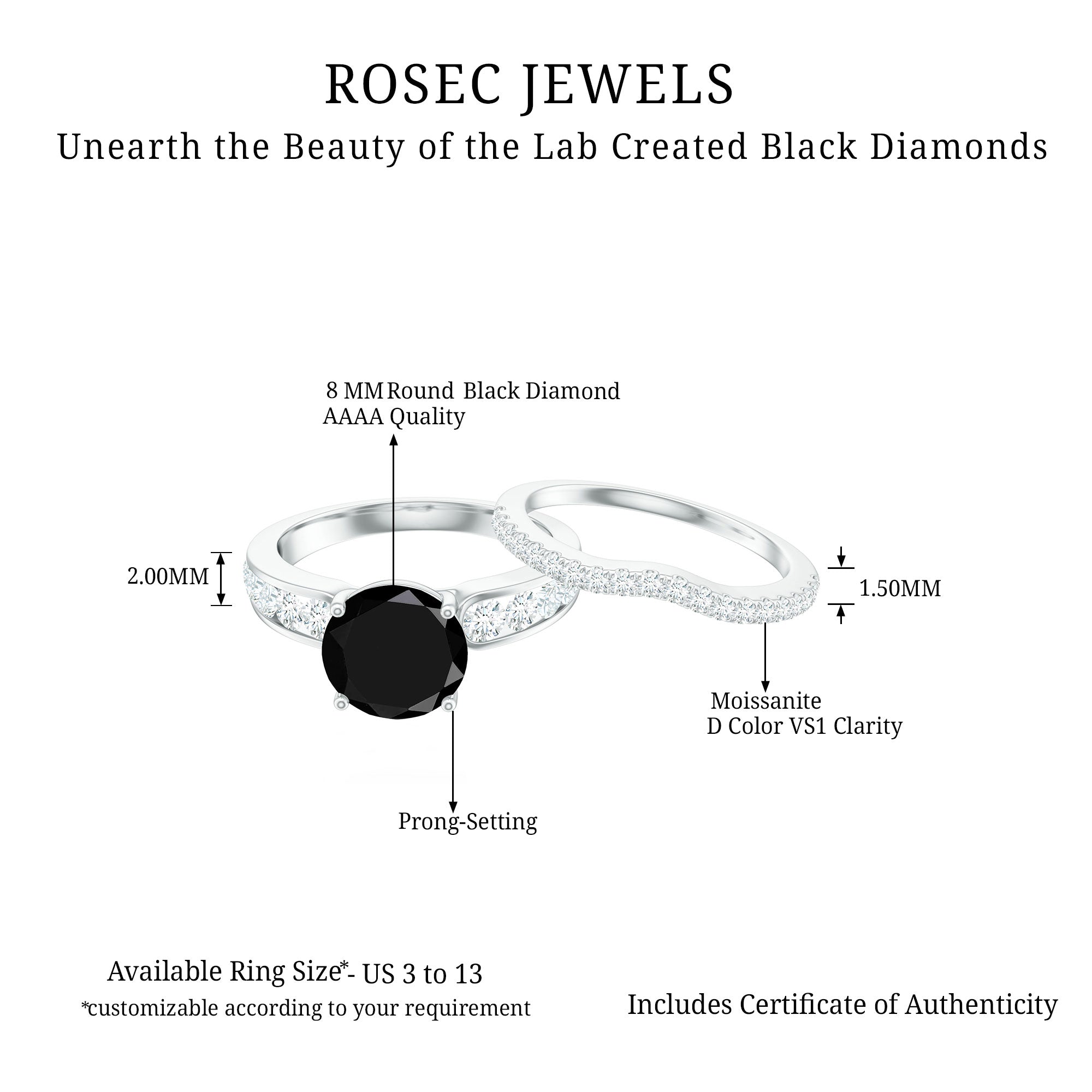 Wide Range of Options: In an attempt to celebrate all kinds of senses of style, occasions types of rings such as solitaire, halo, vintage style, and more. We have come up with a catalog of Lab Black Diamond Jewelry that has something for everyone!
