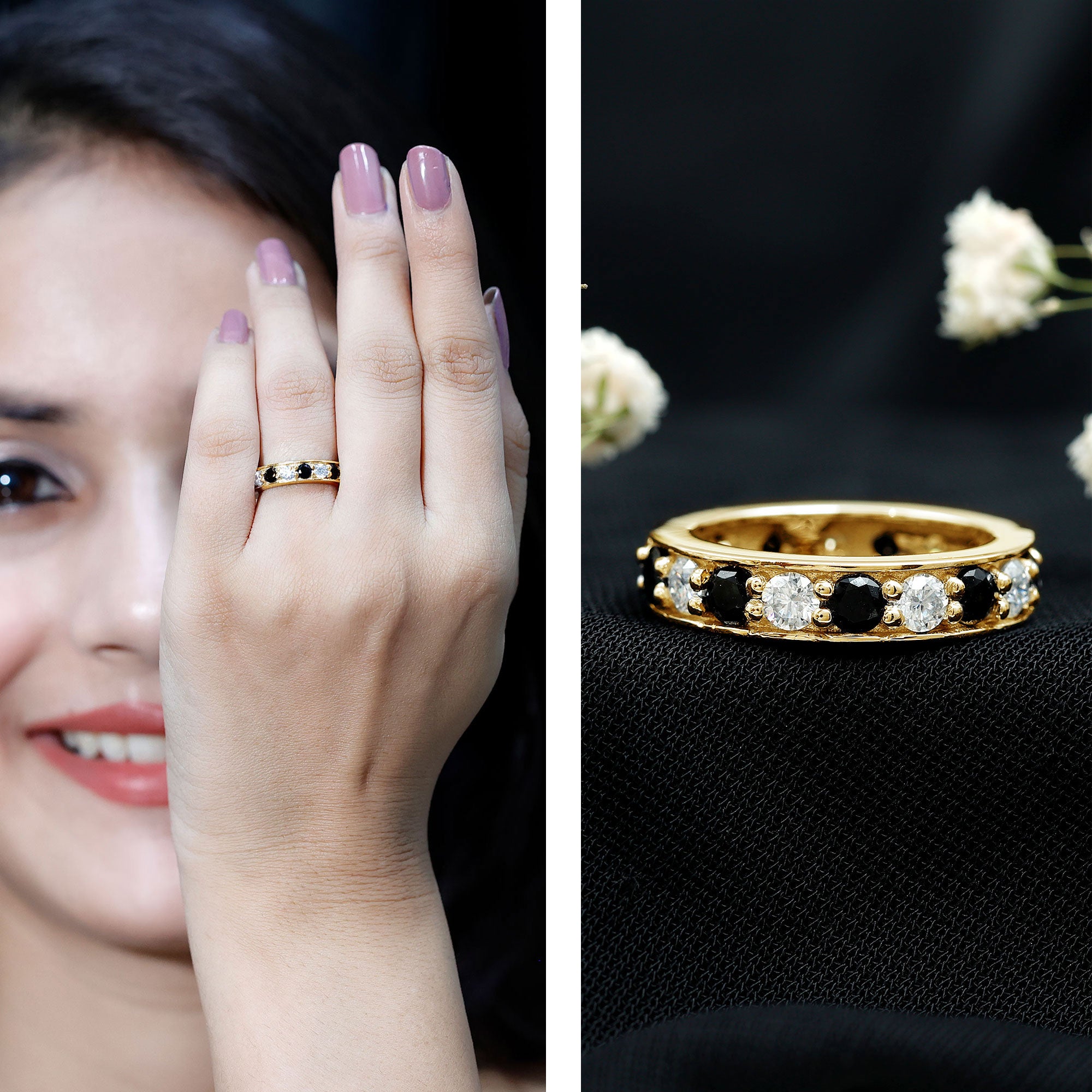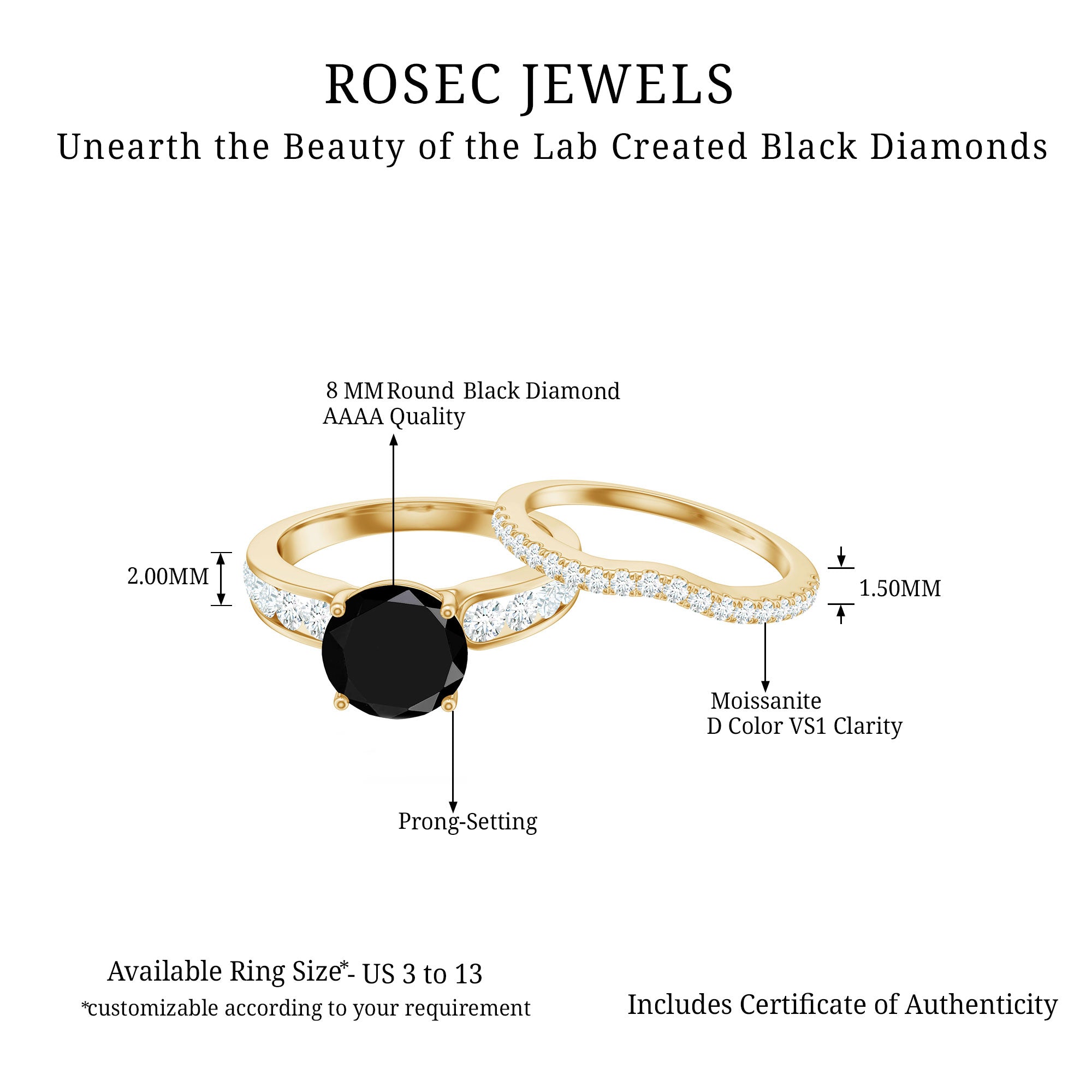 Type Of Metals: We have all three options of premium metals yellow gold, white gold, and rose gold. We also Have affordable and durable 92.5 silver metal options with lab black color gemstones.