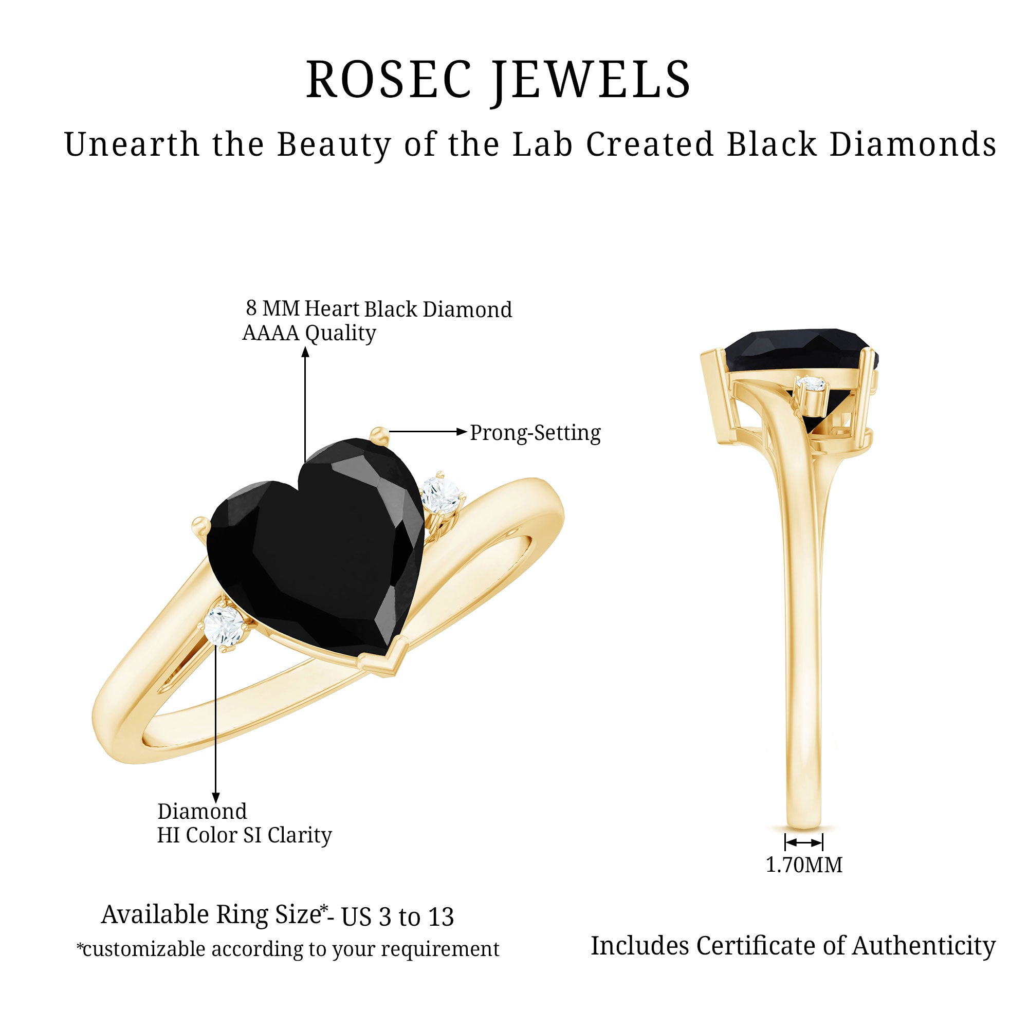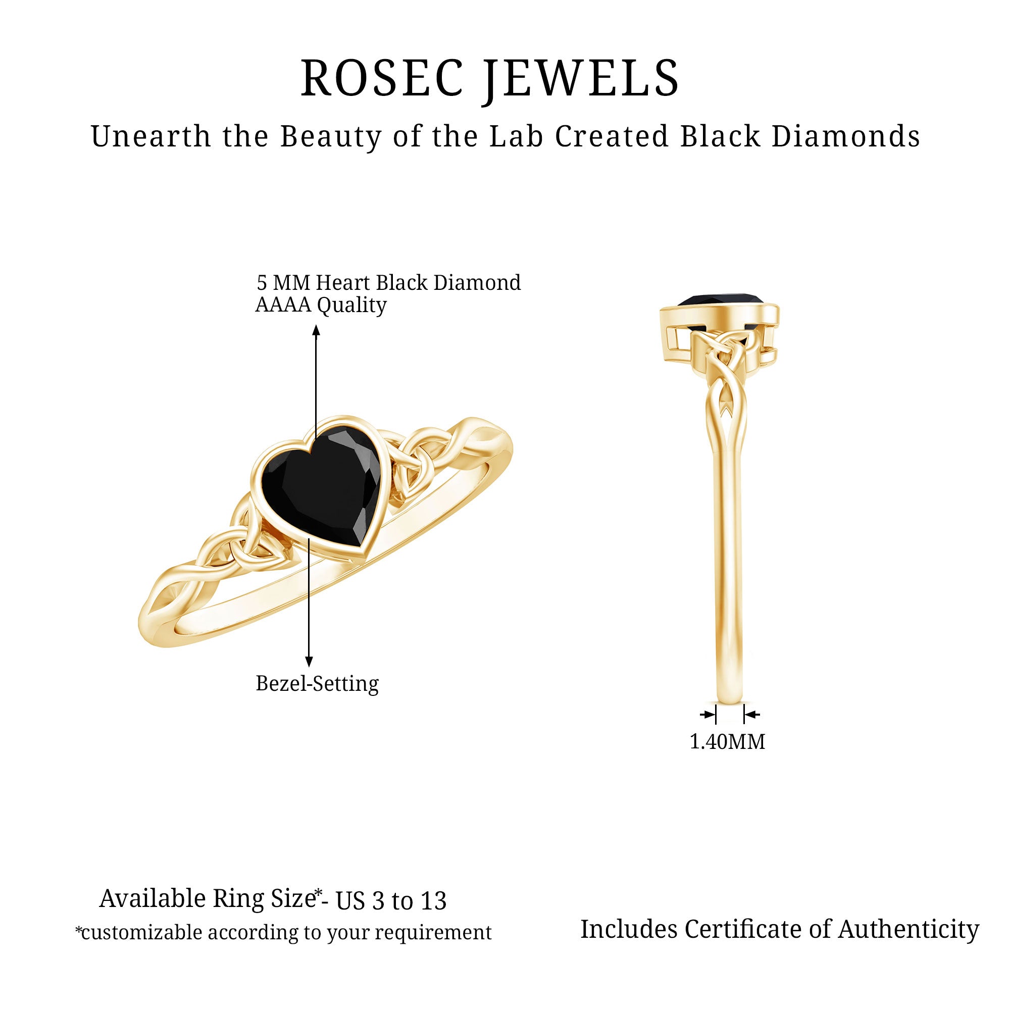 Rosec Jewels has emerged as the one-stop destination that has expertise in skill and creativity and brings forward a catalog of Lab Grown Black Diamond Jewelry that never lets you settle for anything less than you deserve. Here are some factors that set us apart: