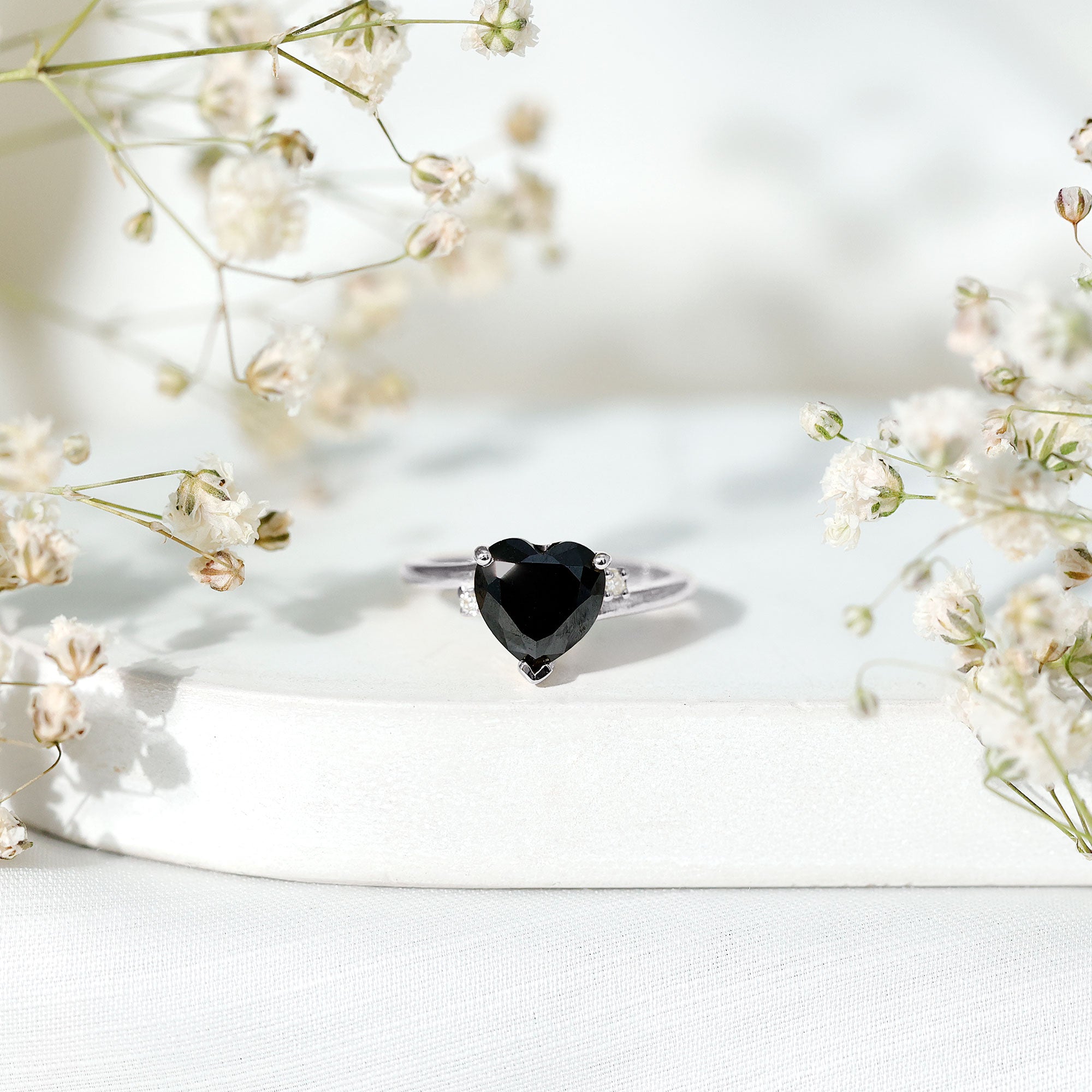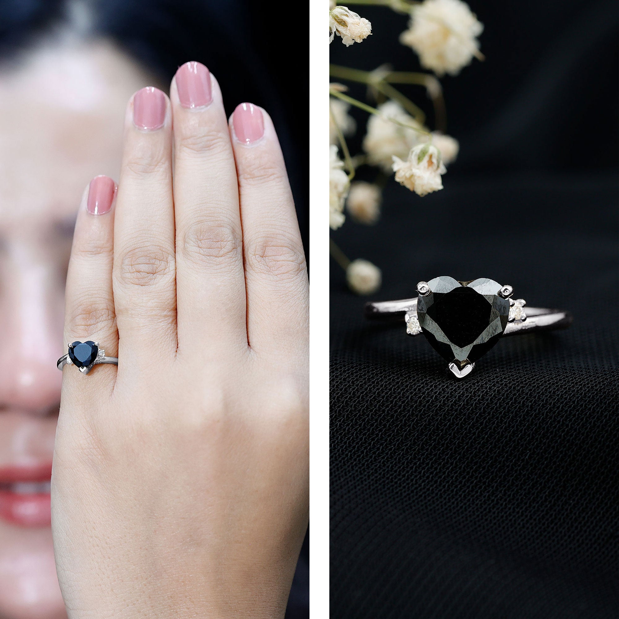 Promise rings symbolize devotion and commitment, as they are also called pre-engagement rings. Featuring a synthetic black diamond gemstone either in a simple style or enhanced by diamonds or other gems to make it more attractive. The black diamond promise rings are an incredible way to express your feelings for your special one. An ideal reminder of the commitment you both share.