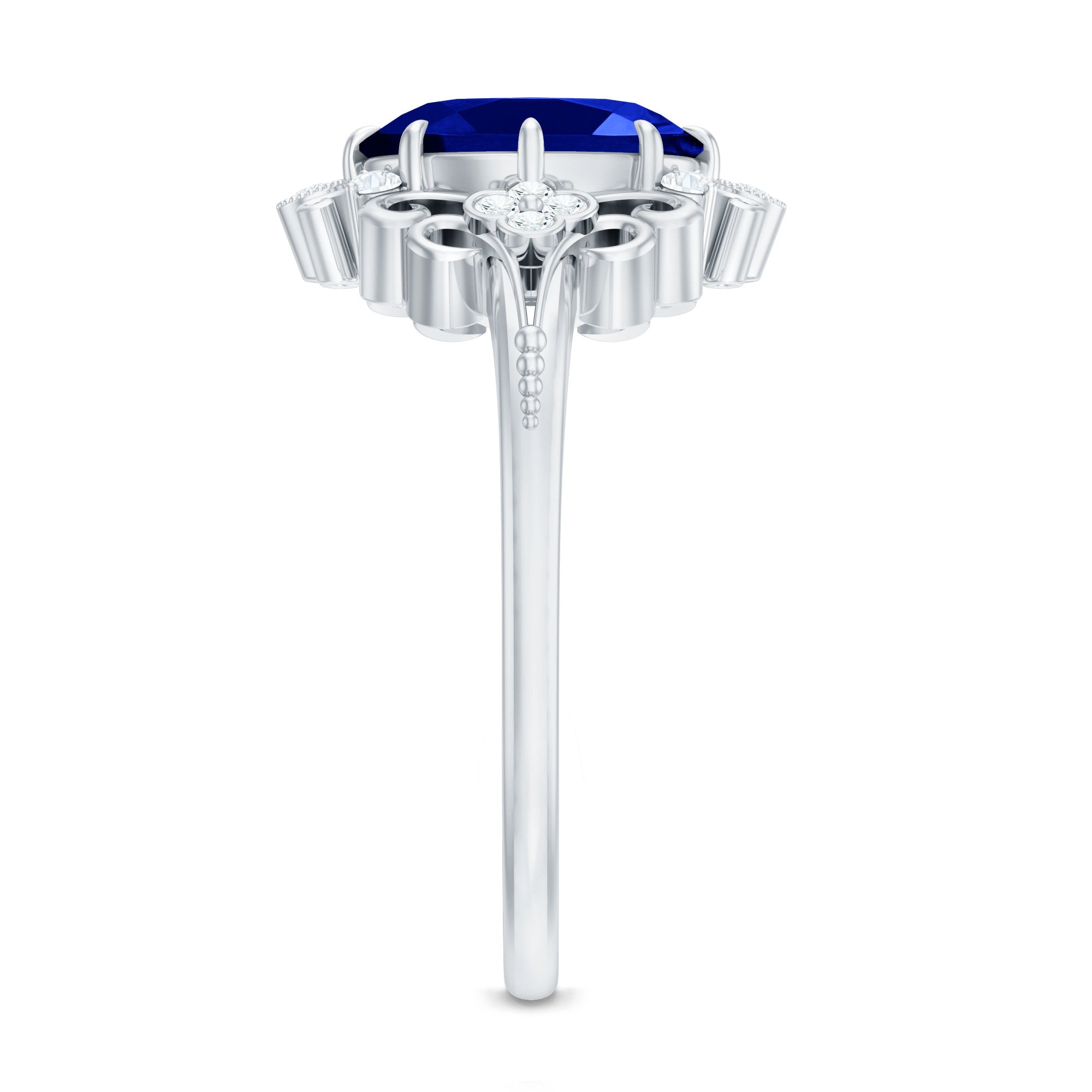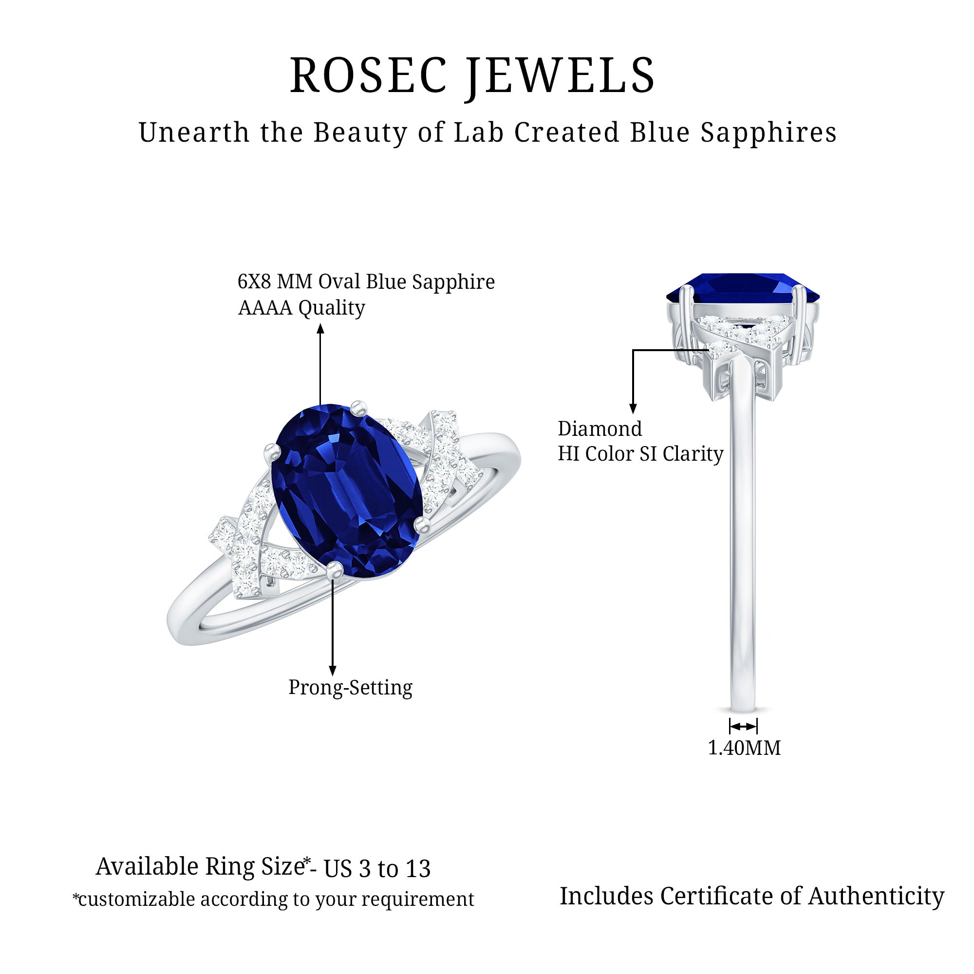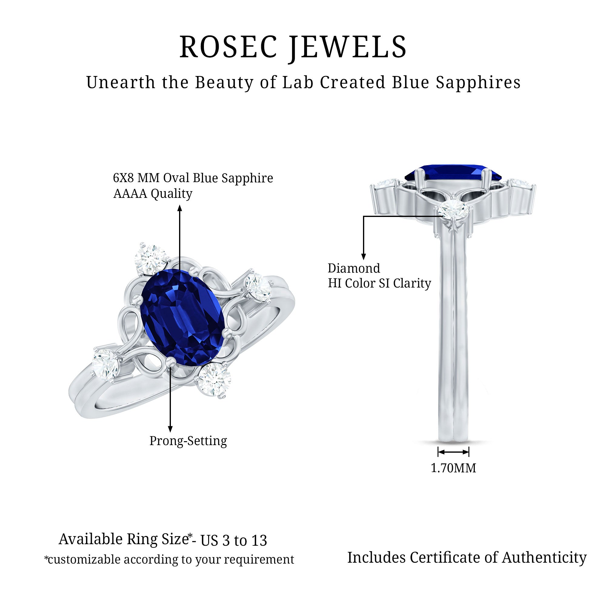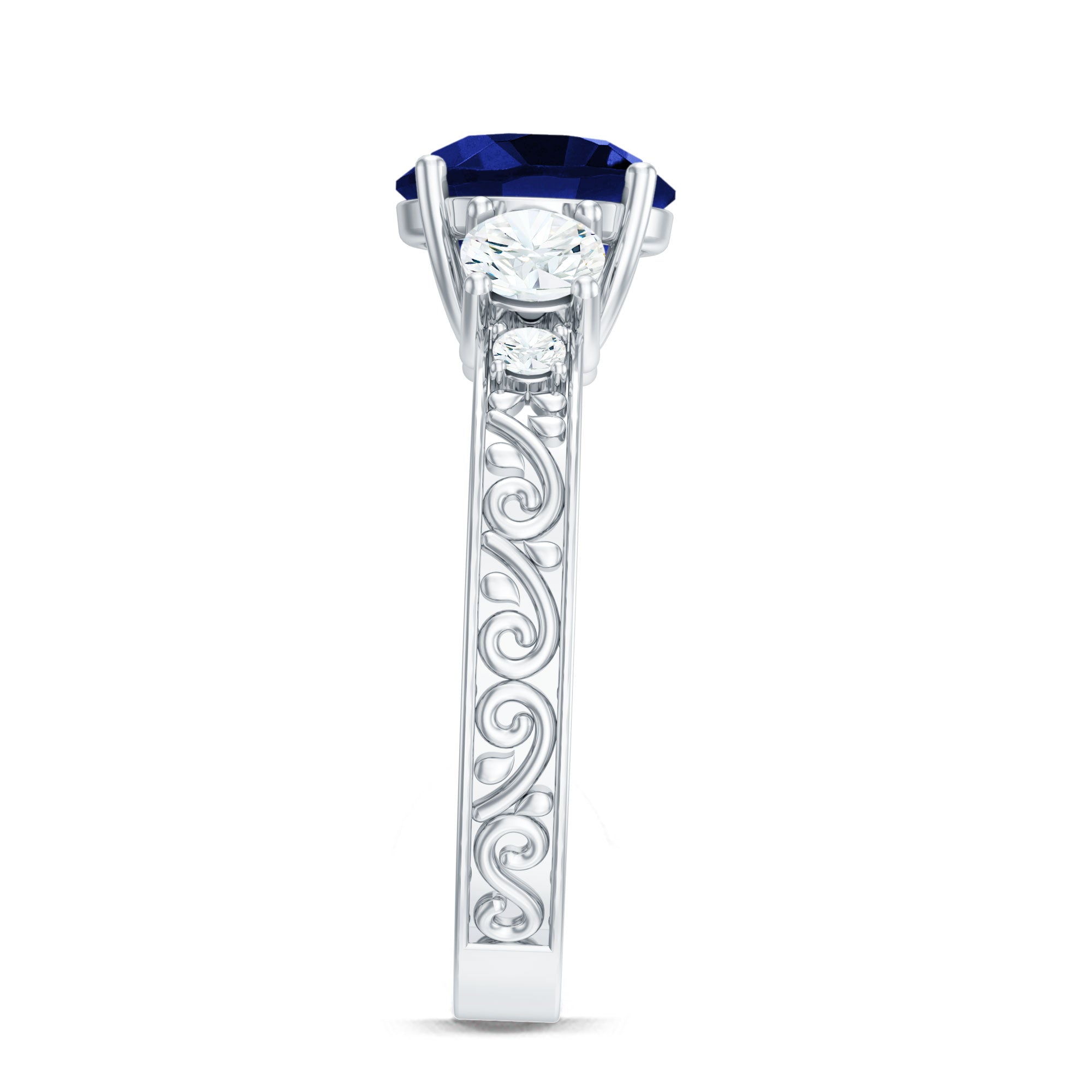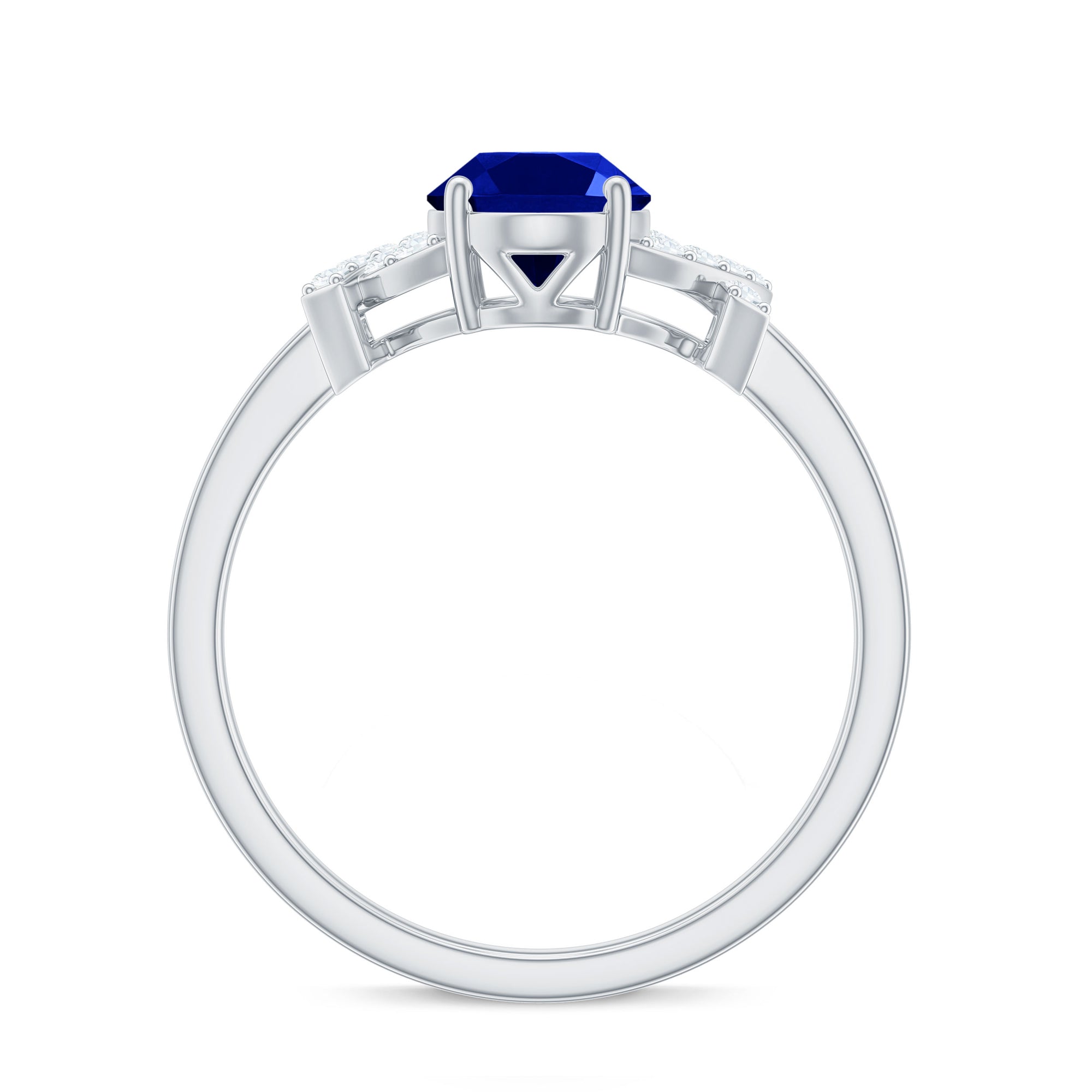 Royal Blue Hue: Rich Royal Blue Hue: rich royal blue color of lab created blue sapphires is associated with wisdom, loyalty, and sincerity. Couples look for these qualities while promising a lifelong commitment on this big day. The soulful hue of lab blue sapphire gemstone adds a royal touch to your engagement ring.