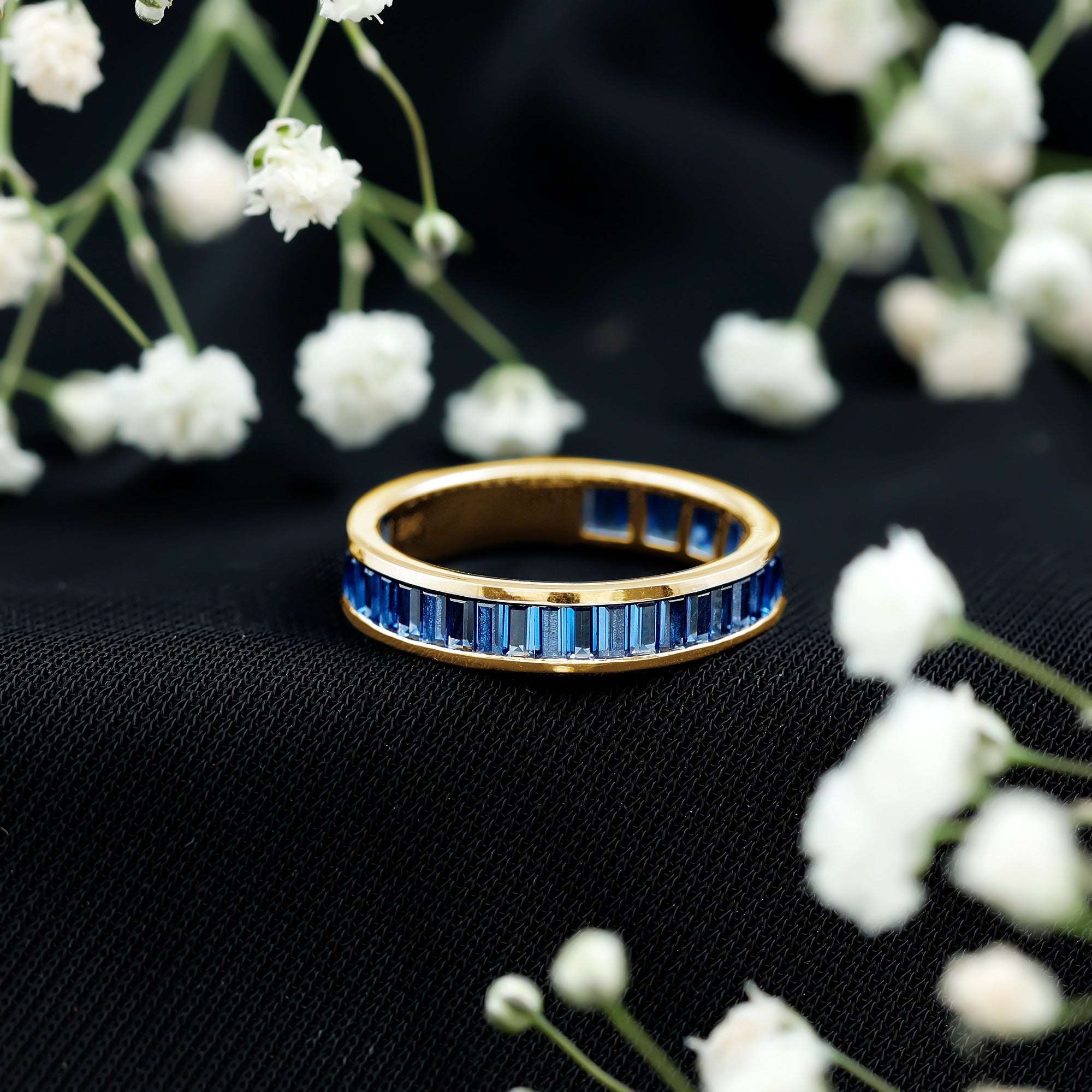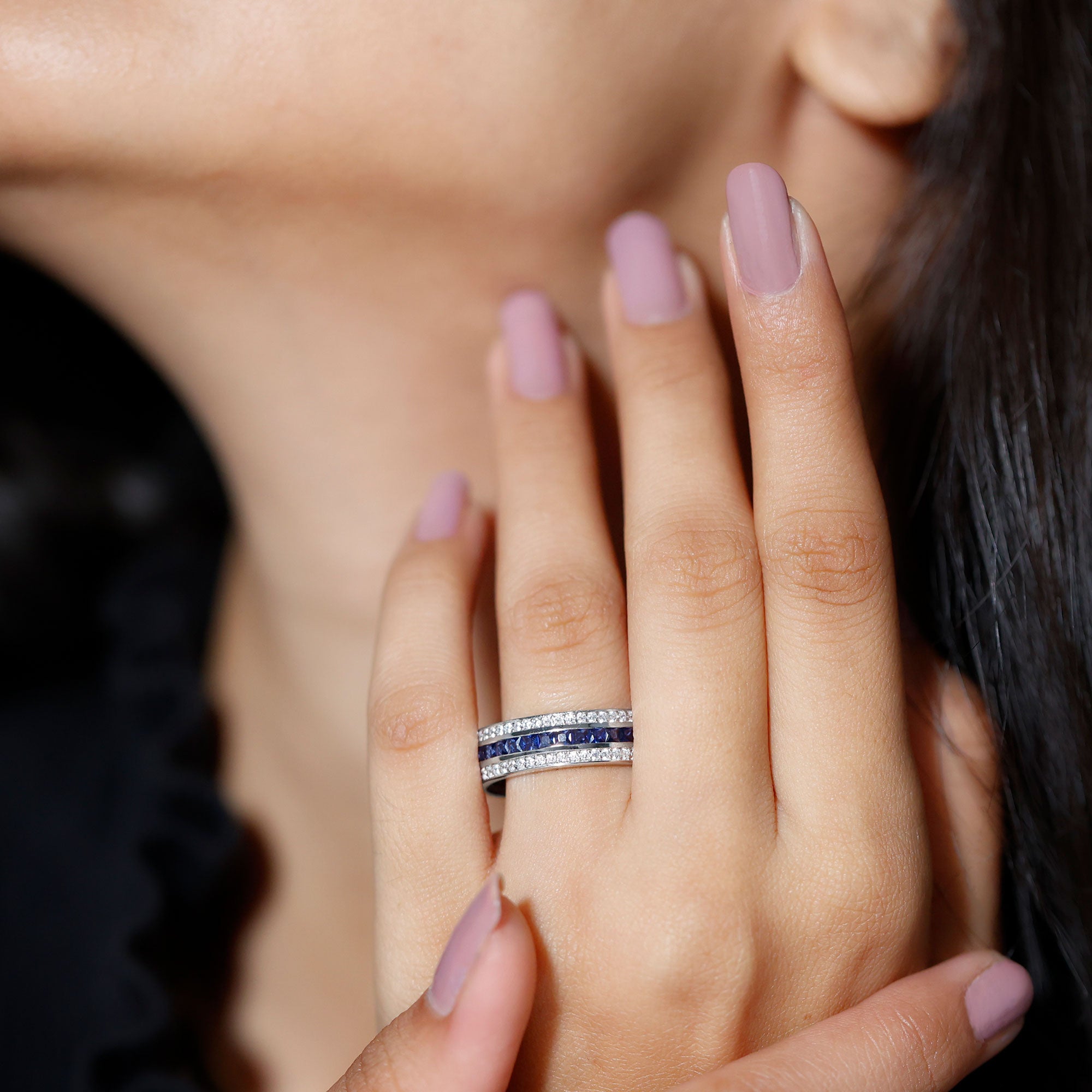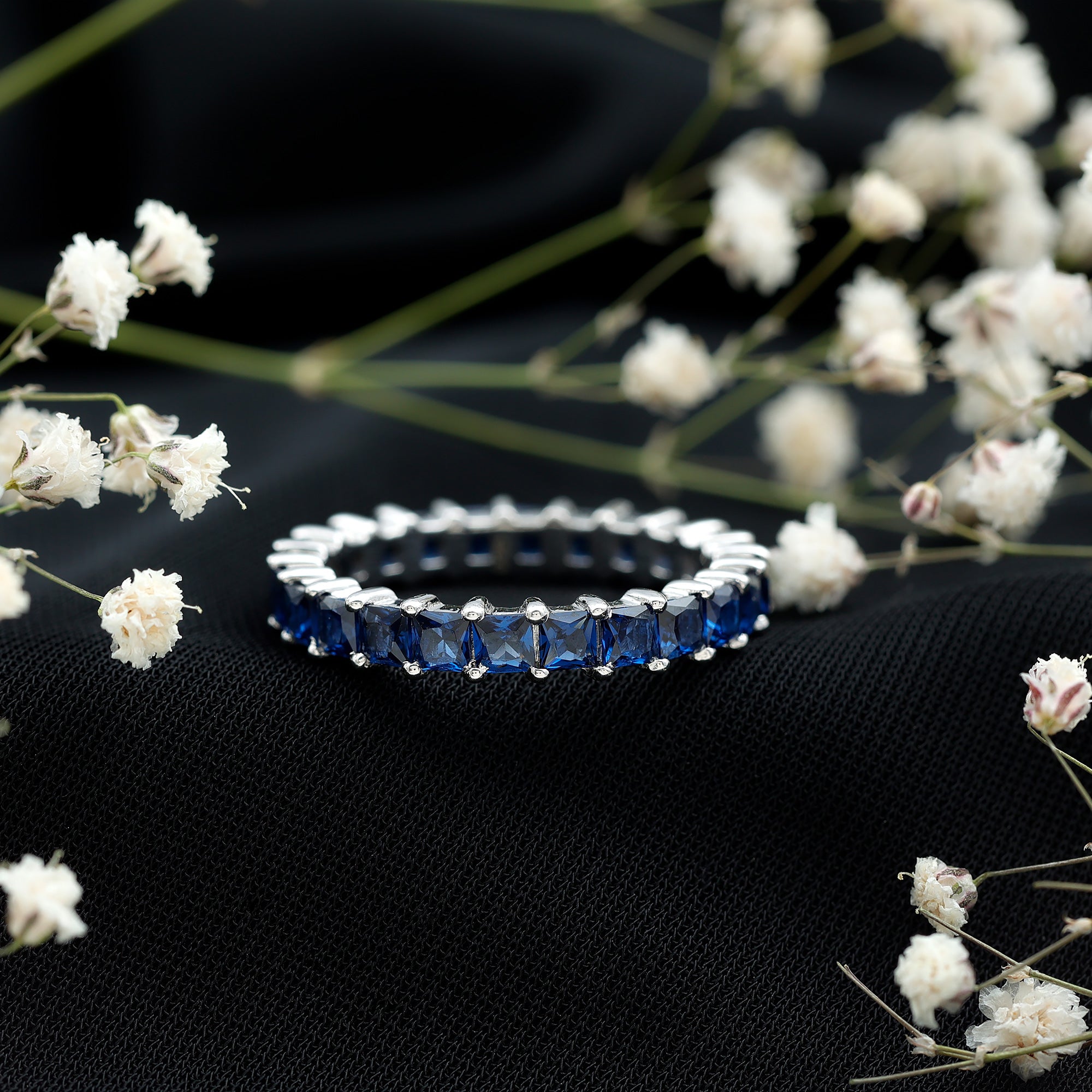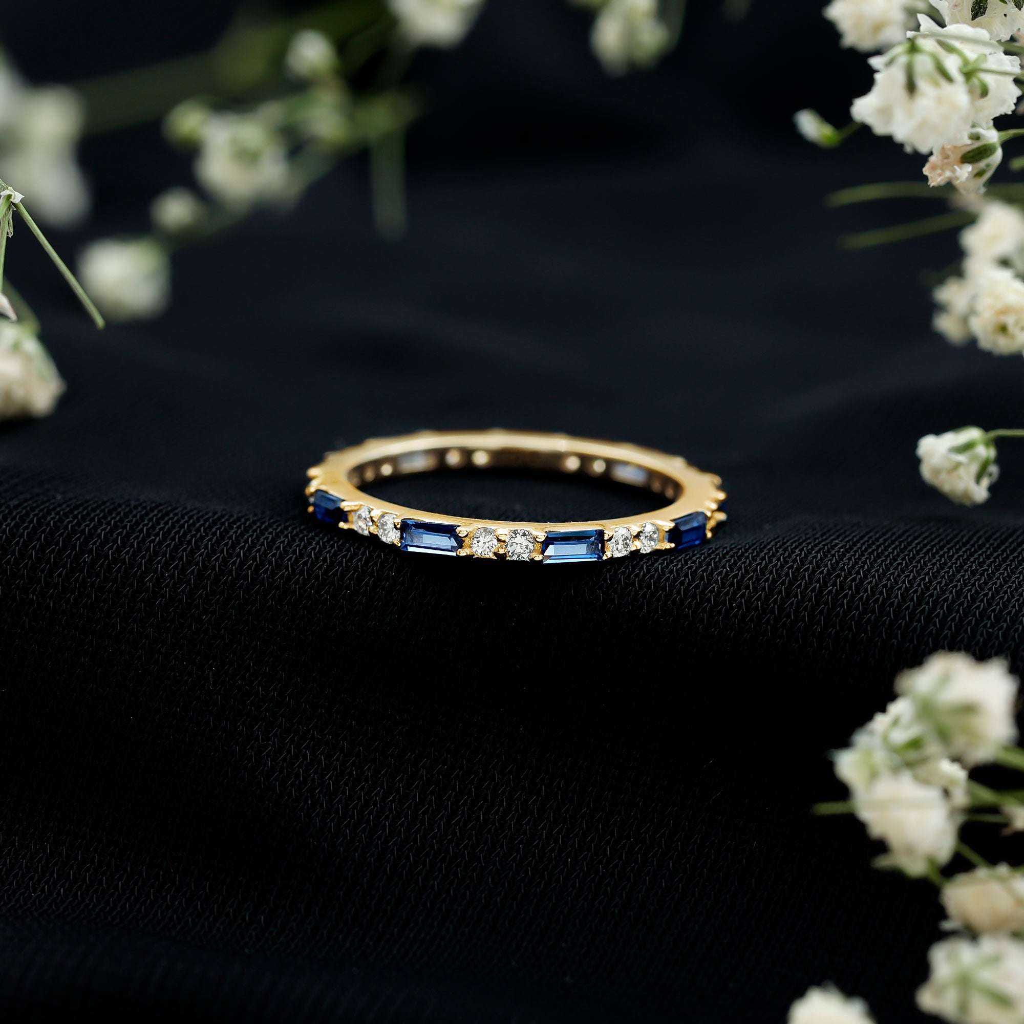 Eternity Rings: Celebrate the ever-lasting bond that you have with your loved ones and remind them of the same everyday with our Blue Sapphire Eternity rings which are duly crafted with love for your special ones.
