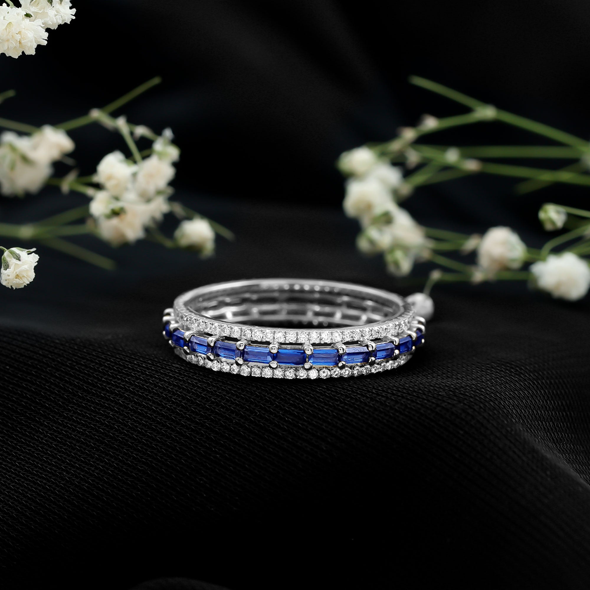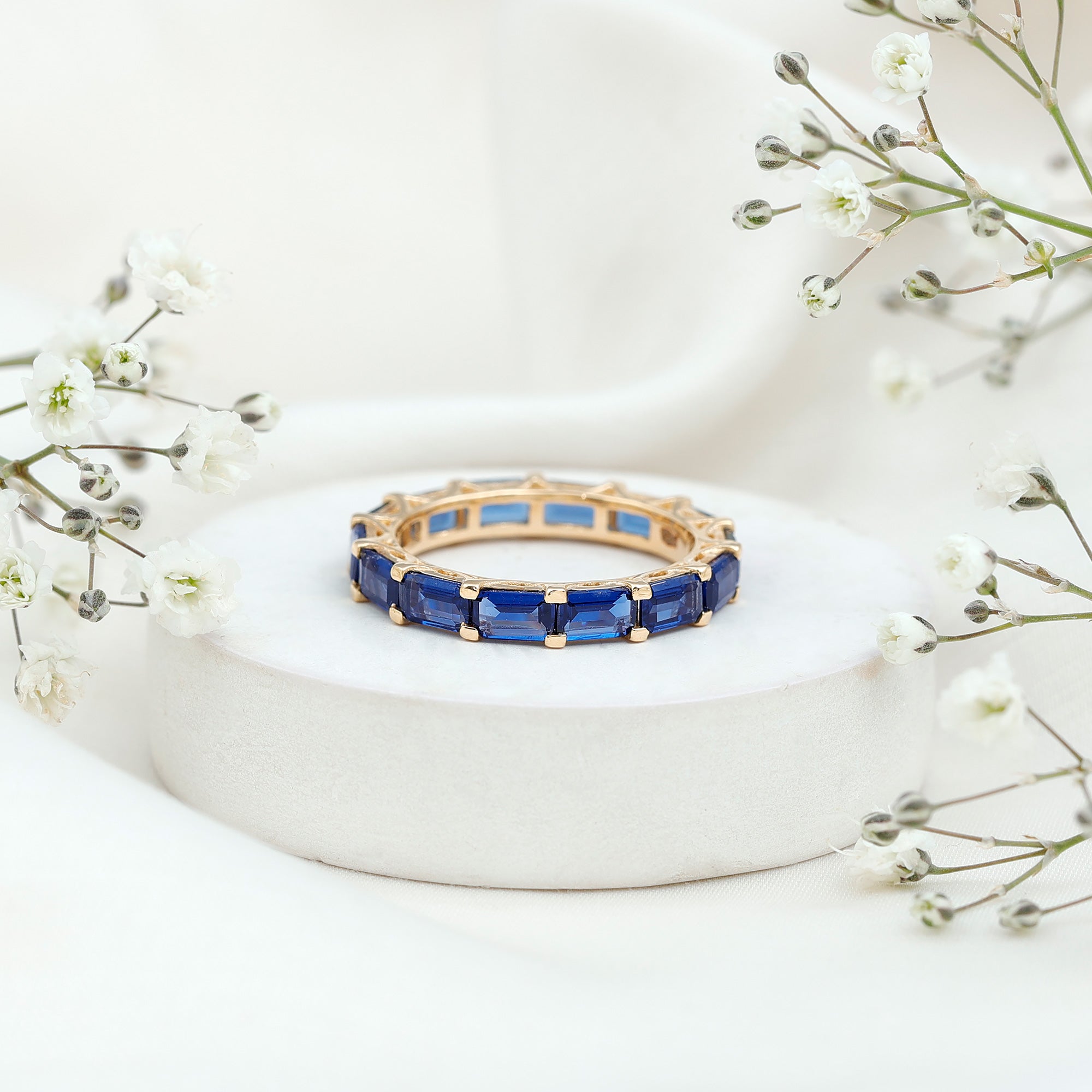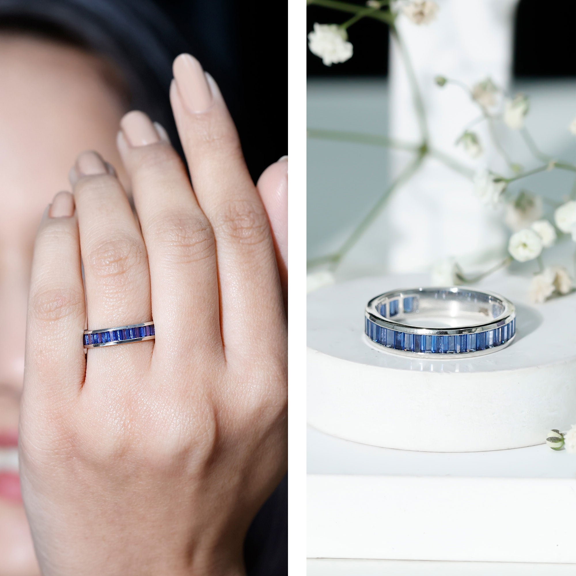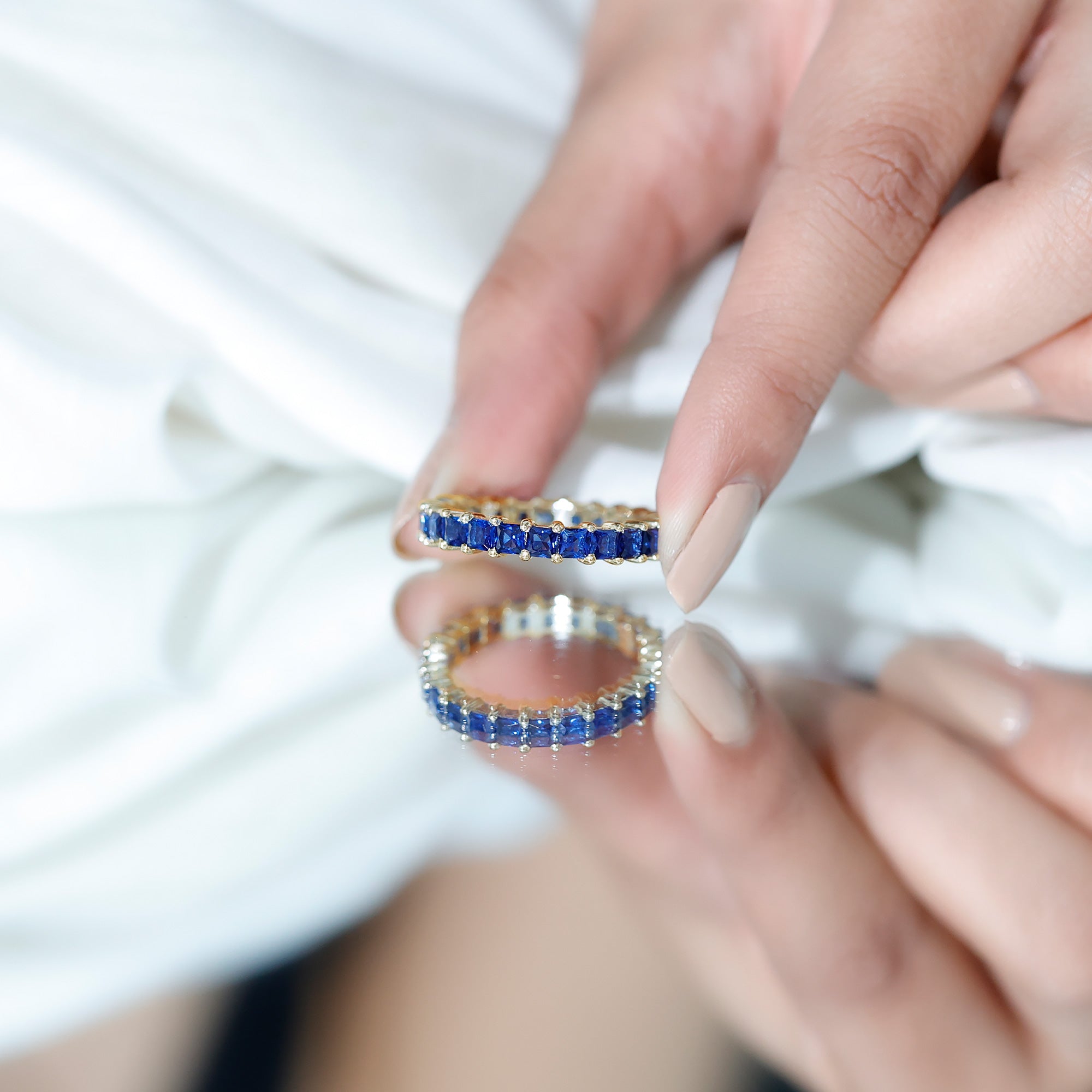 Eternity Rings: Celebrate the ever-lasting bond that you have with your loved ones and remind them of the same everyday with our Blue Sapphire Eternity rings which are duly crafted with love for your special ones.