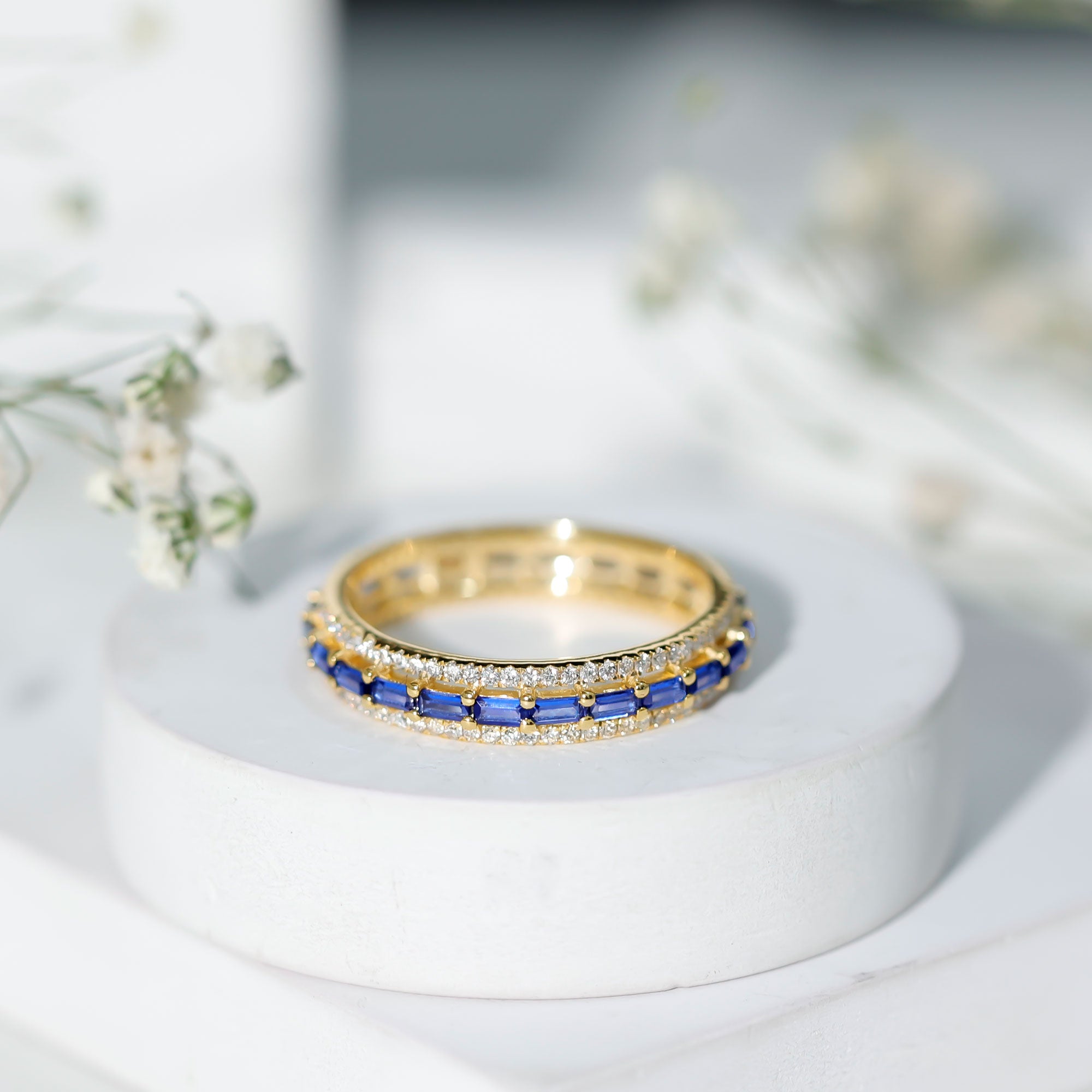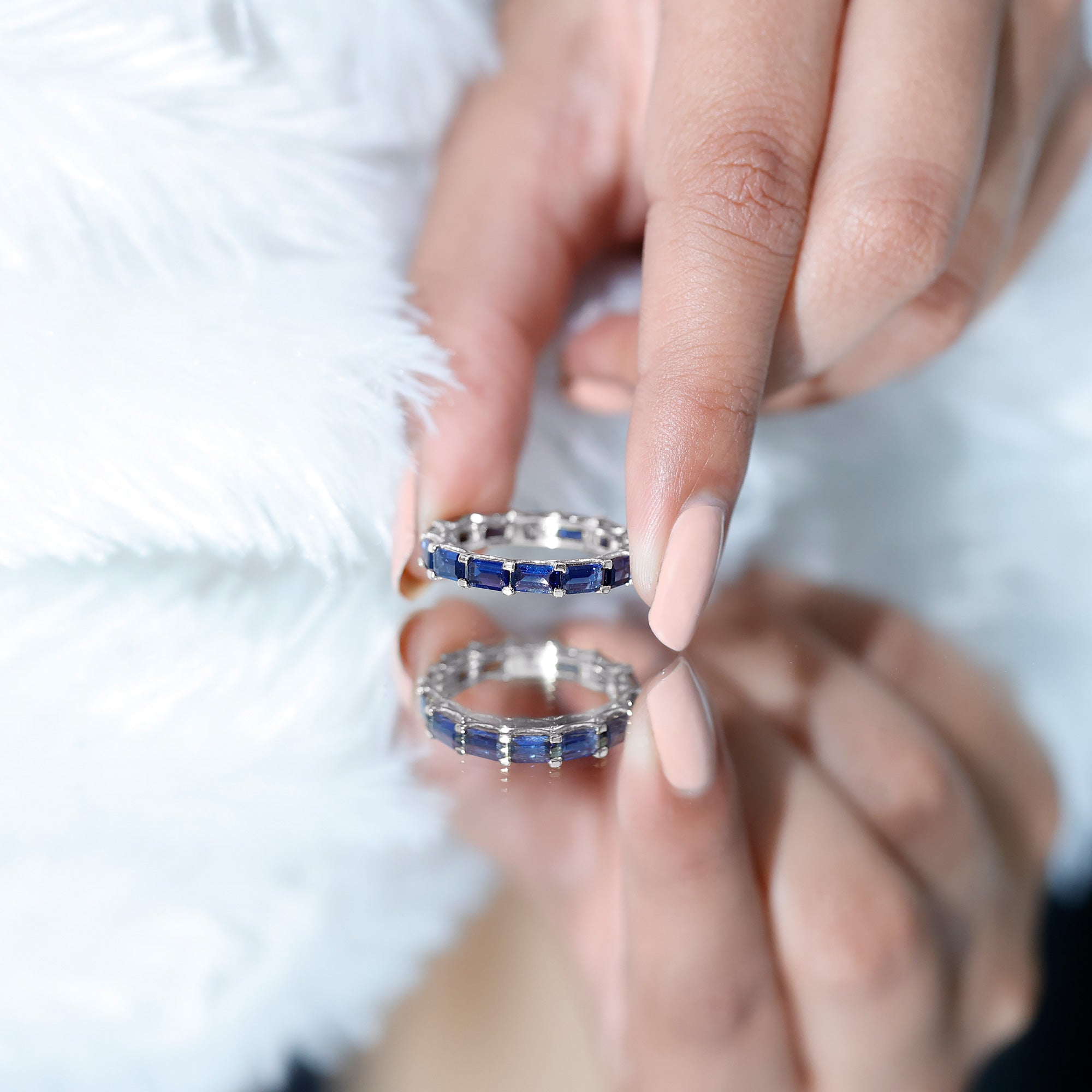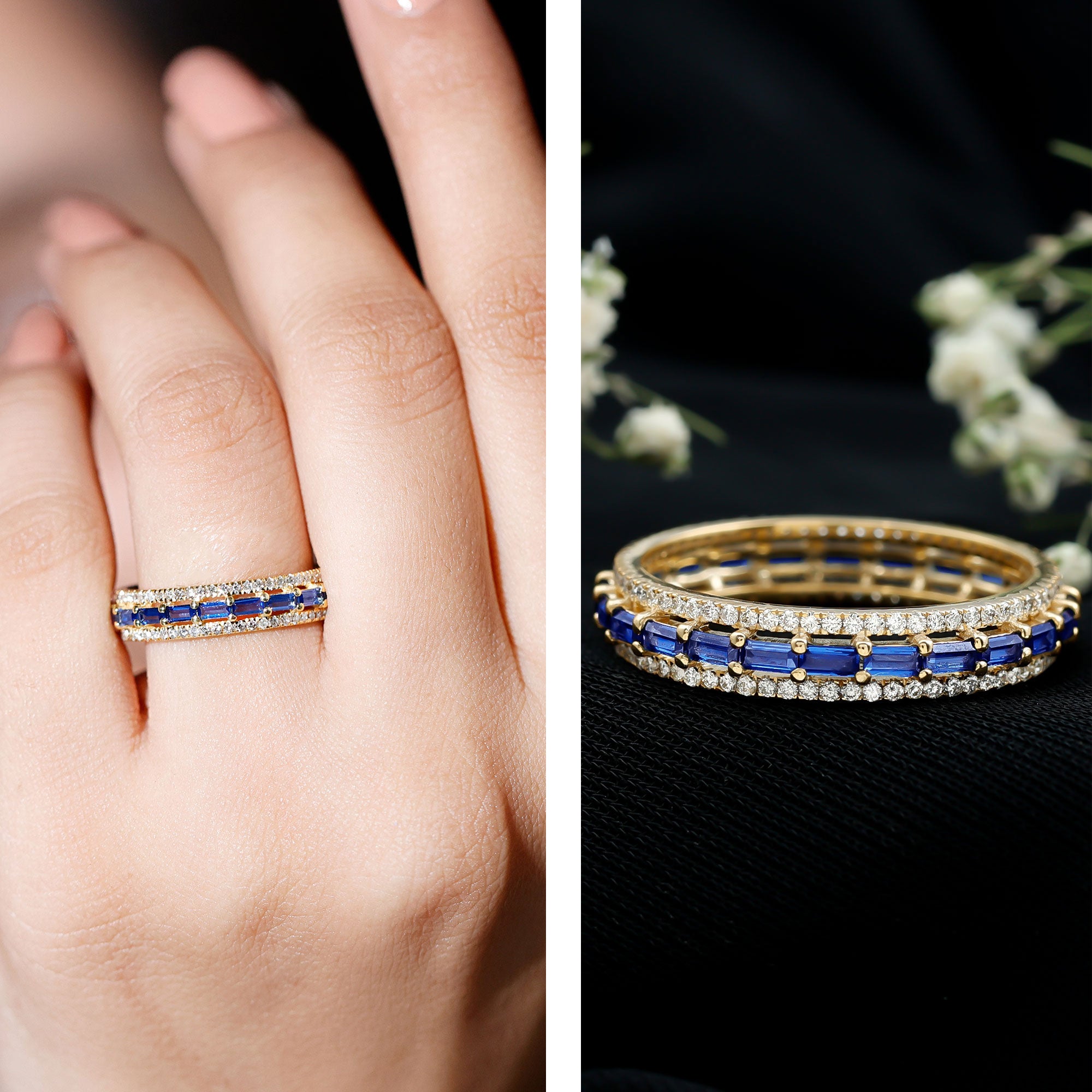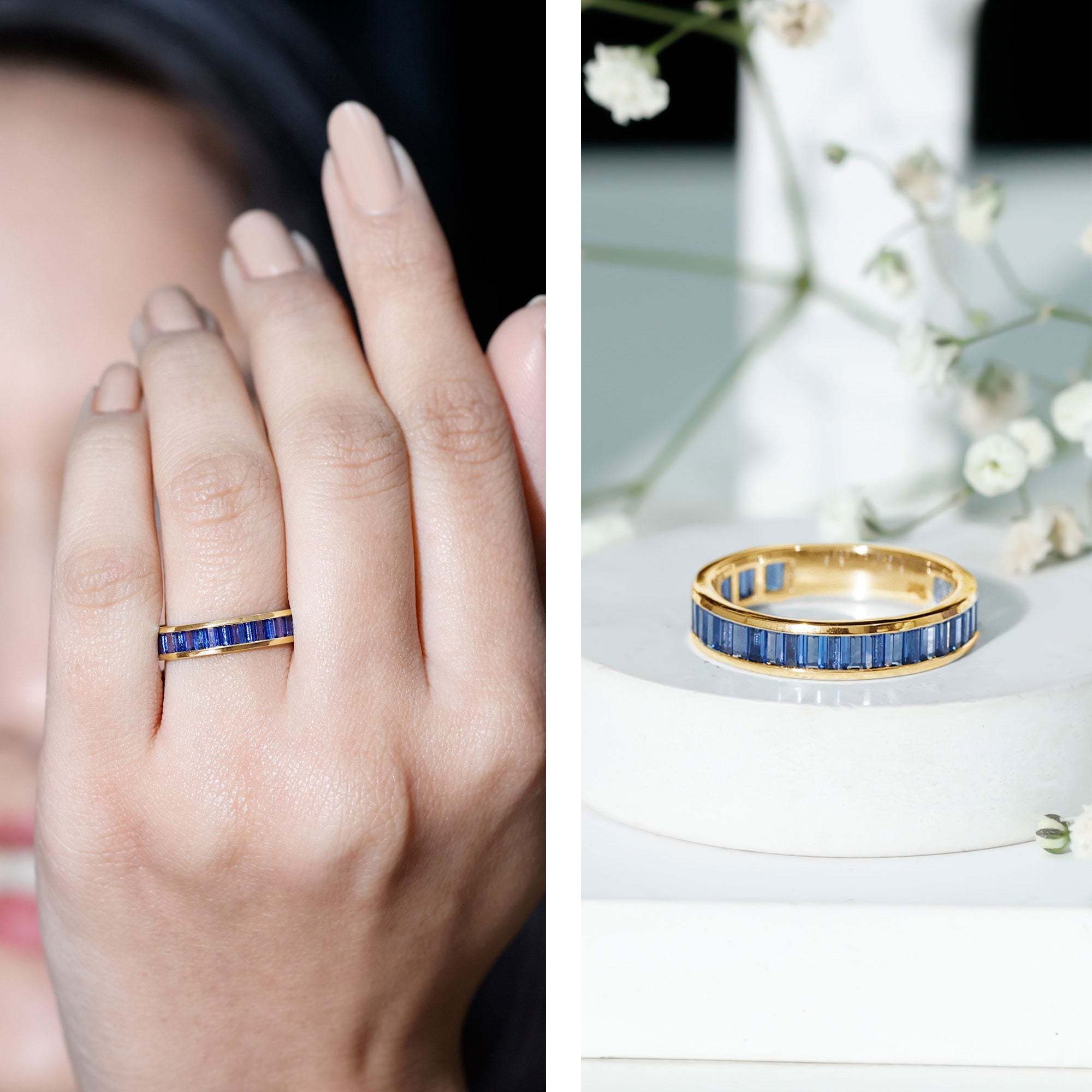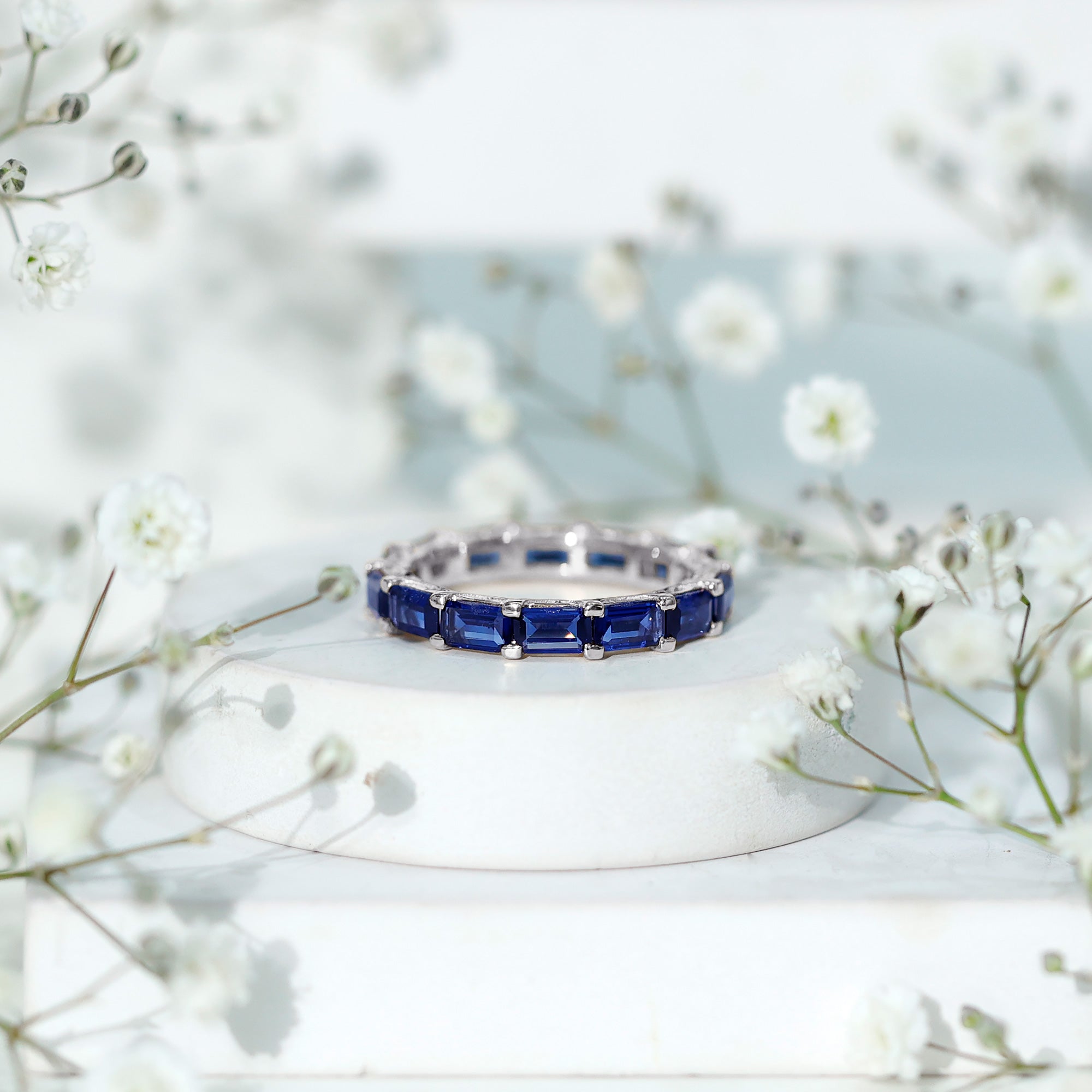 Eternity Rings: Celebrate the ever-lasting bond that you have with your loved ones and remind them of the same everyday with our Blue Sapphire Eternity rings which are duly crafted with love for your special ones.