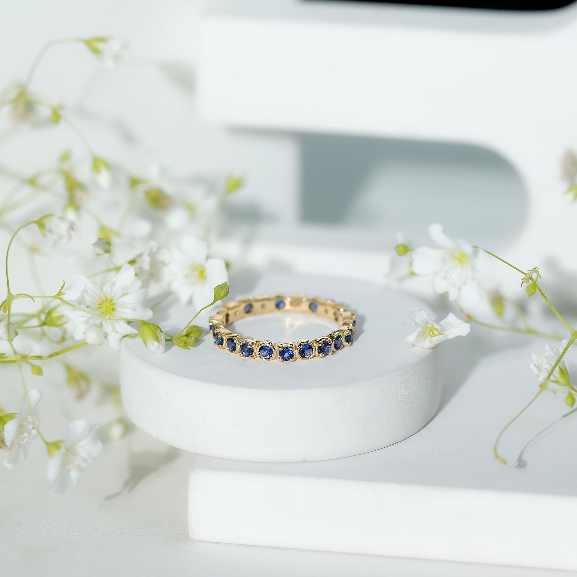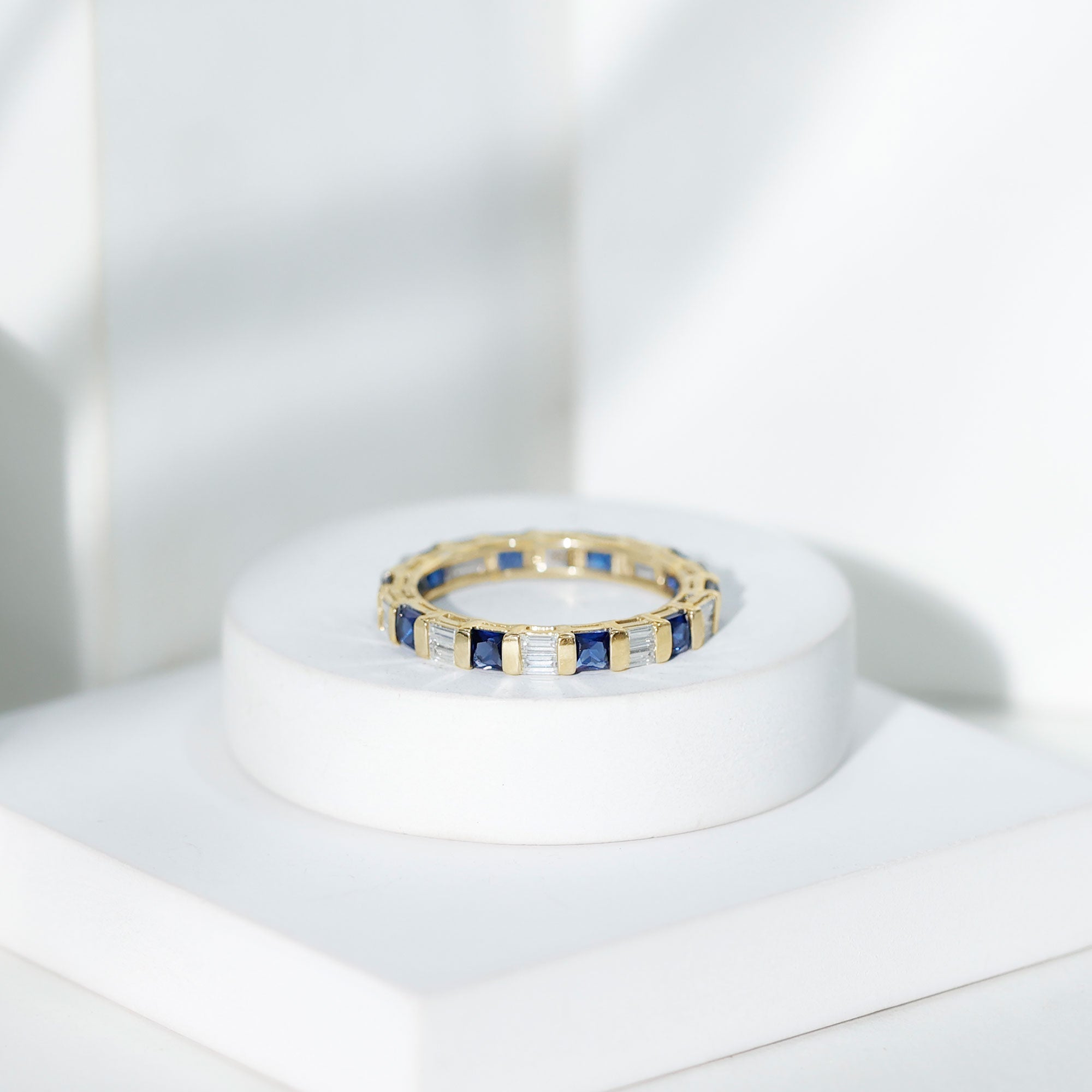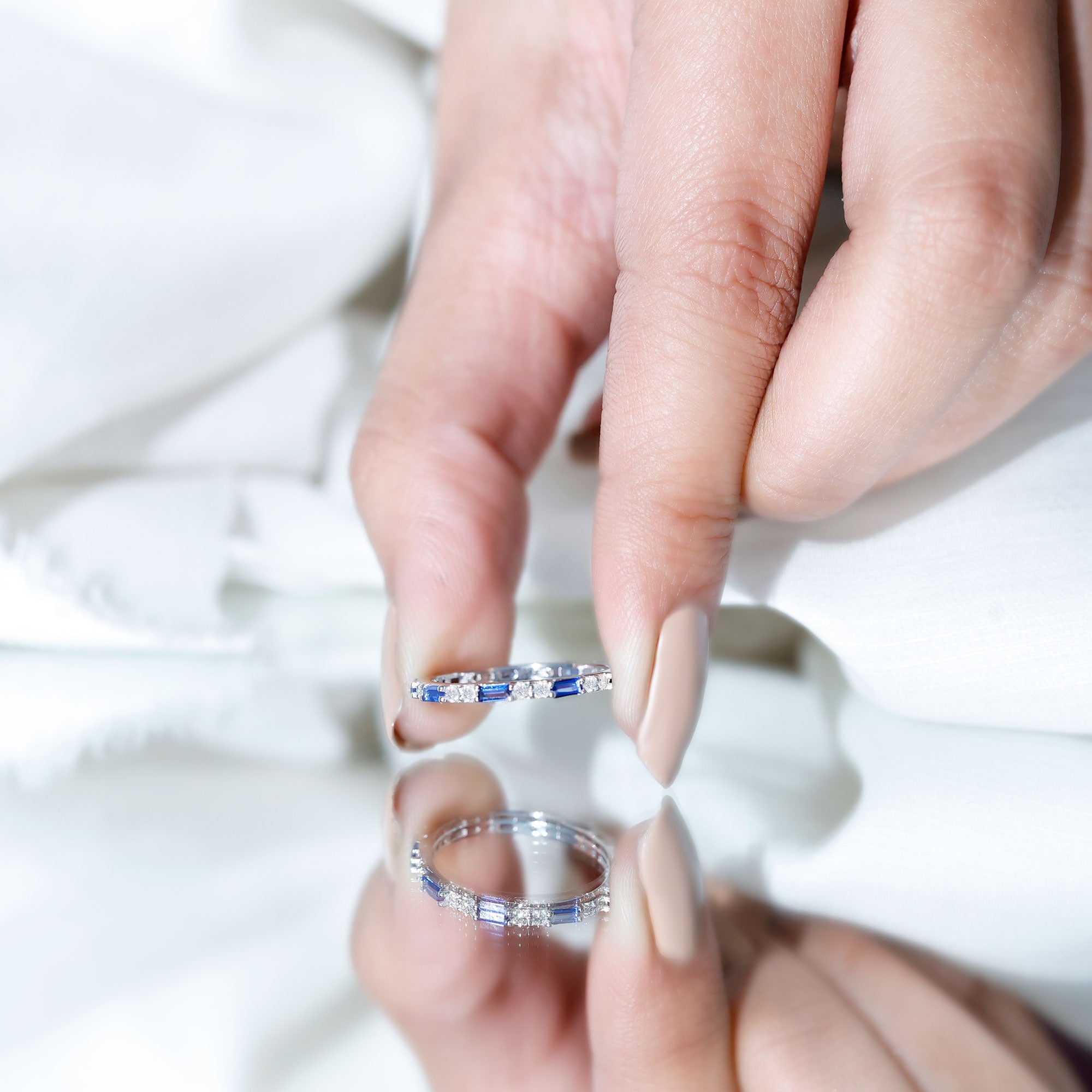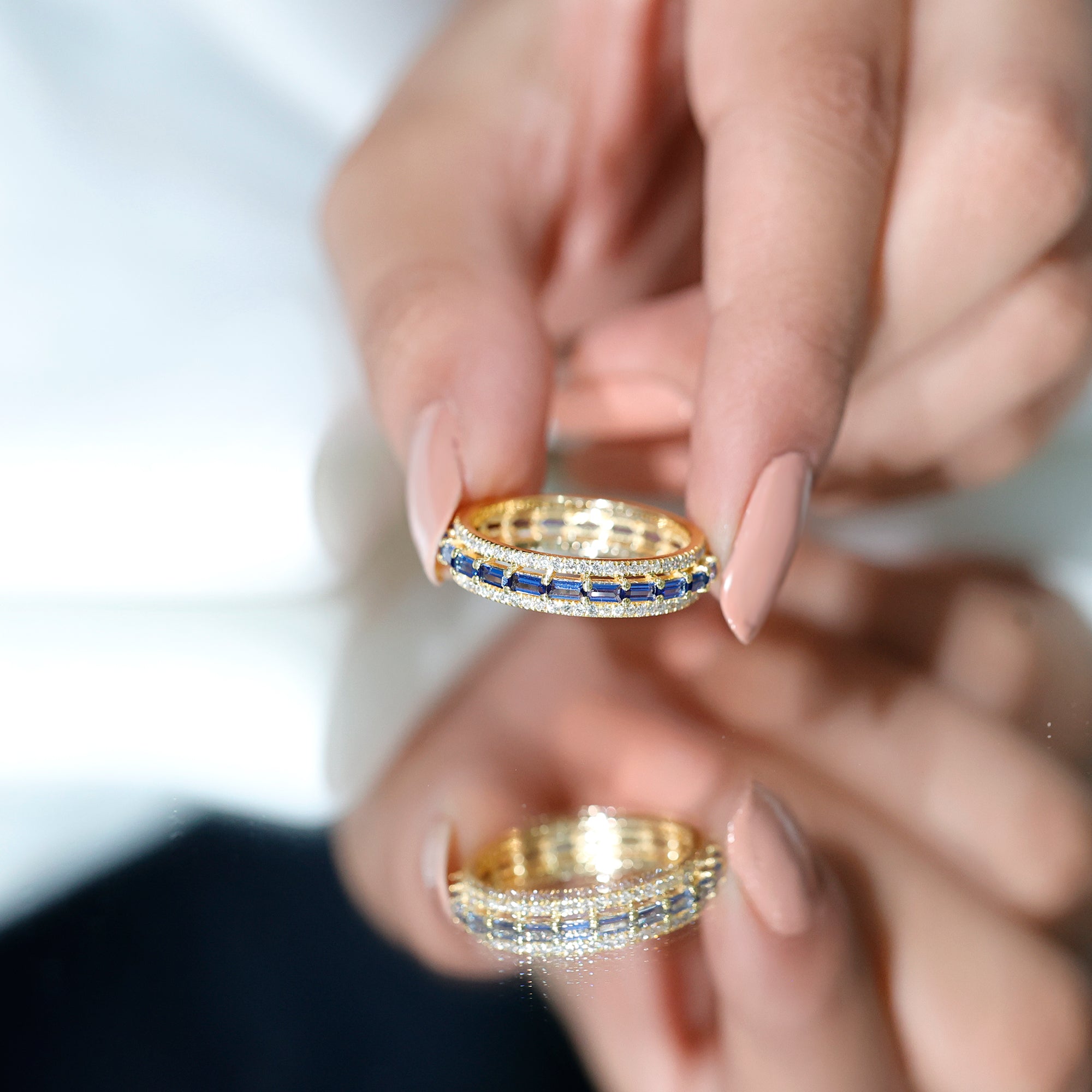 Eternity Rings: Celebrate the ever-lasting bond that you have with your loved ones and remind them of the same everyday with our Blue Sapphire Eternity rings which are duly crafted with love for your special ones.