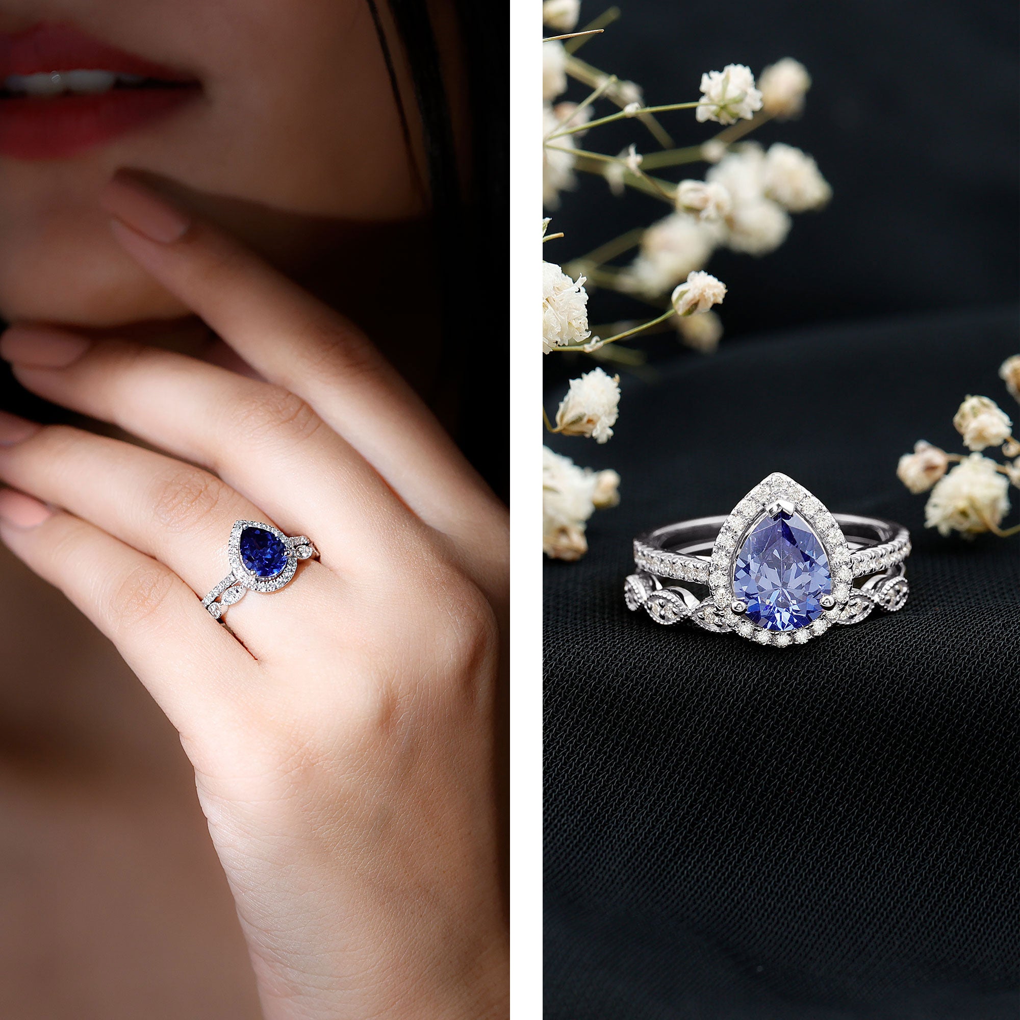 Rings Sets: Give yourself a luxurious appeal with our Blue Sapphire Ring Sets designed especially to keep your precious bonds held close to you in one set of bands. Bridal Ring Set is a combination of engagement ring and wedding ring.