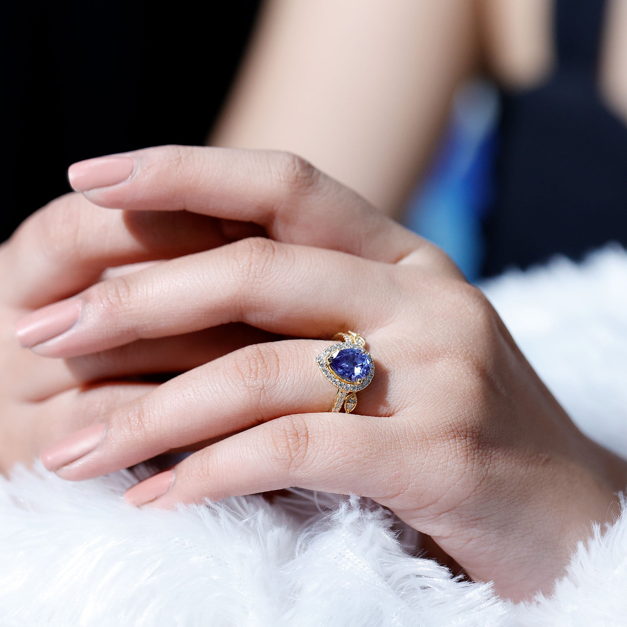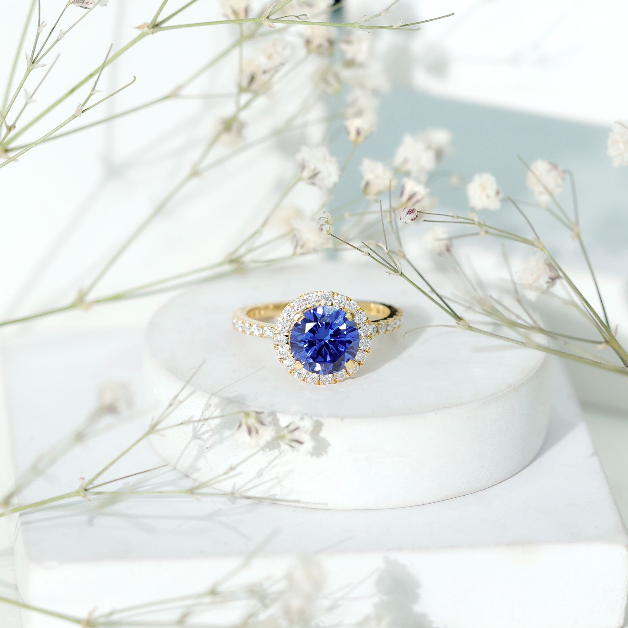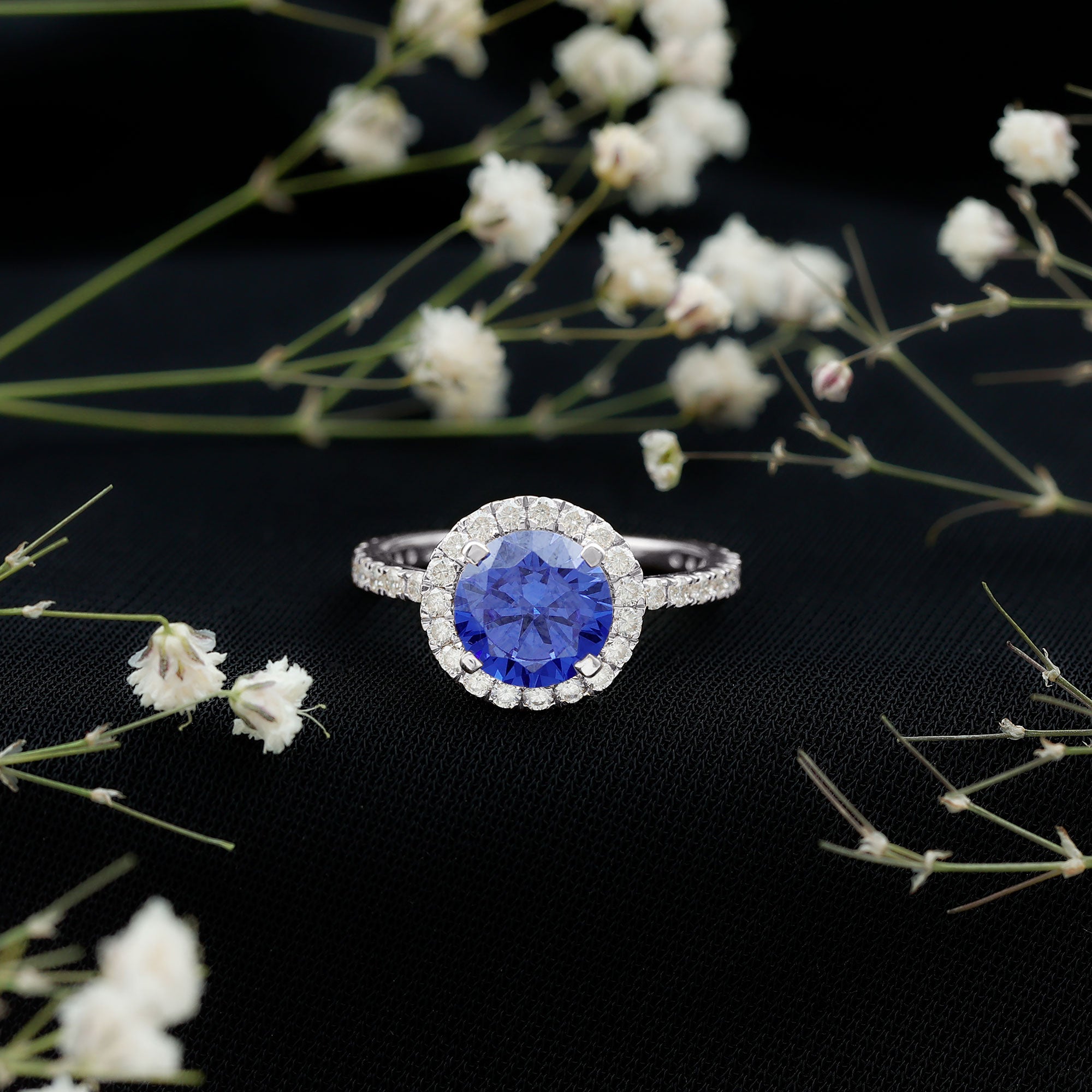 Halo Rings: Begin your new chapter of life with our Blue Sapphire Halo rings. Our eye-catching Blue Sapphire placed in the center and surrounded by small Moissanite stones giving it a magnified look. It fits perfectly with all your occasions as an ultimate symbol of elegance and luxury.