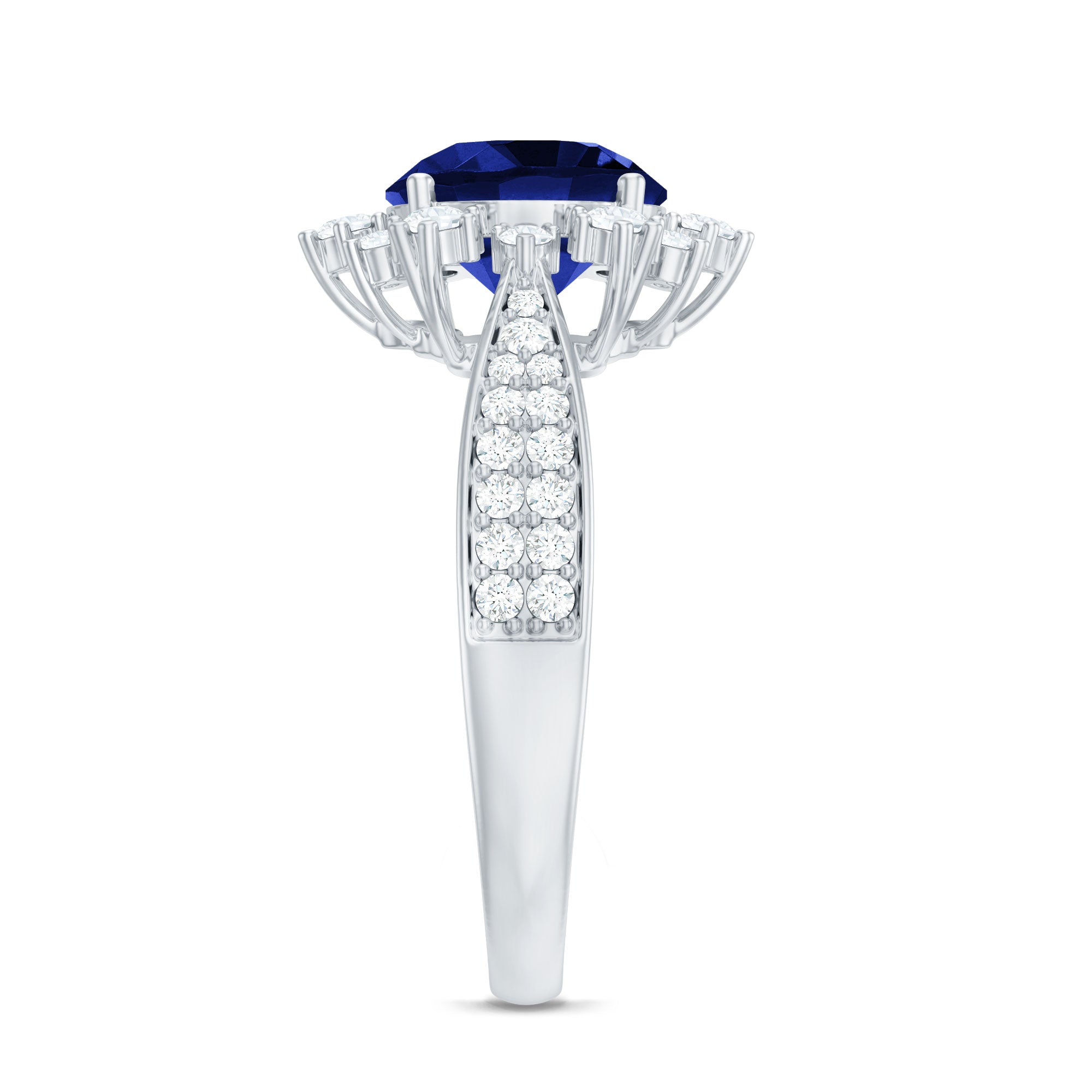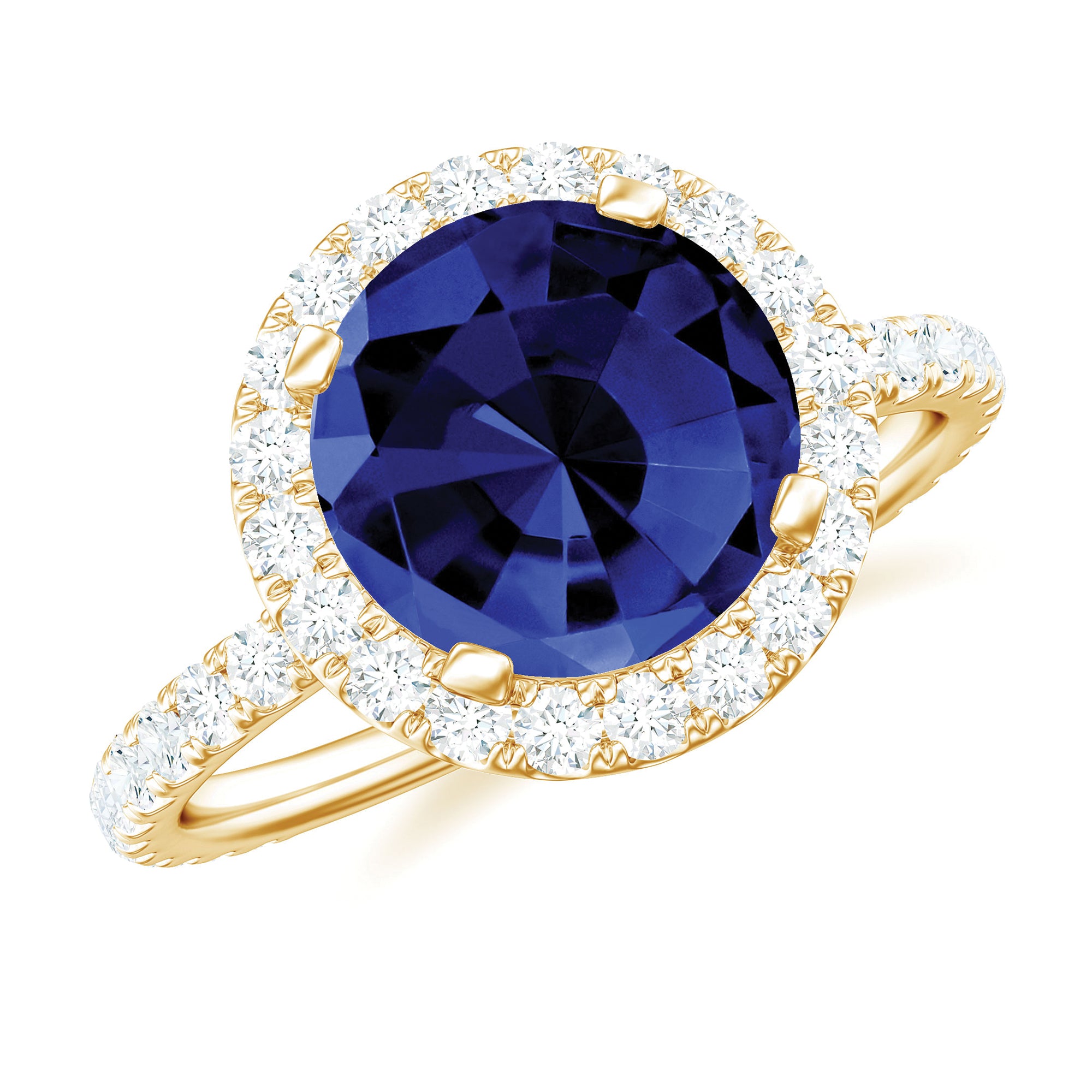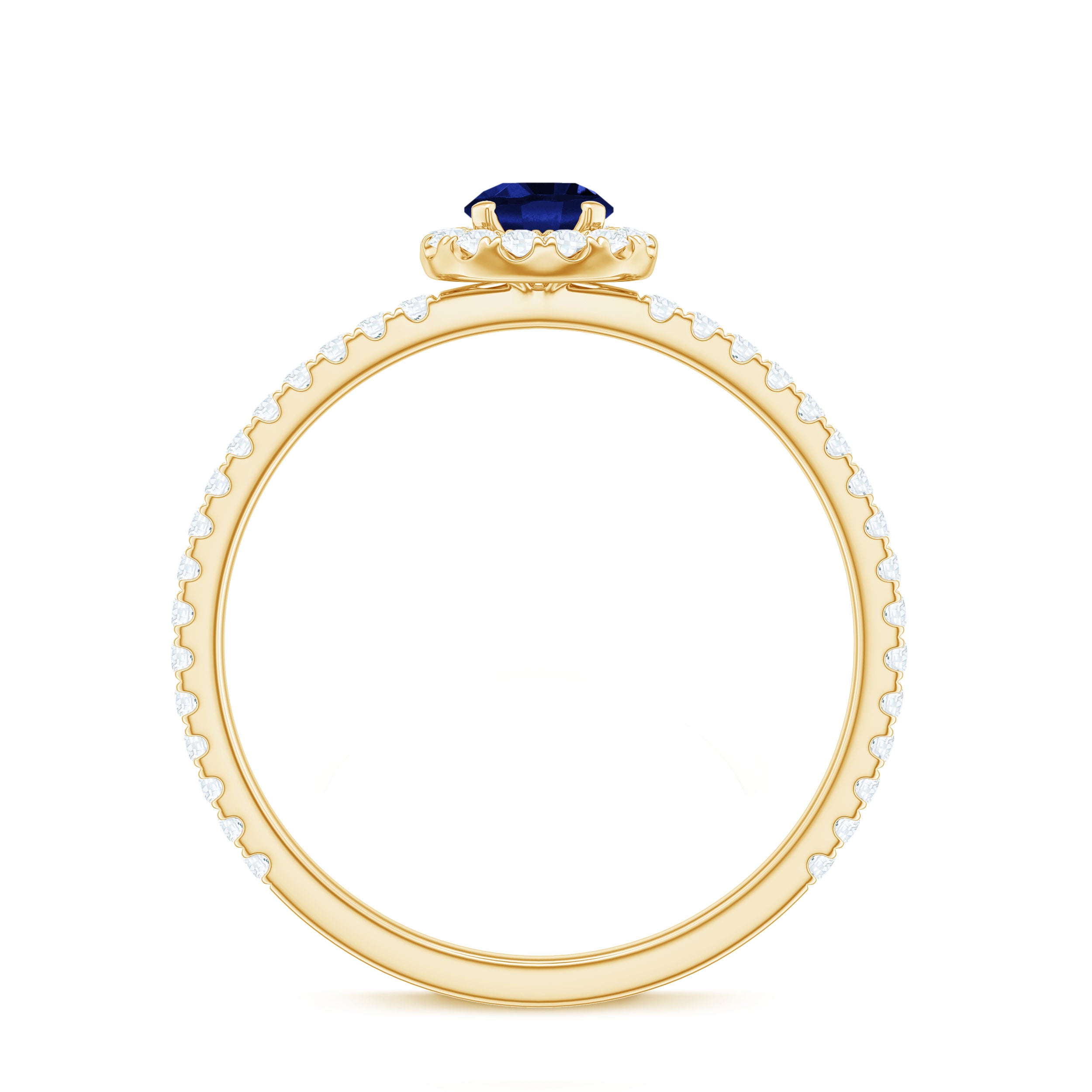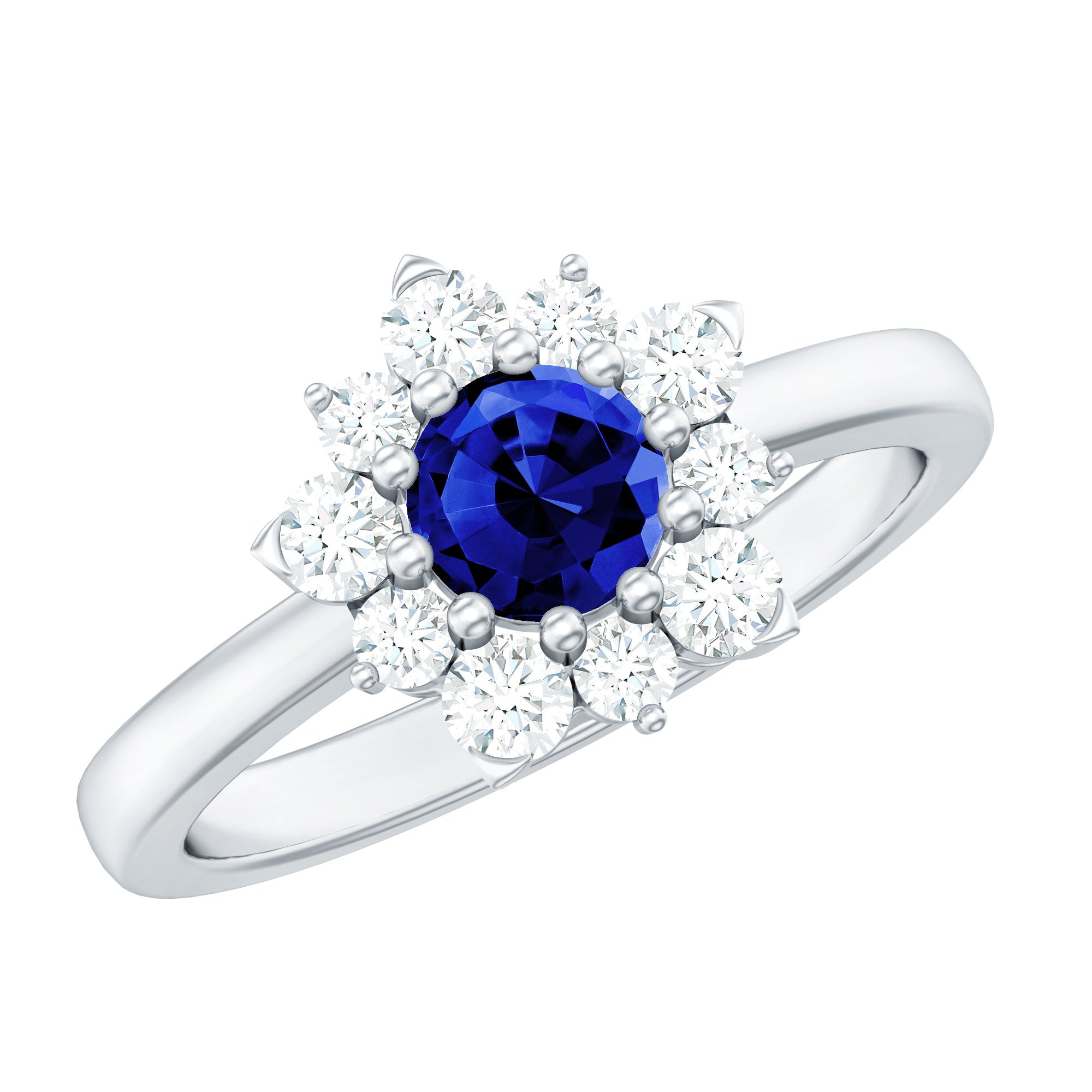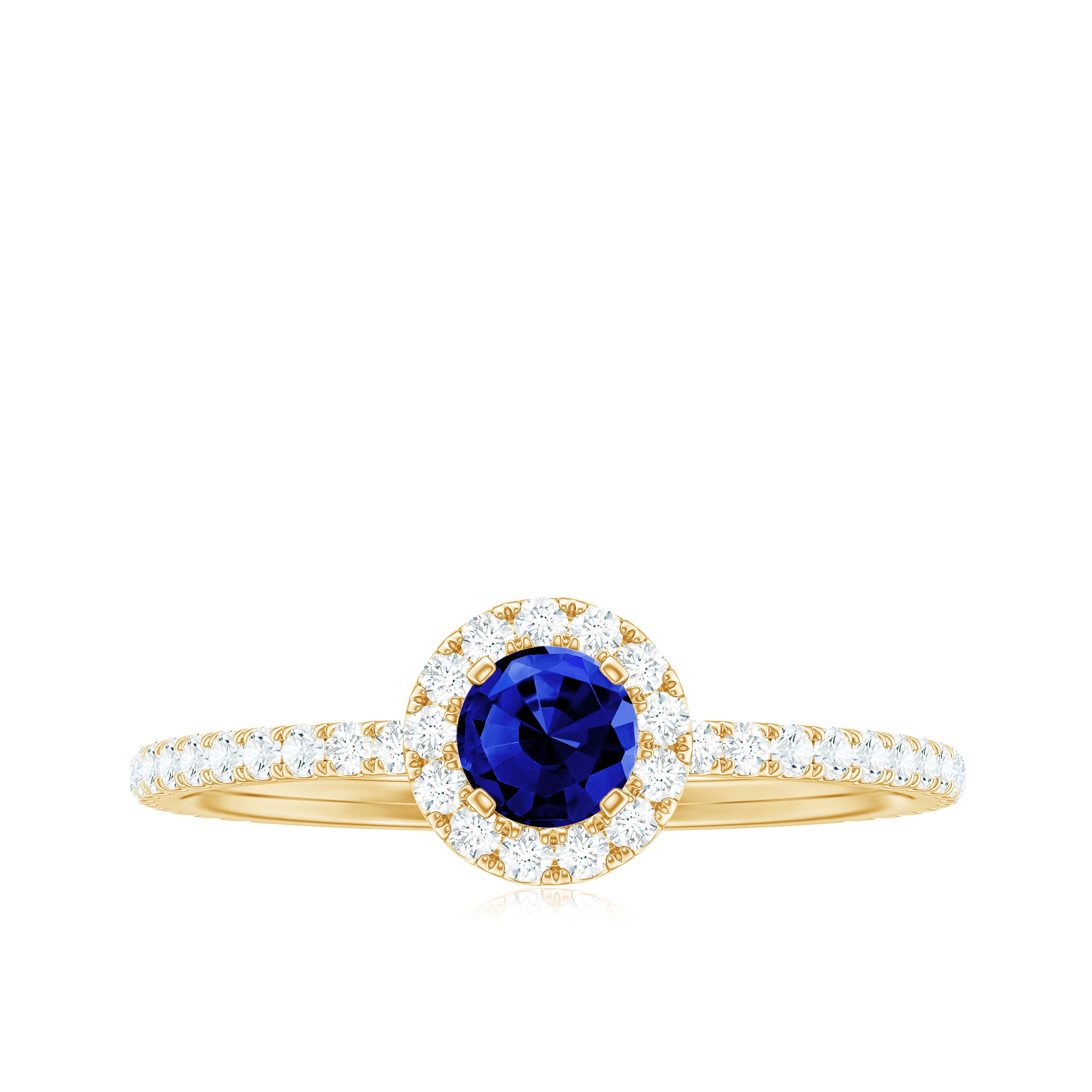 Halo Rings: Begin your new chapter of life with our Blue Sapphire Halo rings. Our eye-catching Blue Sapphire placed in the center and surrounded by small Moissanite stones giving it a magnified look. It fits perfectly with all your occasions as an ultimate symbol of elegance and luxury.