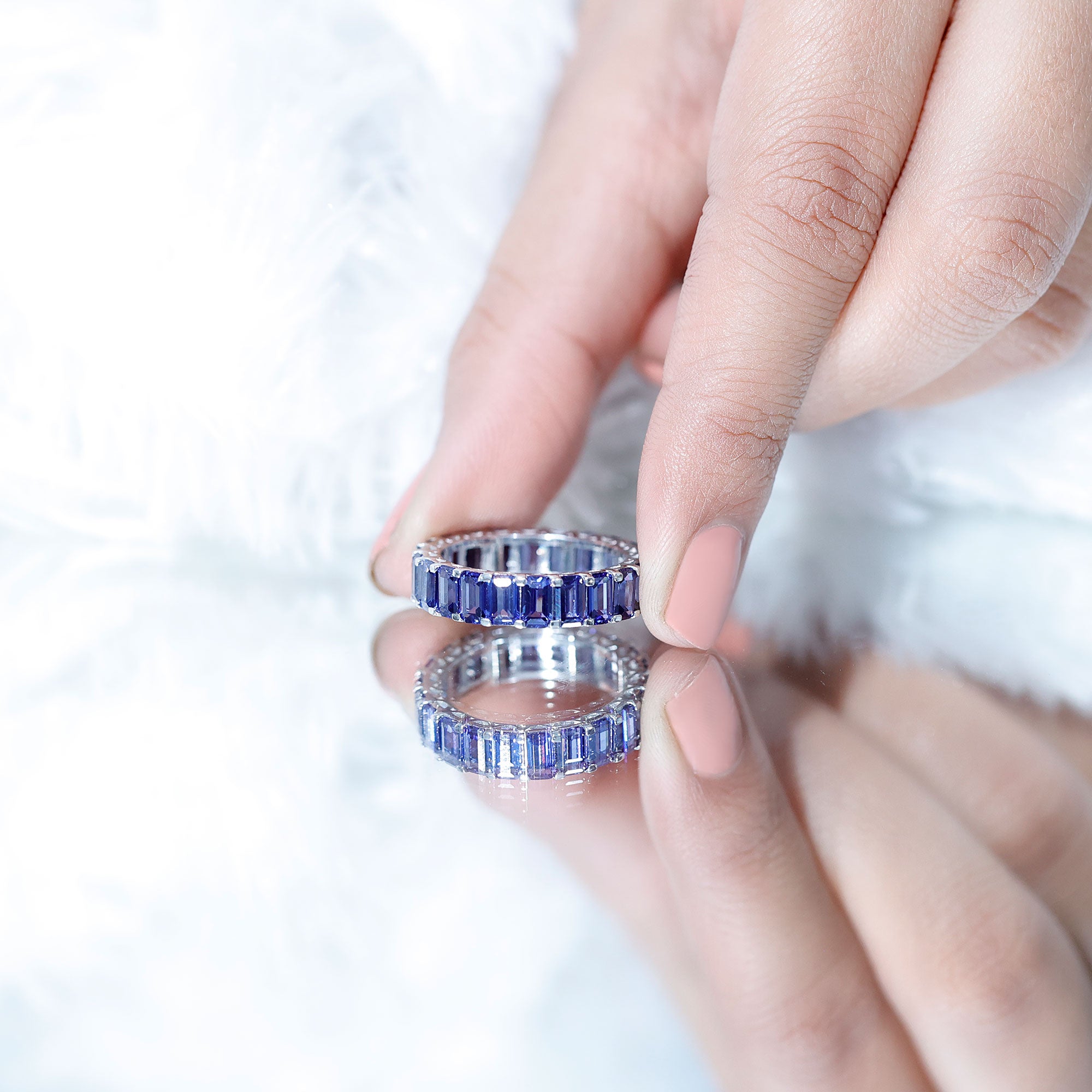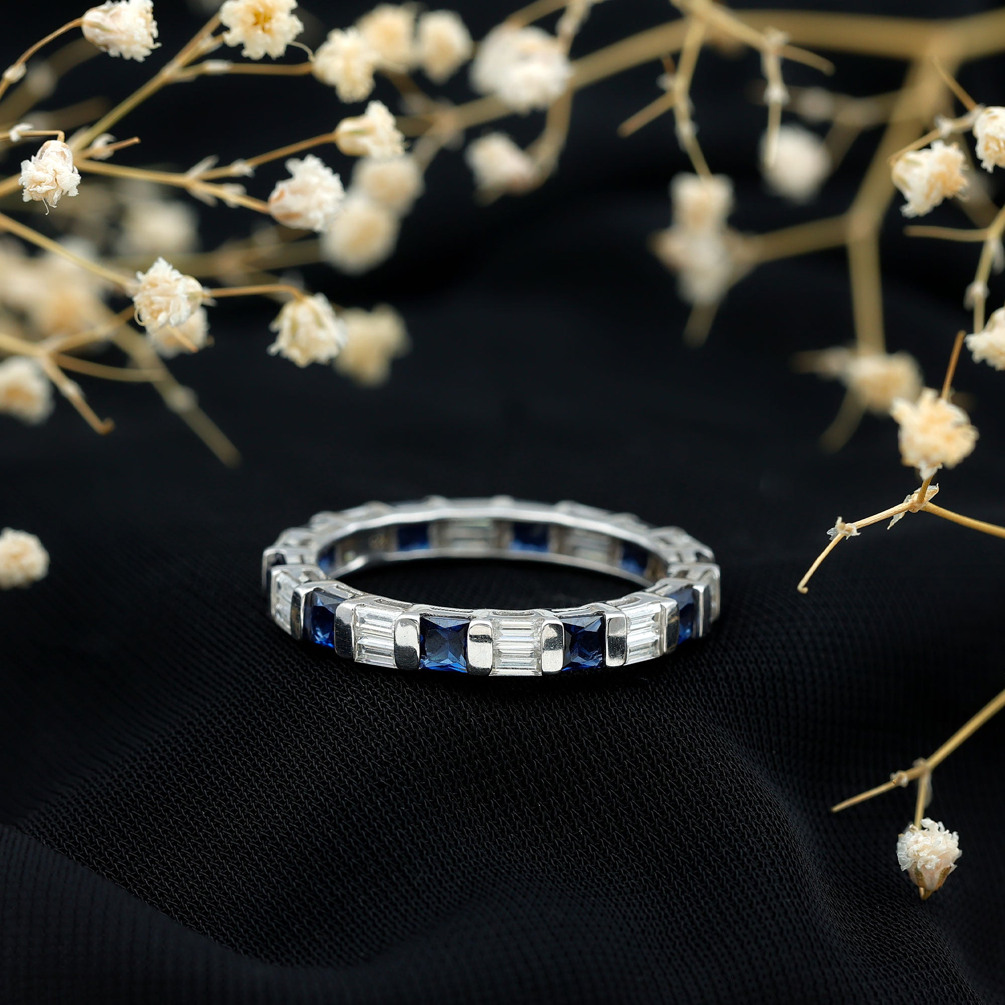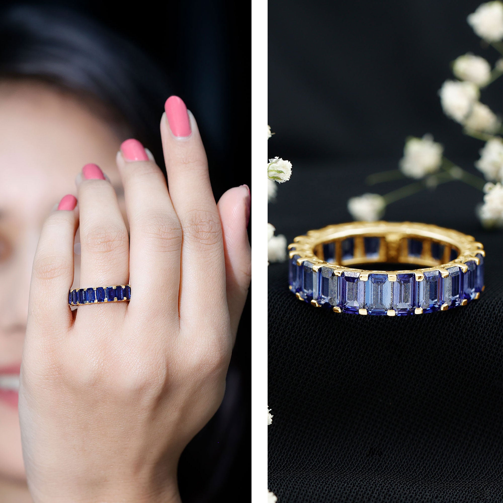Eternity Rings: Celebrate the ever-lasting bond that you have with your loved ones and remind them of the same everyday with our Blue Sapphire Eternity rings which are duly crafted with love for your special ones.