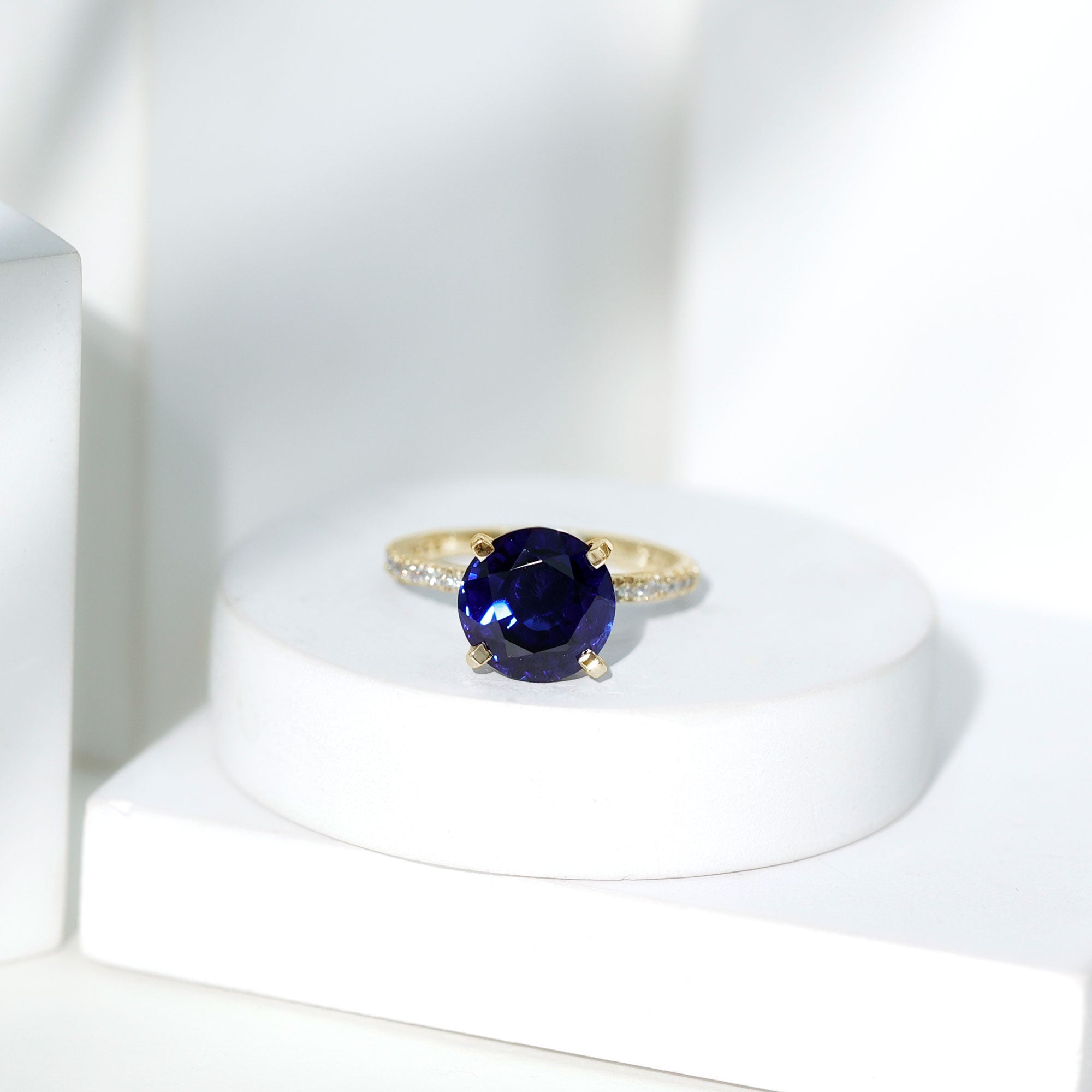 Add styles Available at our page for lab created Blue: Our Solitaire Blue Sapphire rings are a fine touch of luxury and elegance Sapphire rings