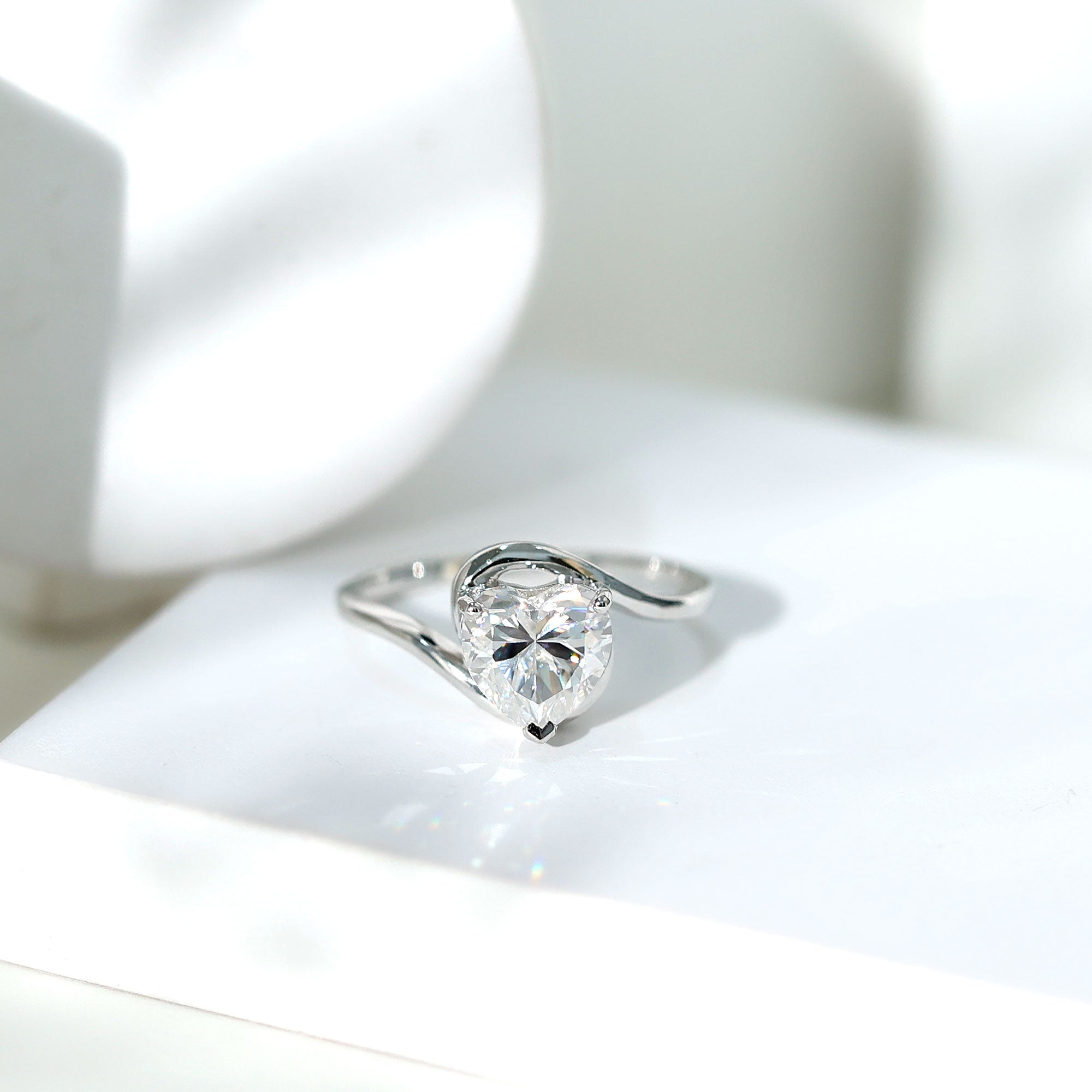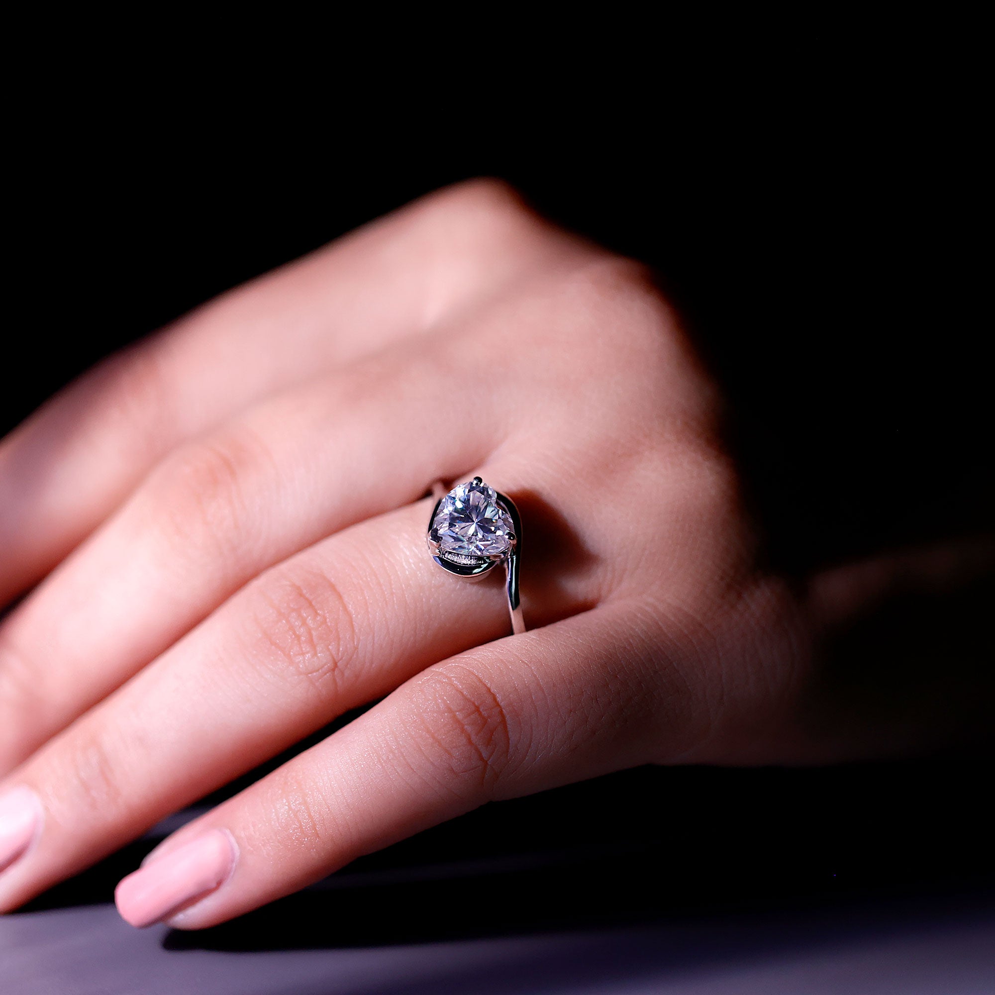 Heart Rings: Known as a symbol of romance and love. Our heart rings are elegantly secured in a prong setting or bezel setting. These rings feature a heart-shaped lab-grown diamond as the center of attraction, which is the symbol of love, passion, and devotion, a popular choice for romantic occasions and daily wear. The lab-grown diamond makes a nice contrast with the white gold metal, a must-have accessory to your wardrobe.