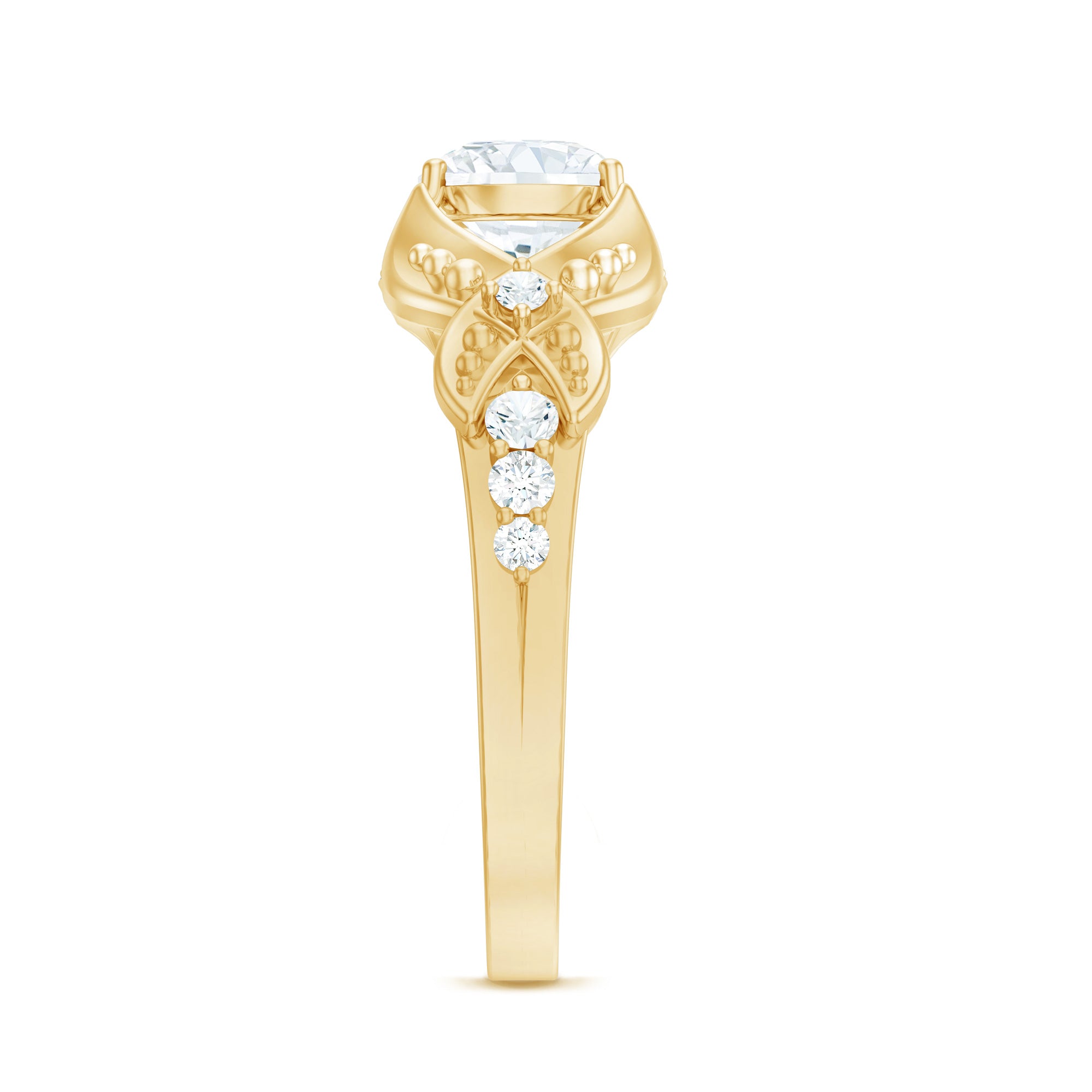 Vintage and Antique Styles: Vintage-inspired moissanite rings draw inspiration from different historical periods, incorporating intricate designs, filigree work, and milgrain details. These rings exude a sense of timeless charm and sophistication.
