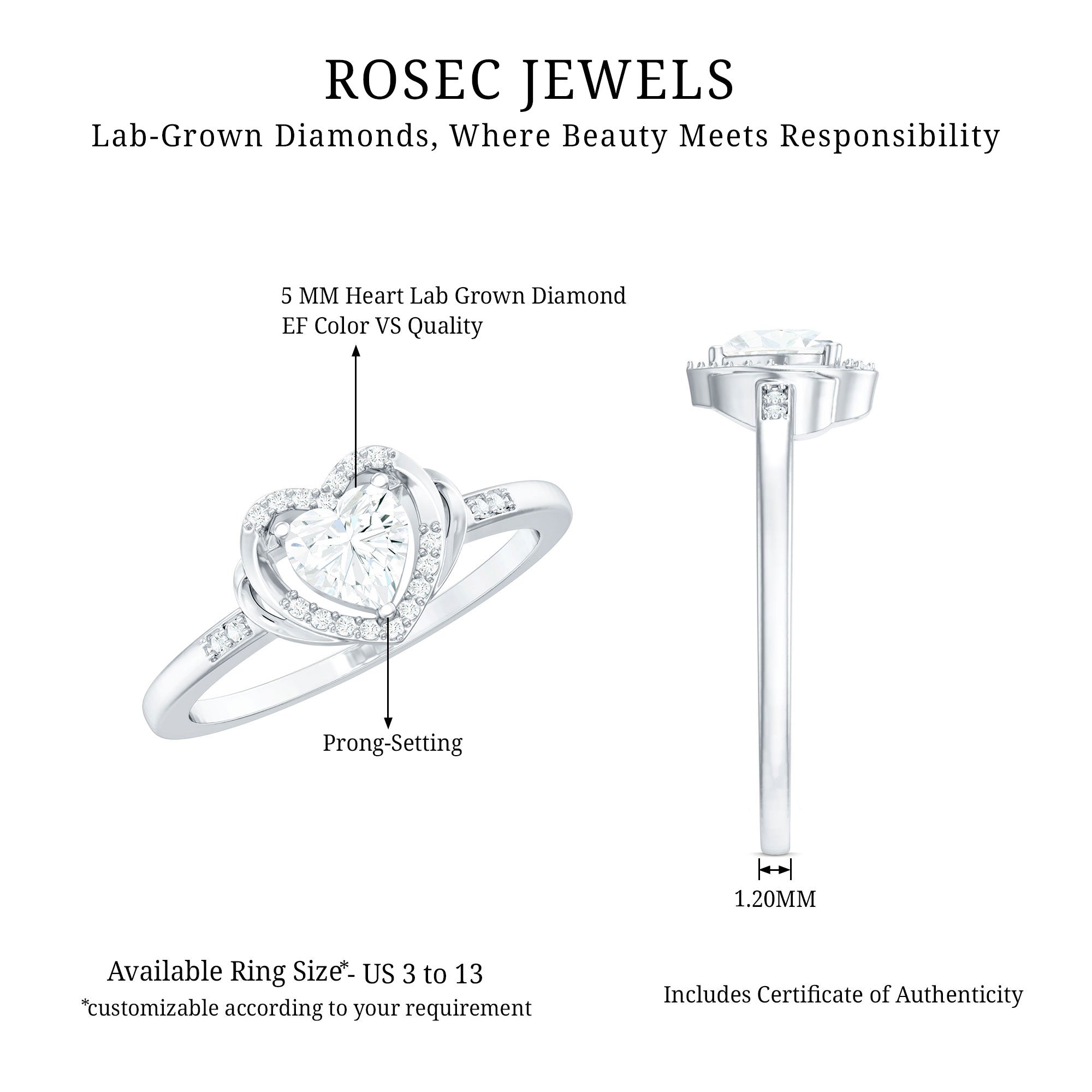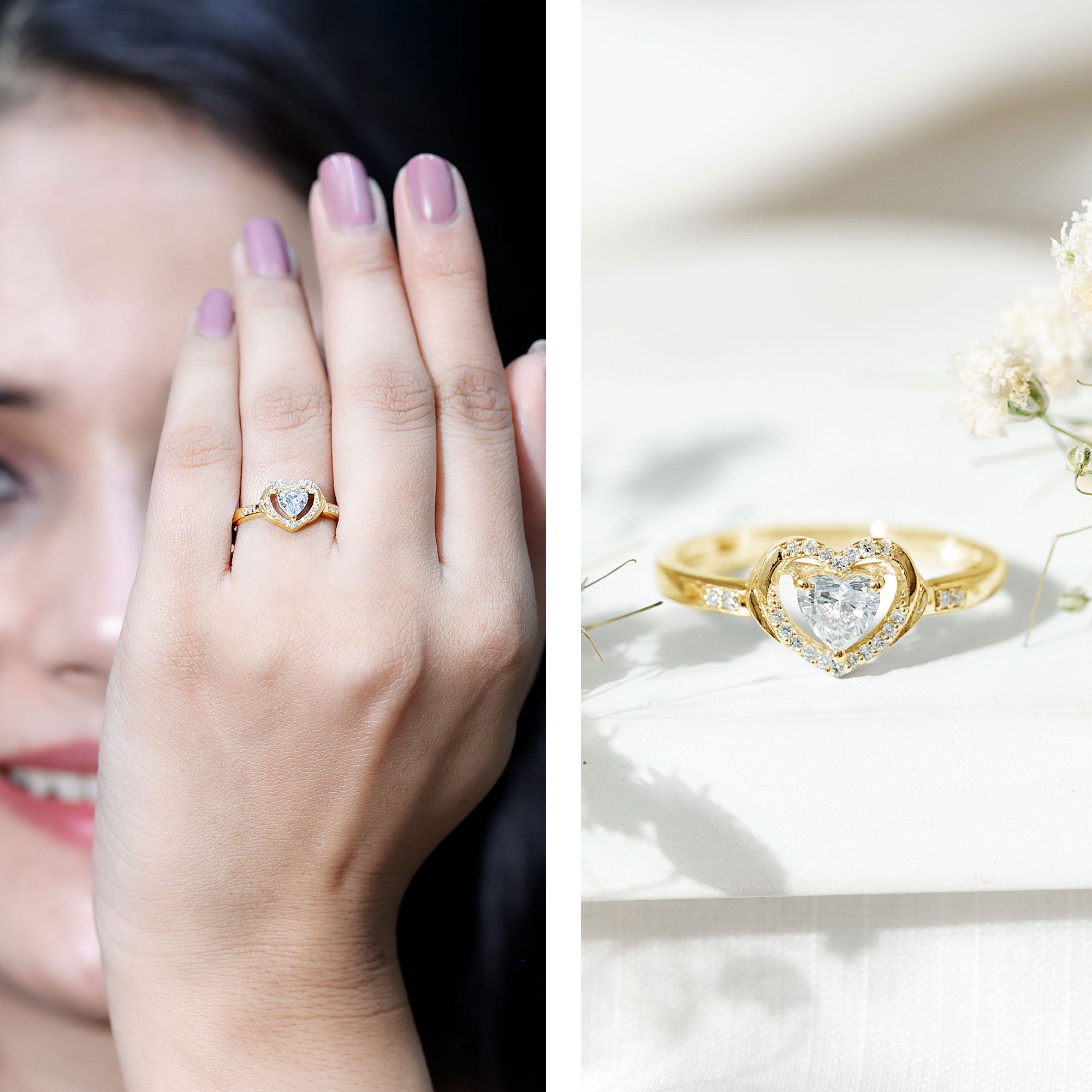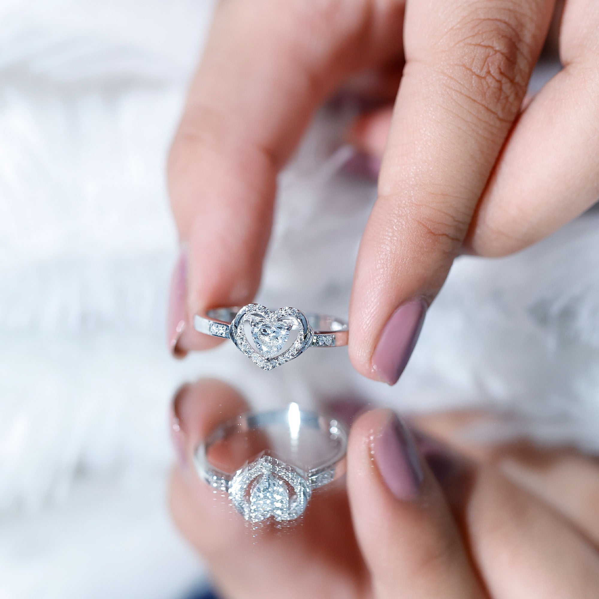 Heart Rings: Known as a symbol of romance and love. Our heart rings are elegantly secured in a prong setting or bezel setting. These rings feature a heart-shaped lab-grown diamond as the center of attraction, which is the symbol of love, passion, and devotion, a popular choice for romantic occasions and daily wear. The lab-grown diamond makes a nice contrast with the white gold metal, a must-have accessory to your wardrobe.