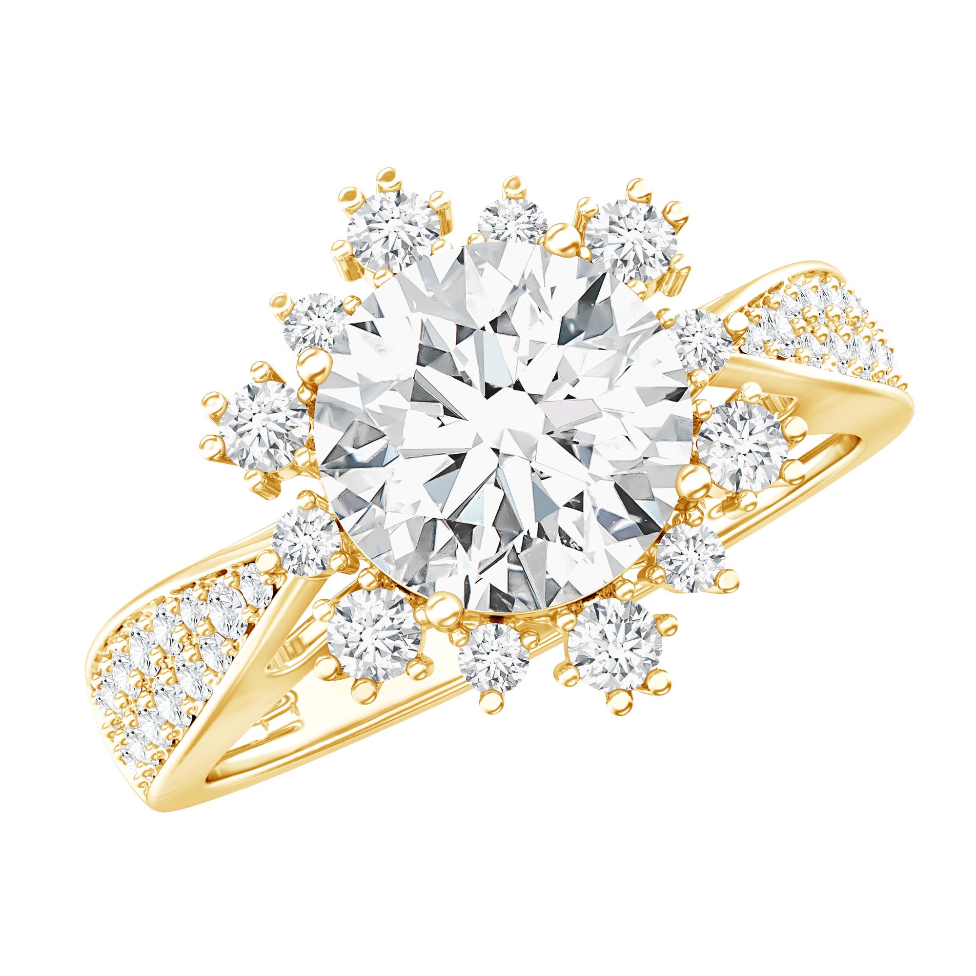 Halo Rings: lab-grown diamond halo rings are surrounded by small accent stones, usually lab-grown diamonds or any colored gemstones. This design enhances the center gem’s sparkle, creating a dazzling effect that makes the ring look larger and more eye-catching.