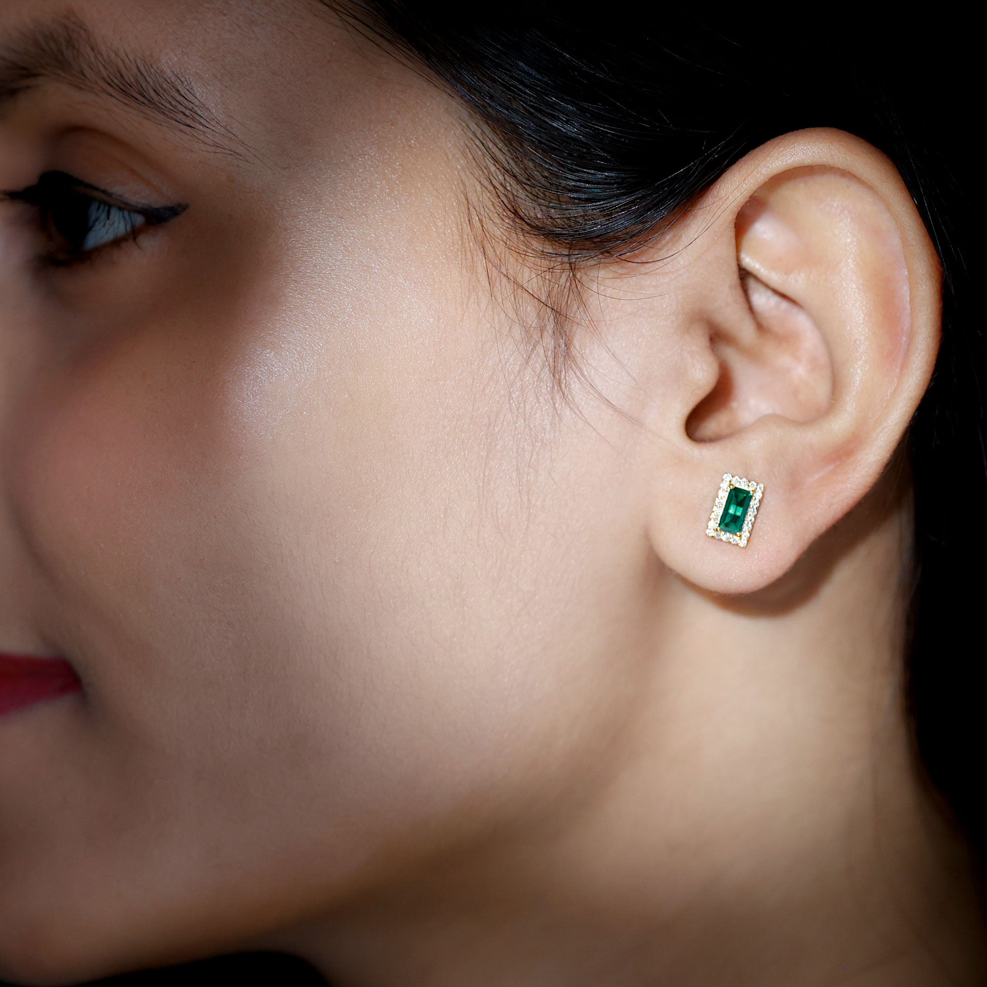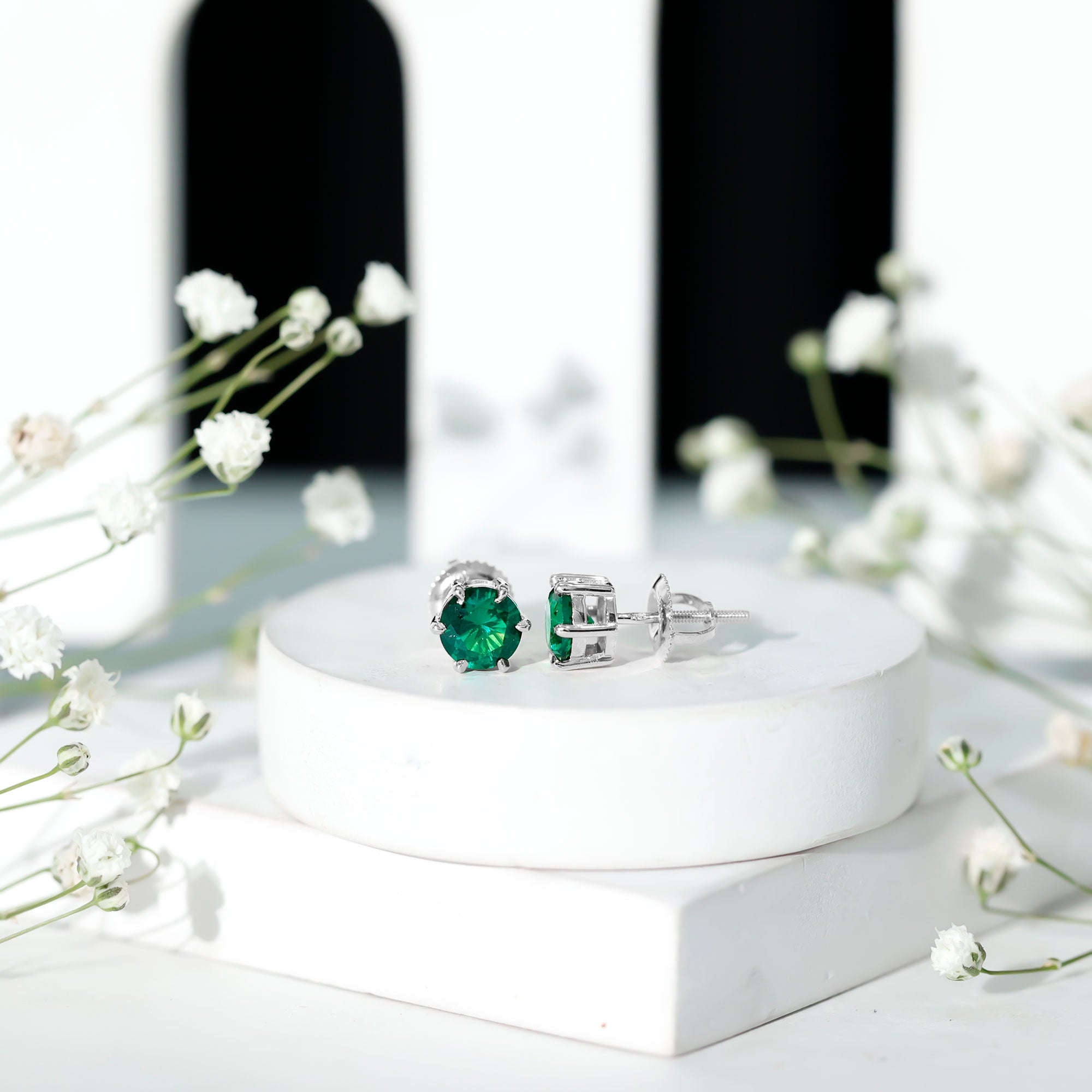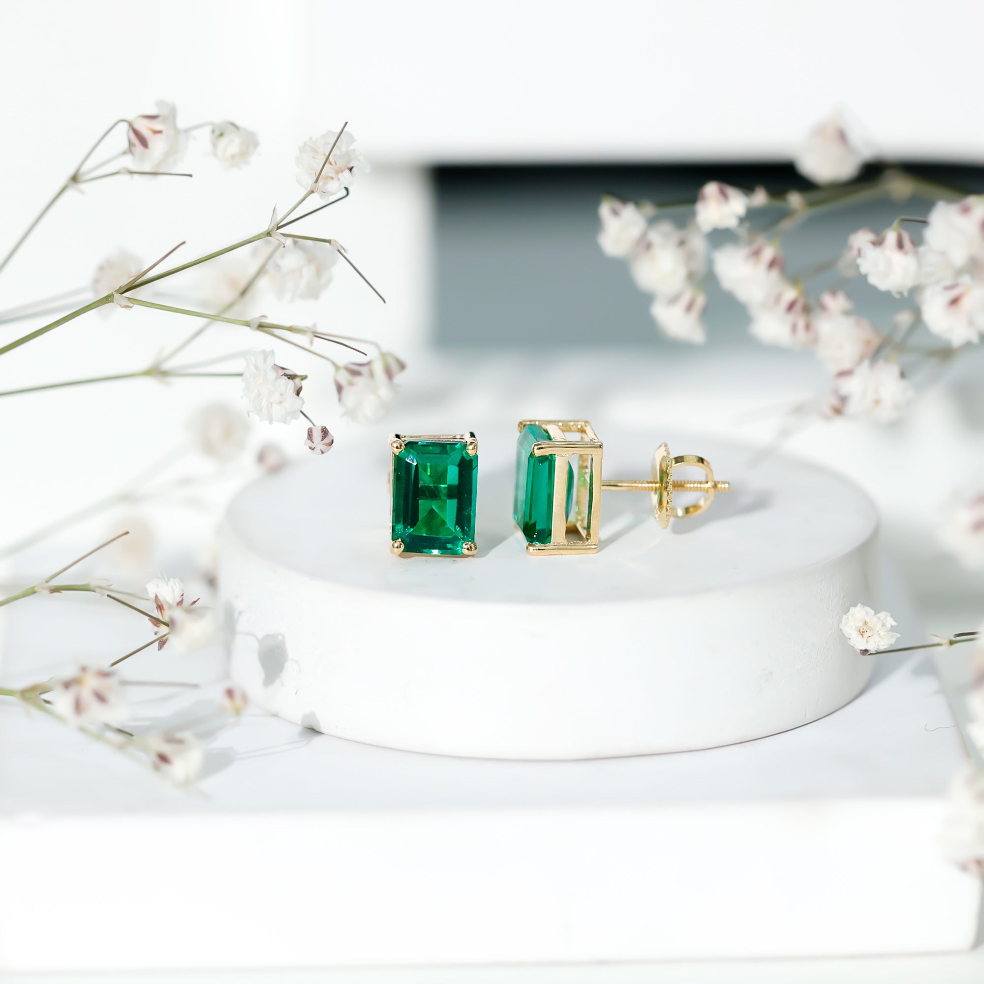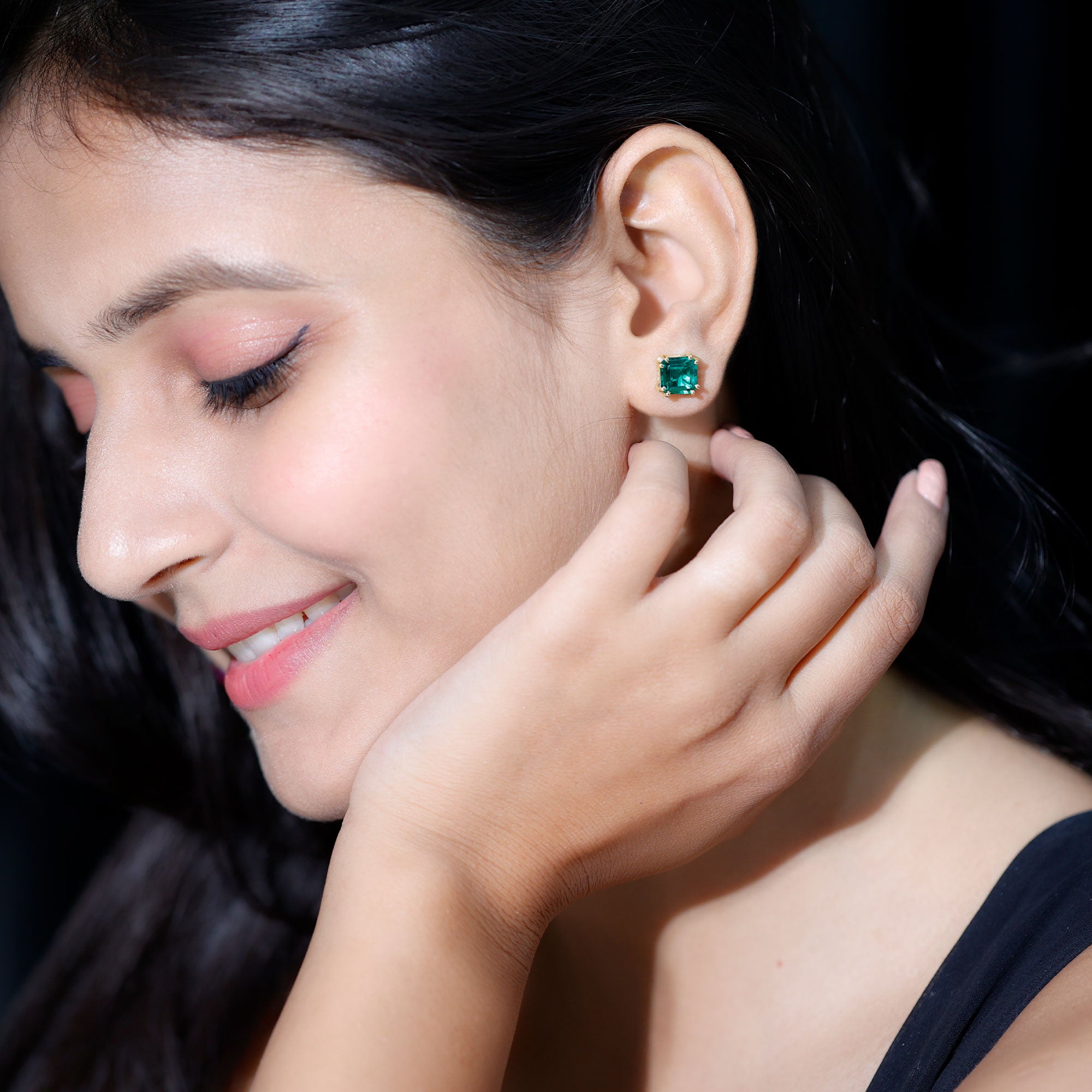 Lab created emerald stud earrings are the first choice of classic elegance lovers. A pop of color, whether a small or large emerald gemstone makes them an ideal option for everyday as well as special occasional wear.
