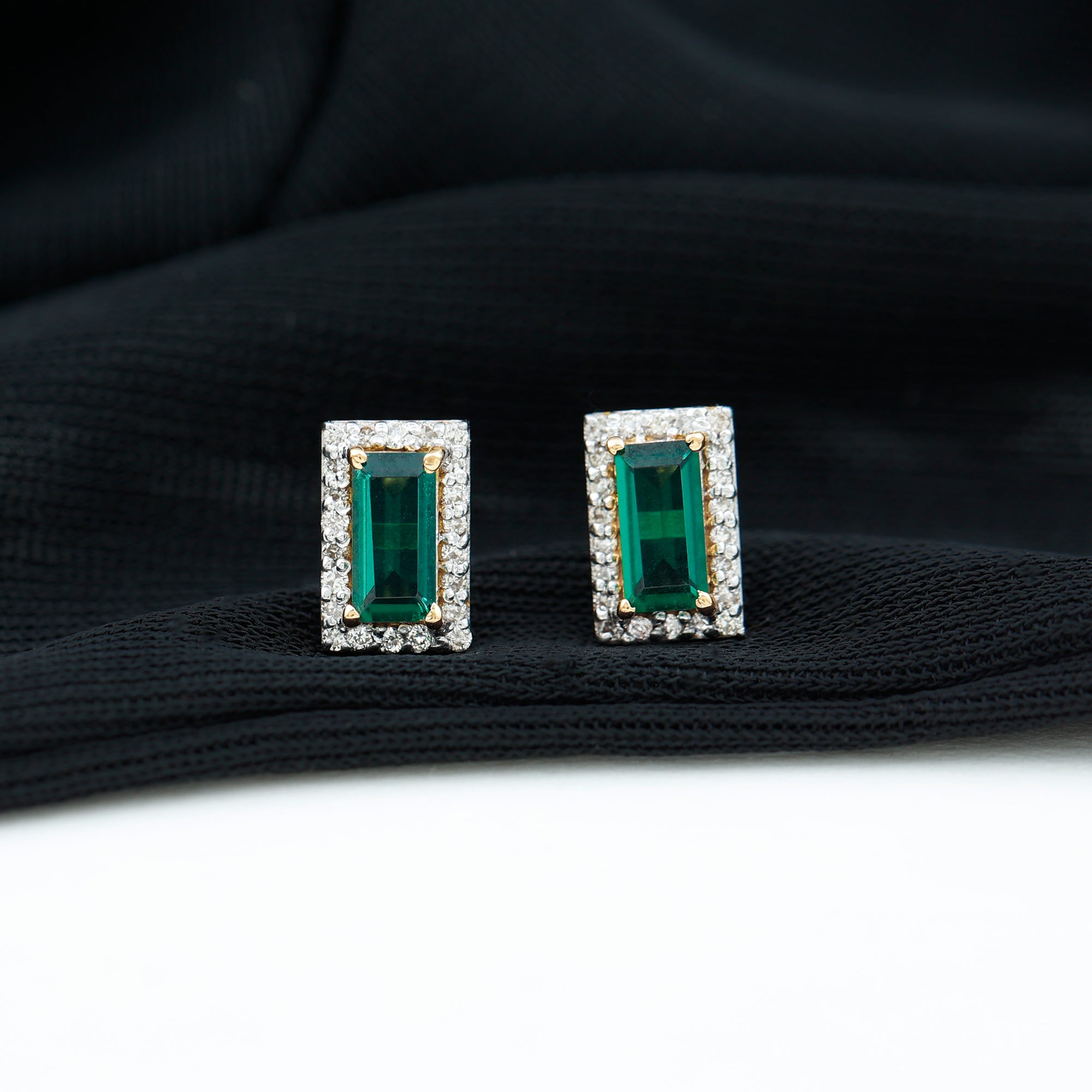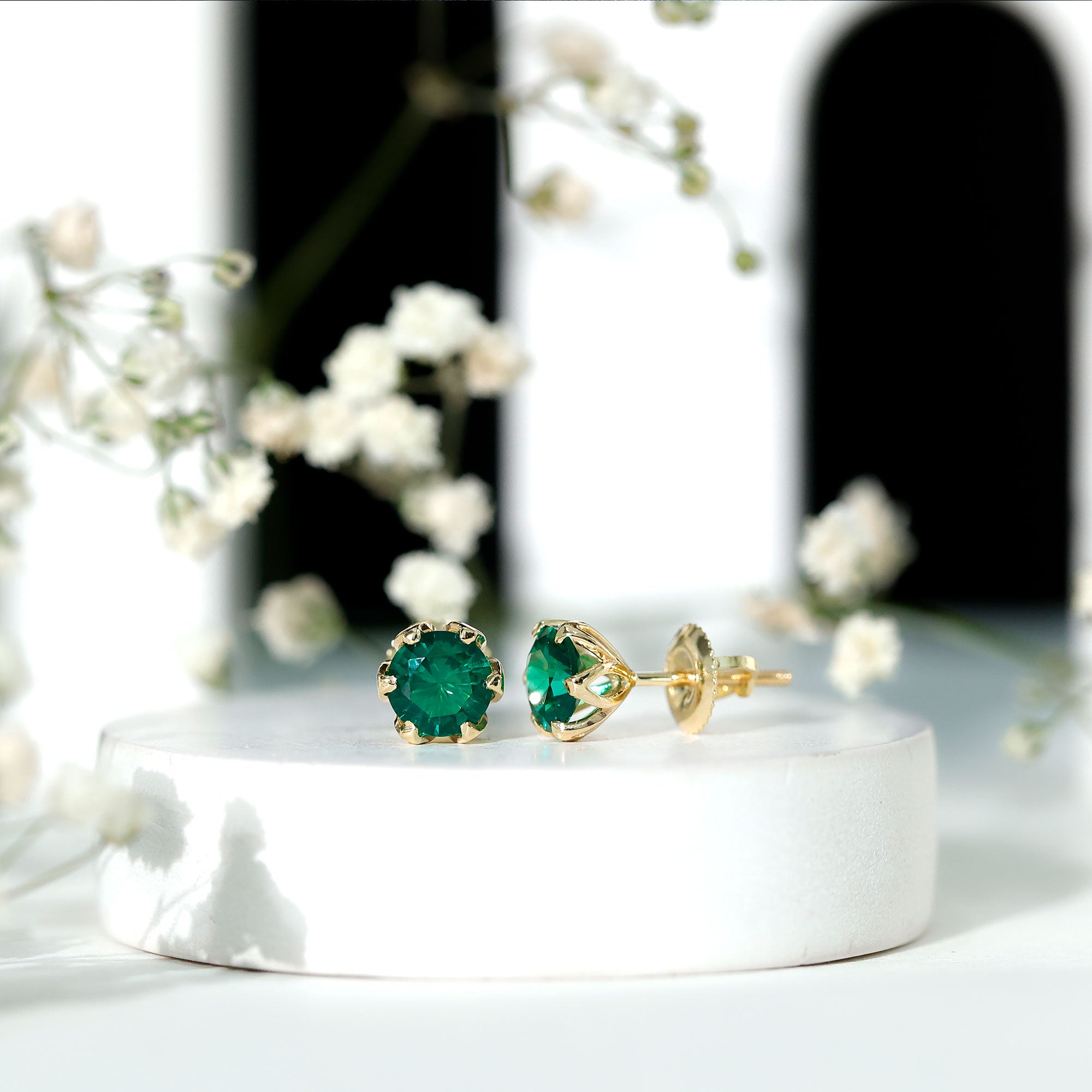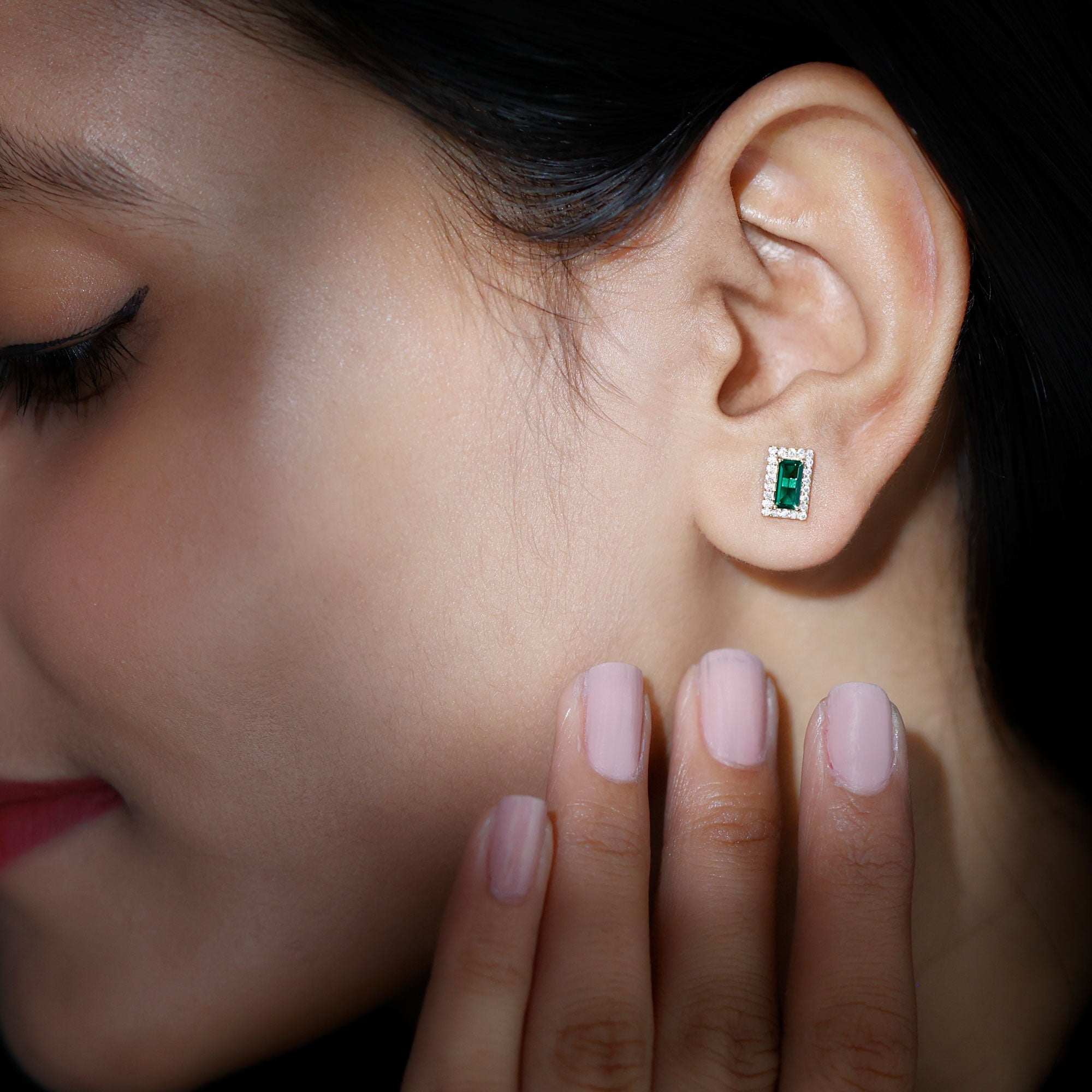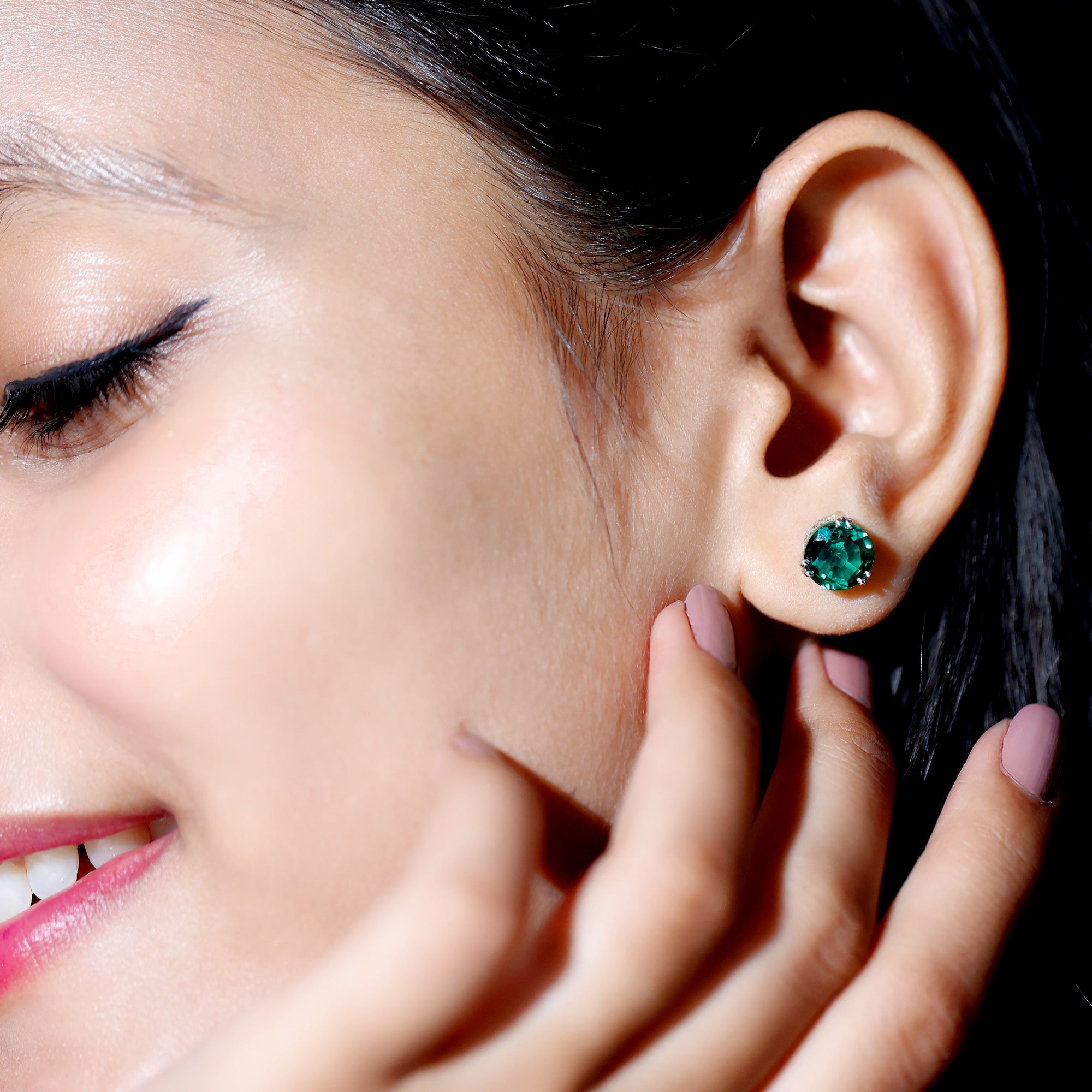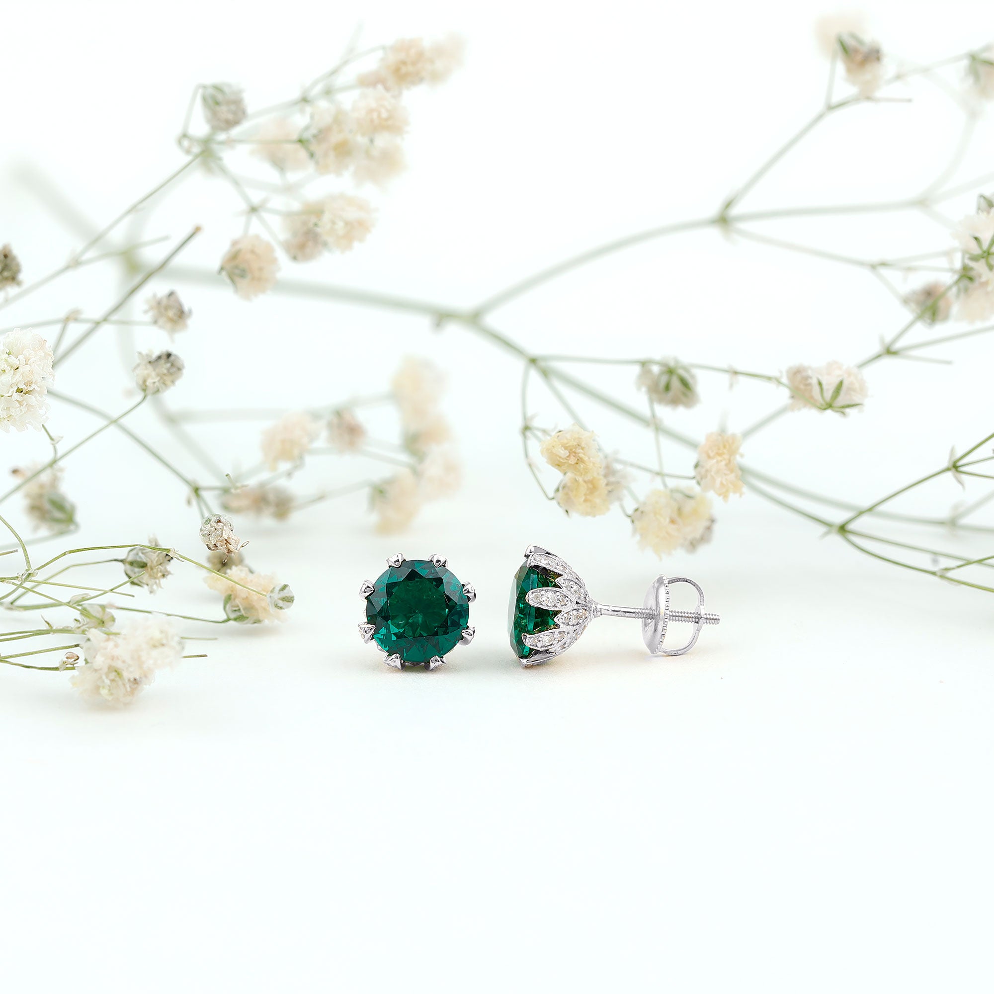 Lab created emerald stud earrings are the first choice of classic elegance lovers. A pop of color, whether a small or large emerald gemstone makes them an ideal option for everyday as well as special occasional wear.
